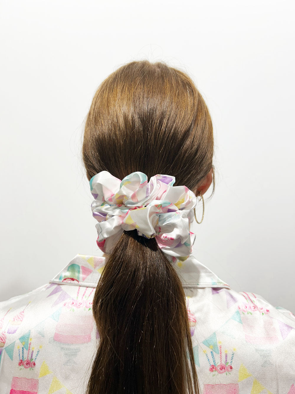 Add a playful touch to your bedtime routine with our stunning scrunchie, featuring a unique design to match your favorite set of Night Sweet Thing pajamas! Made from soft, hair-friendly satin, it securely holds your hair whilst adding a pop of color and fun! Treat yourself or gift it to a friend - sweet dreams await!