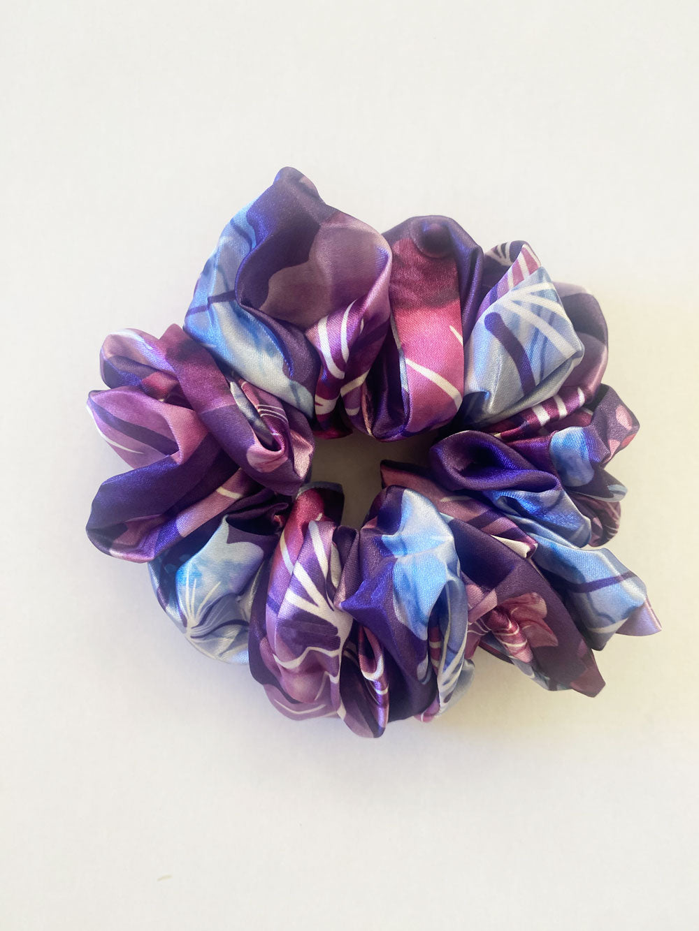 Purple Hibiscus Satin Hair Scrunchie