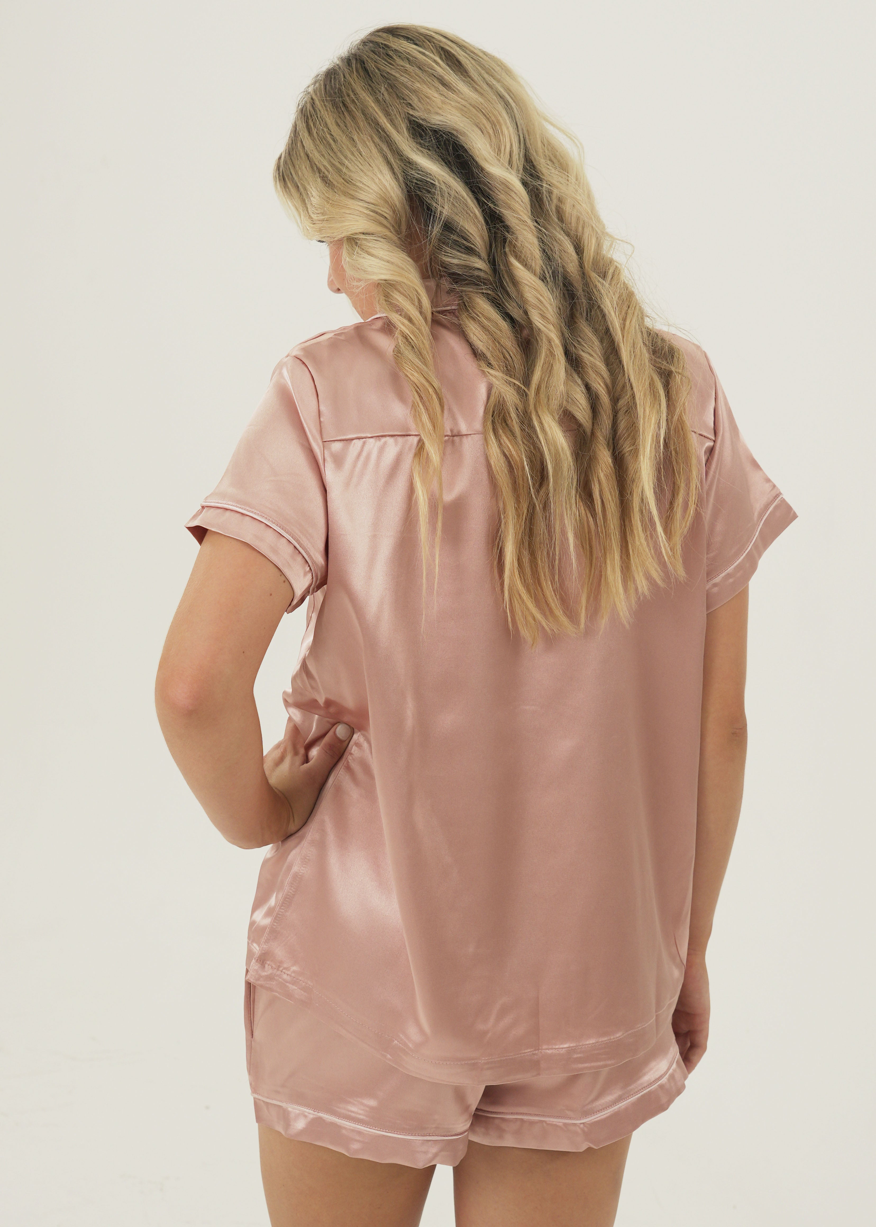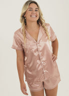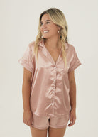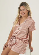 Womens Rose Pink Satin Short Pajama Set