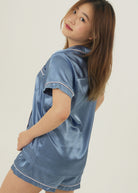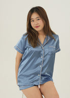 Womens Royal Blue Satin Short Pajama Set