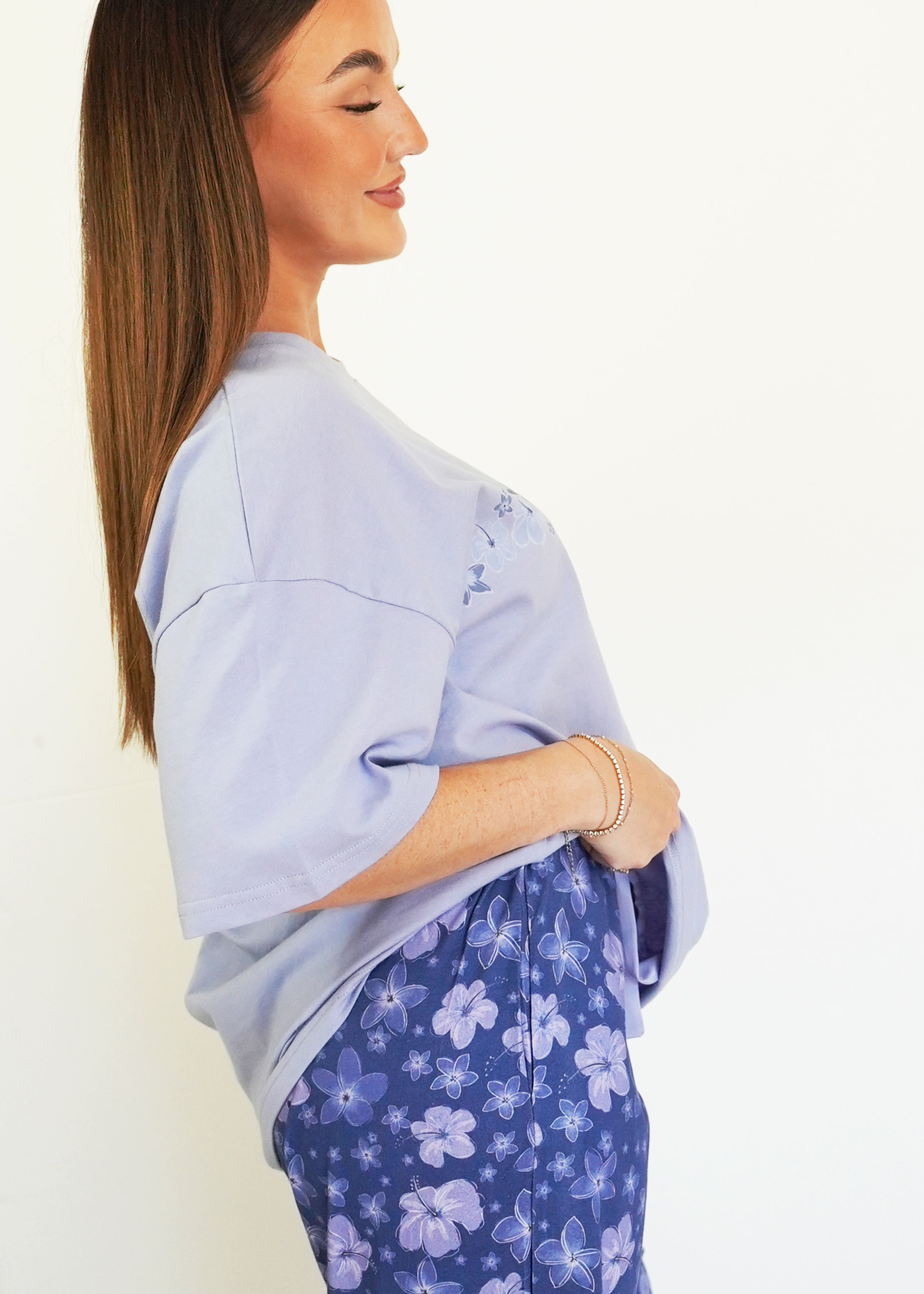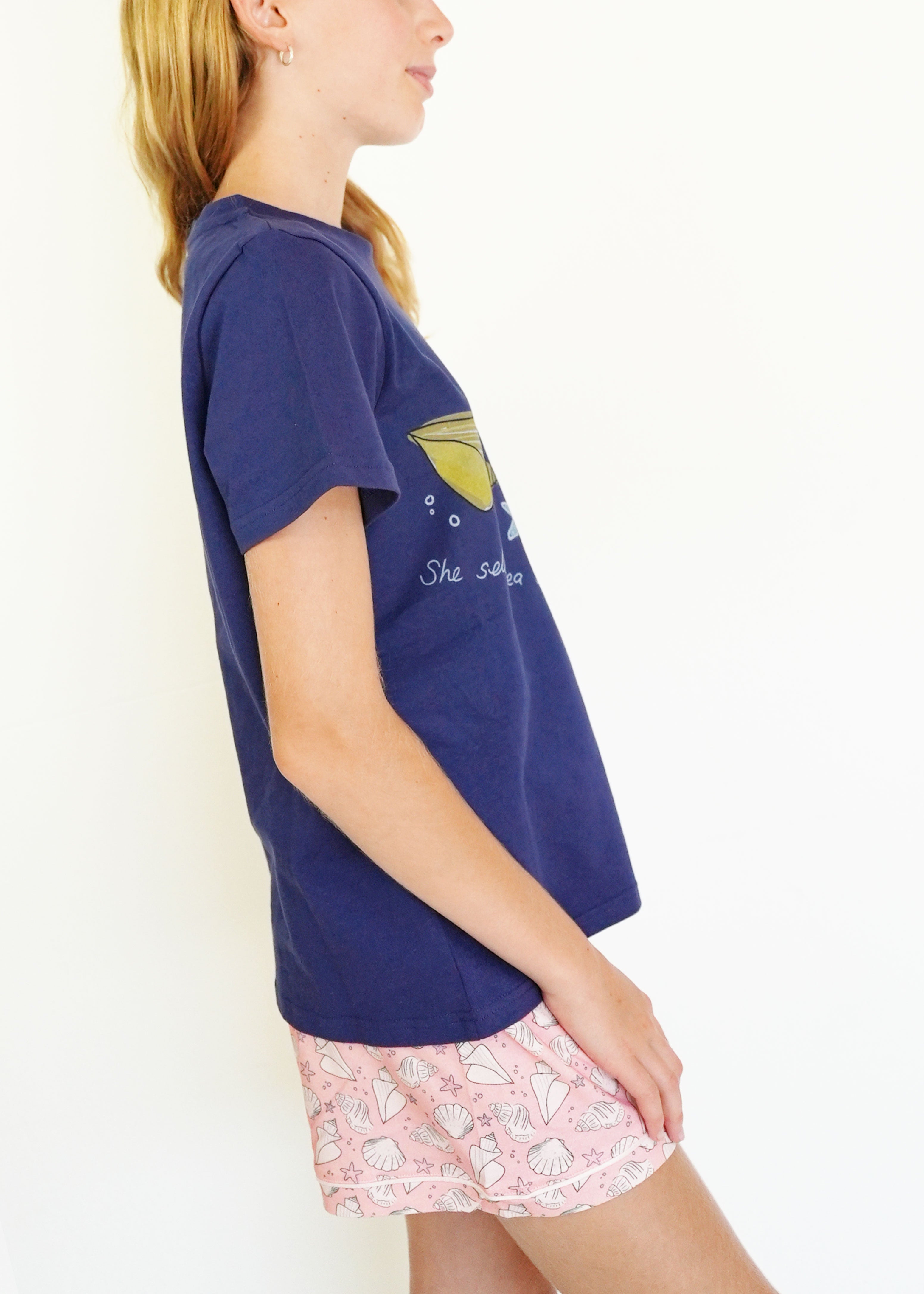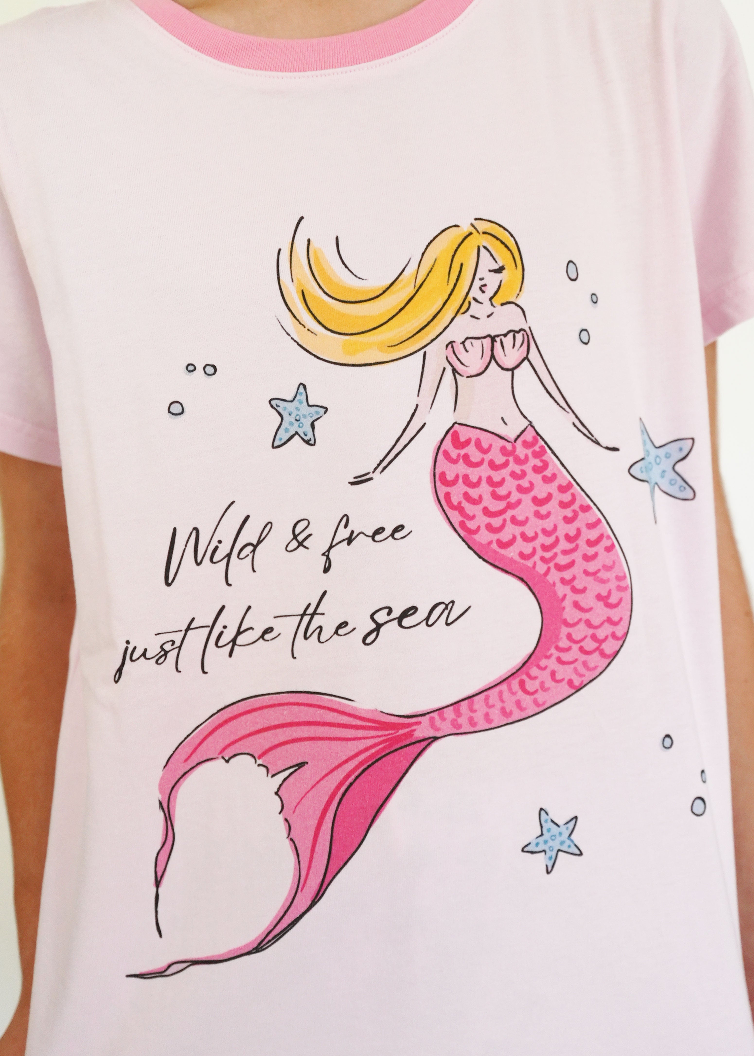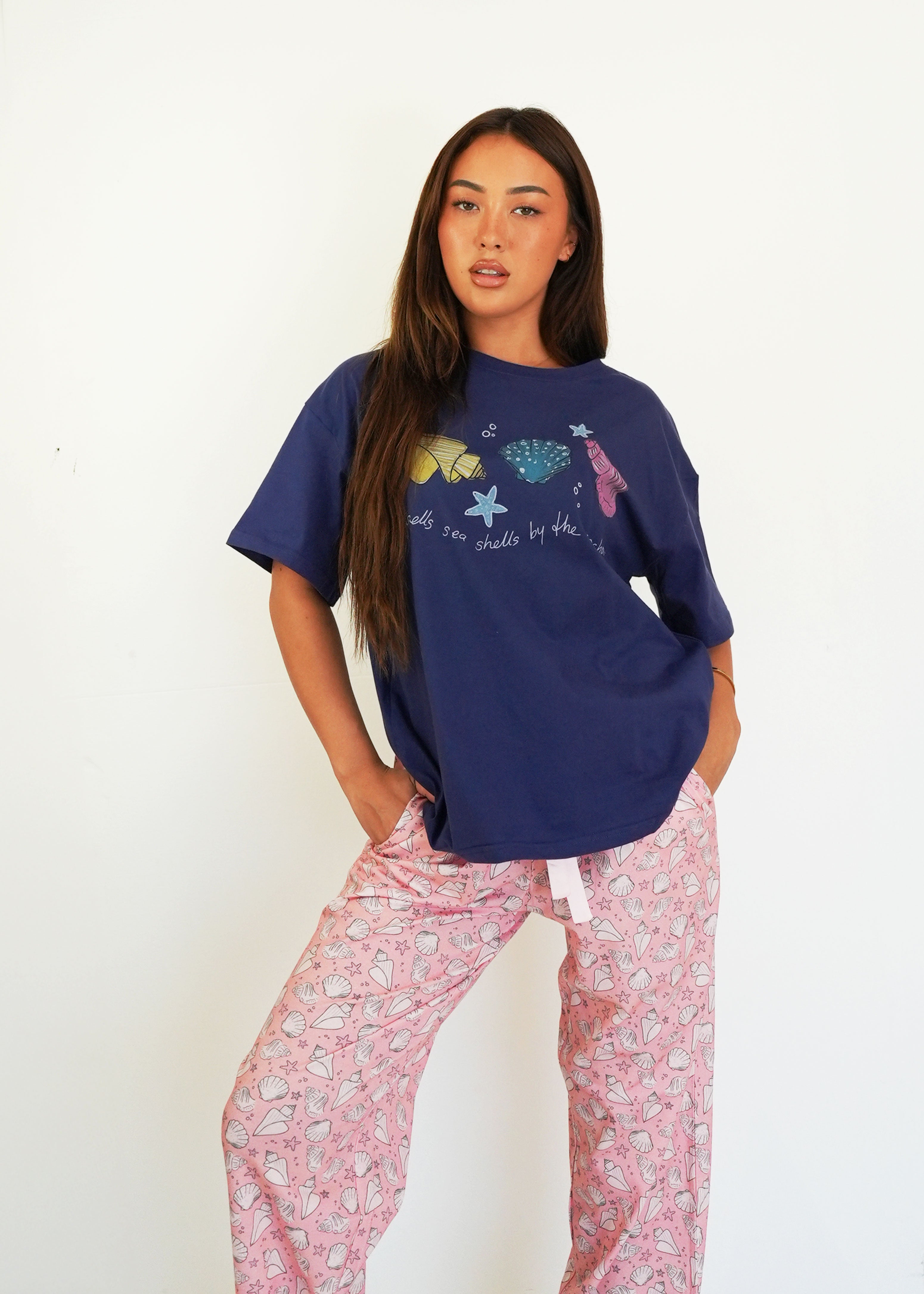 First of all, I love the material it is 100% cotton. The fit is perfect! A little over size but perfect for sleeping. The design is very cute! I hope you guys make more cotton products 🙏😙 thank you!