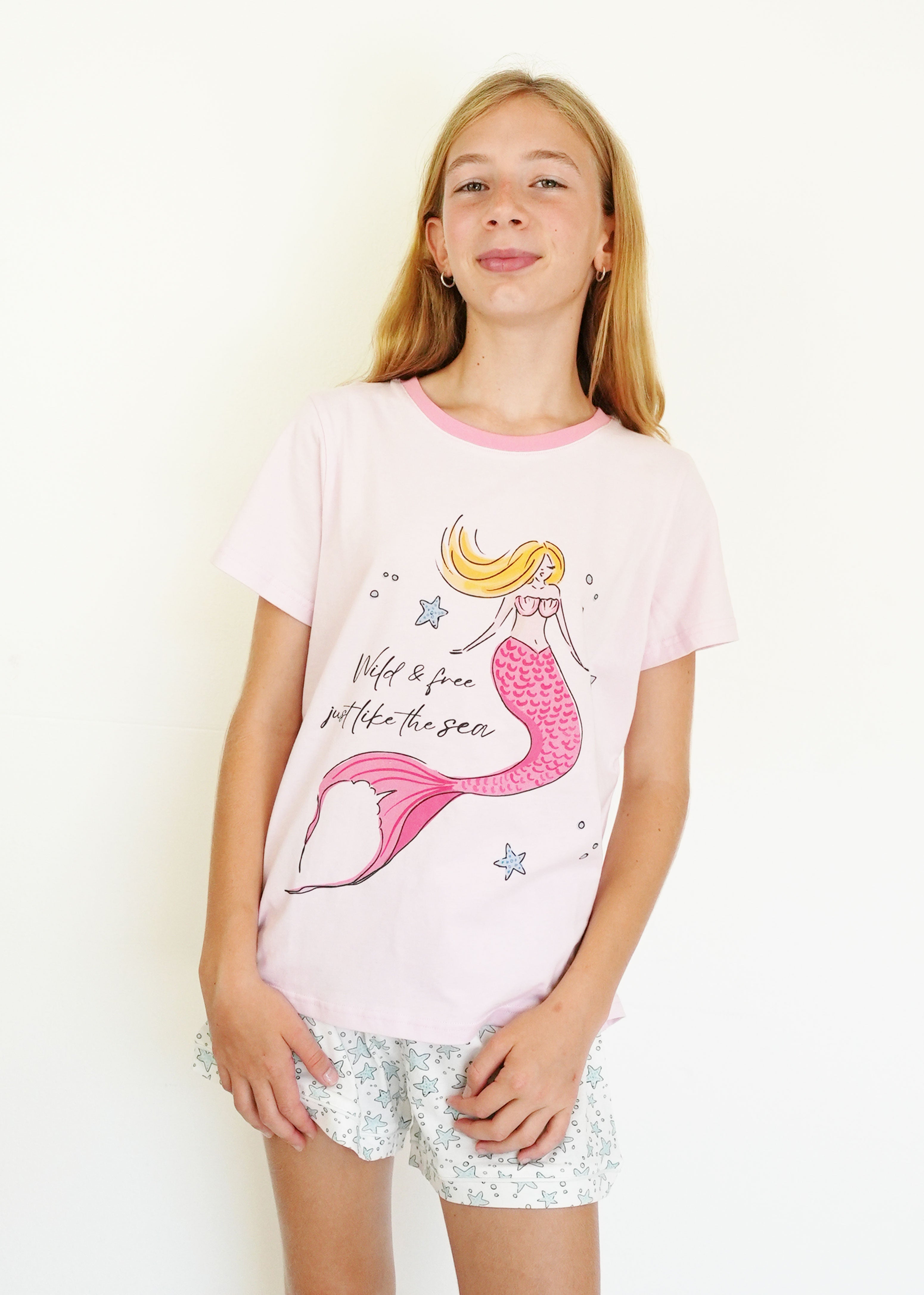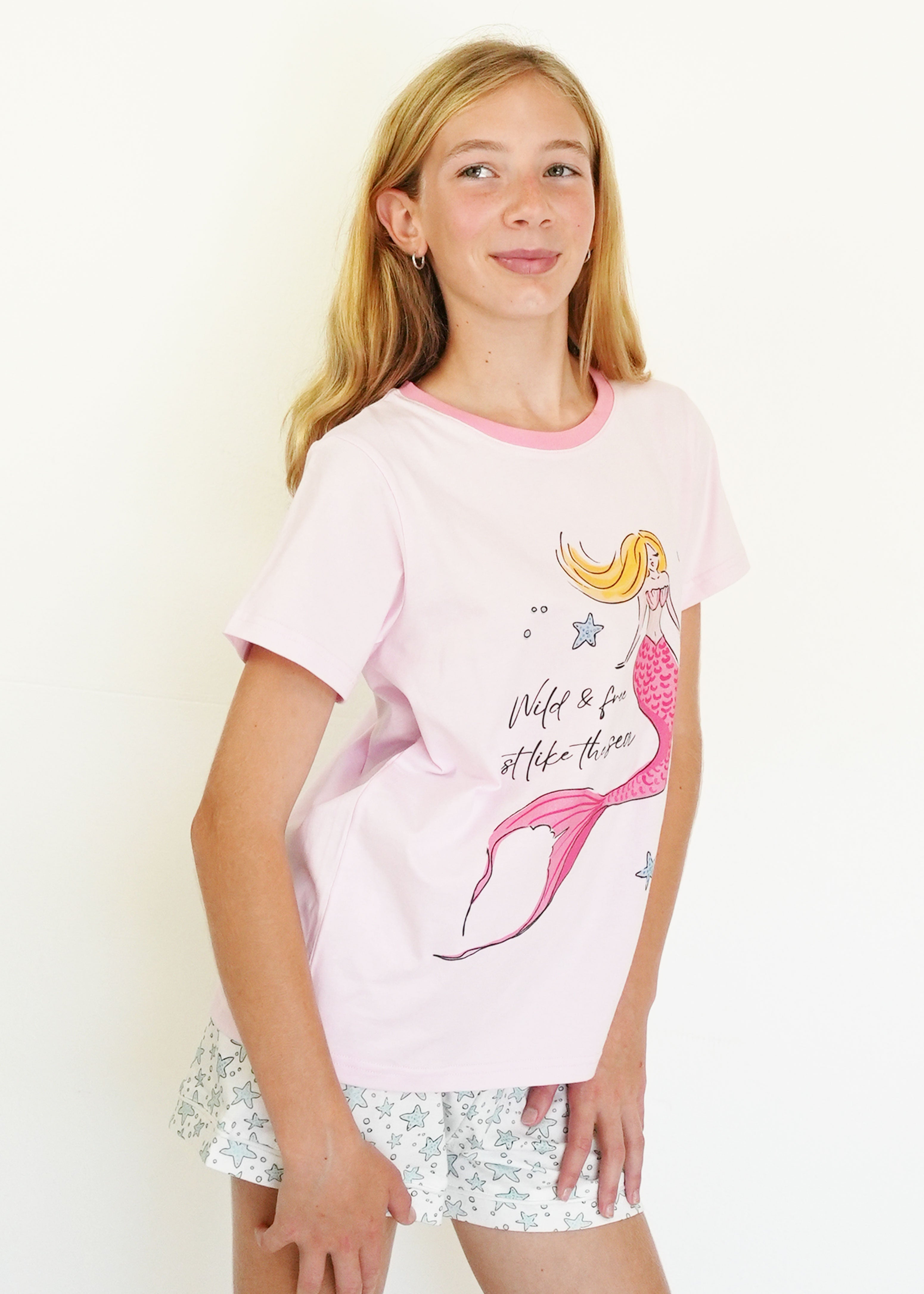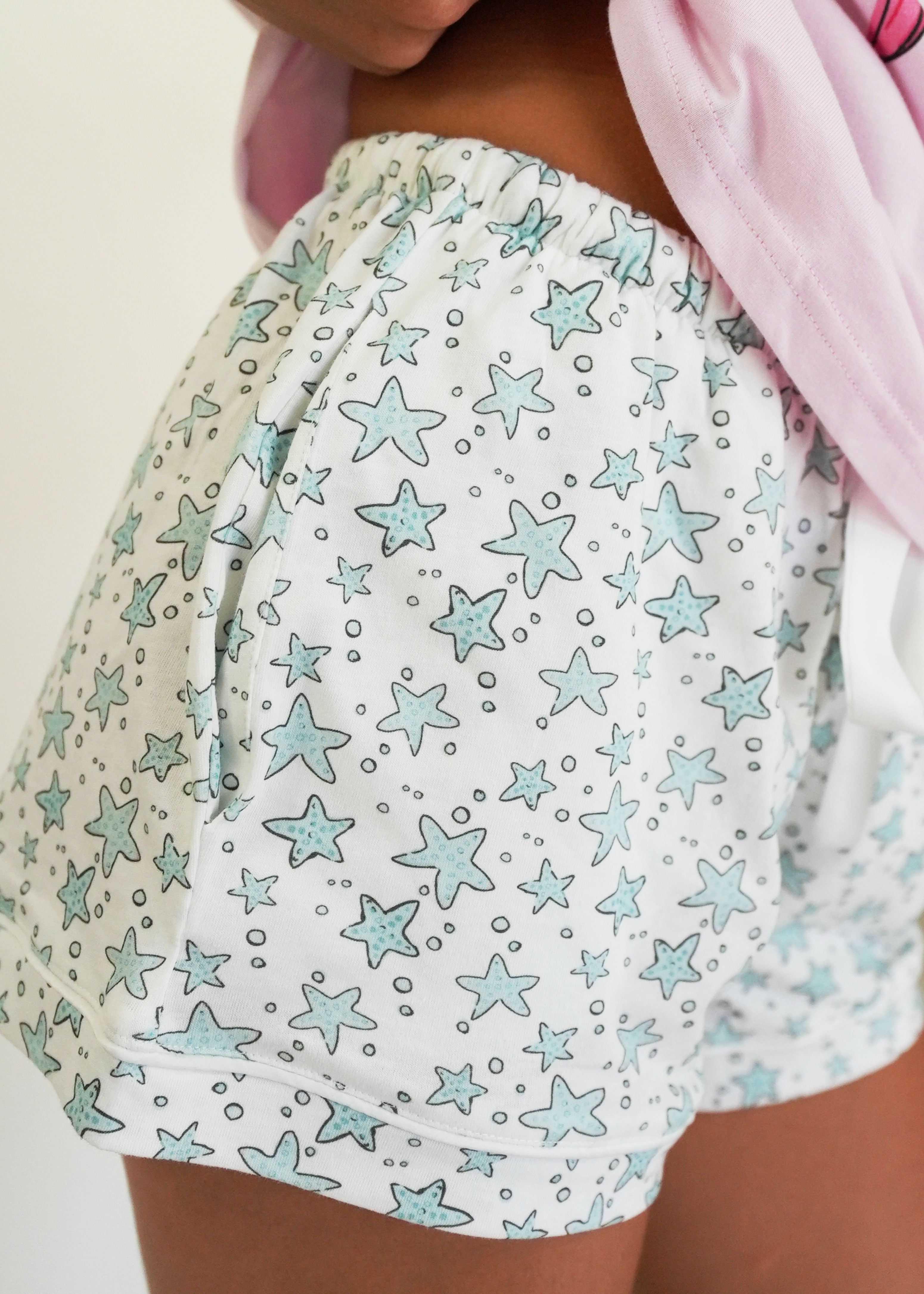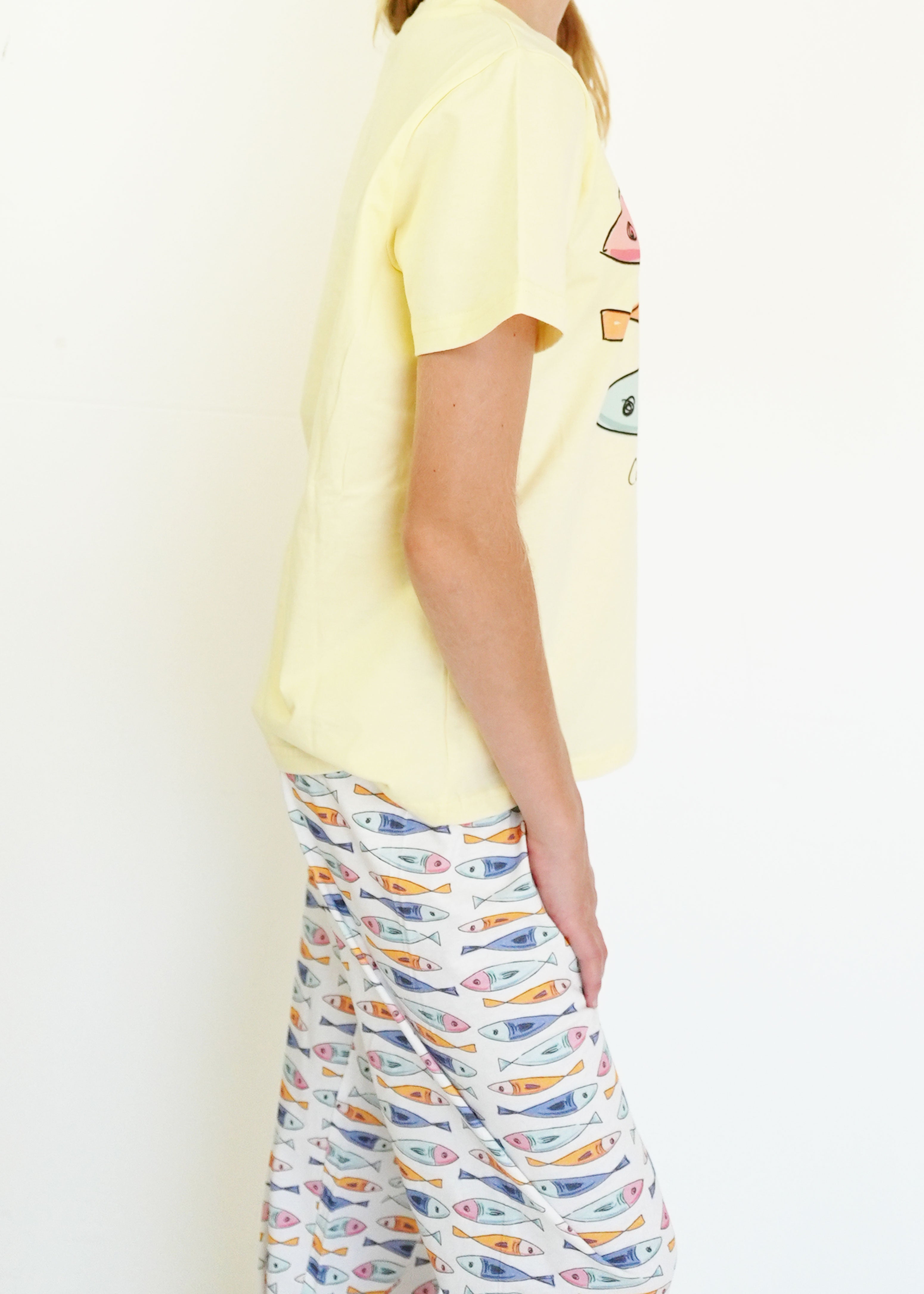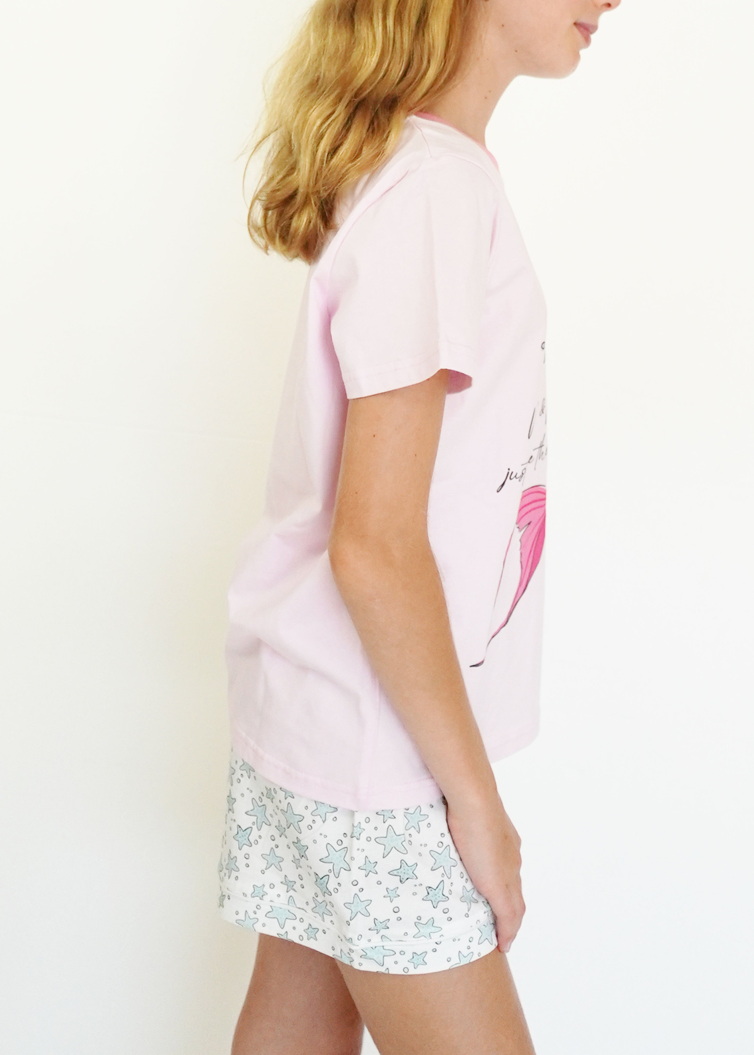 First of all, I love the material it is 100% cotton. The fit is perfect! A little over size but perfect for sleeping. The design is very cute! I hope you guys make more cotton products 🙏😙 thank you!
