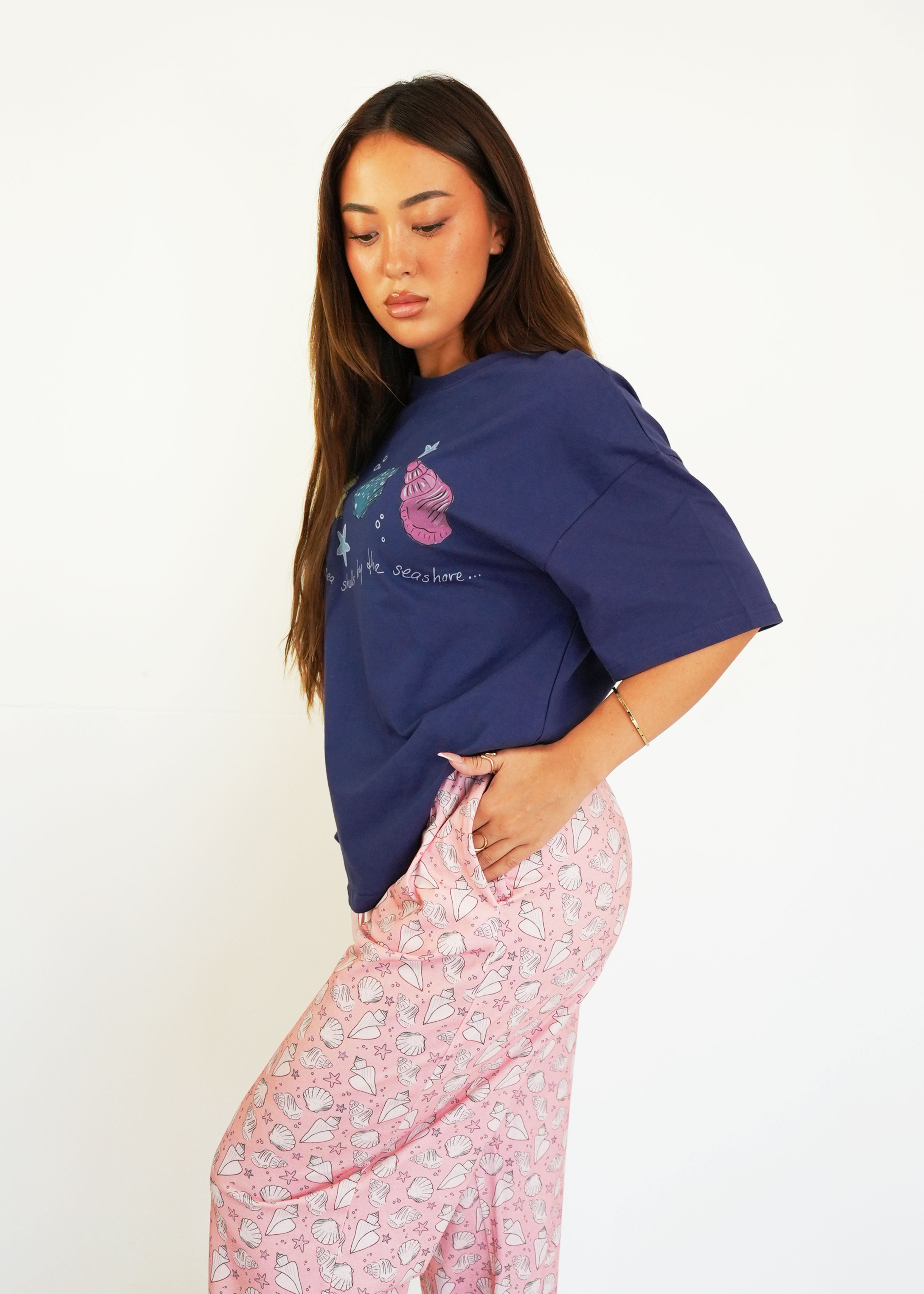 Navy Seashells T-Shirt & Long Pants PJ Set