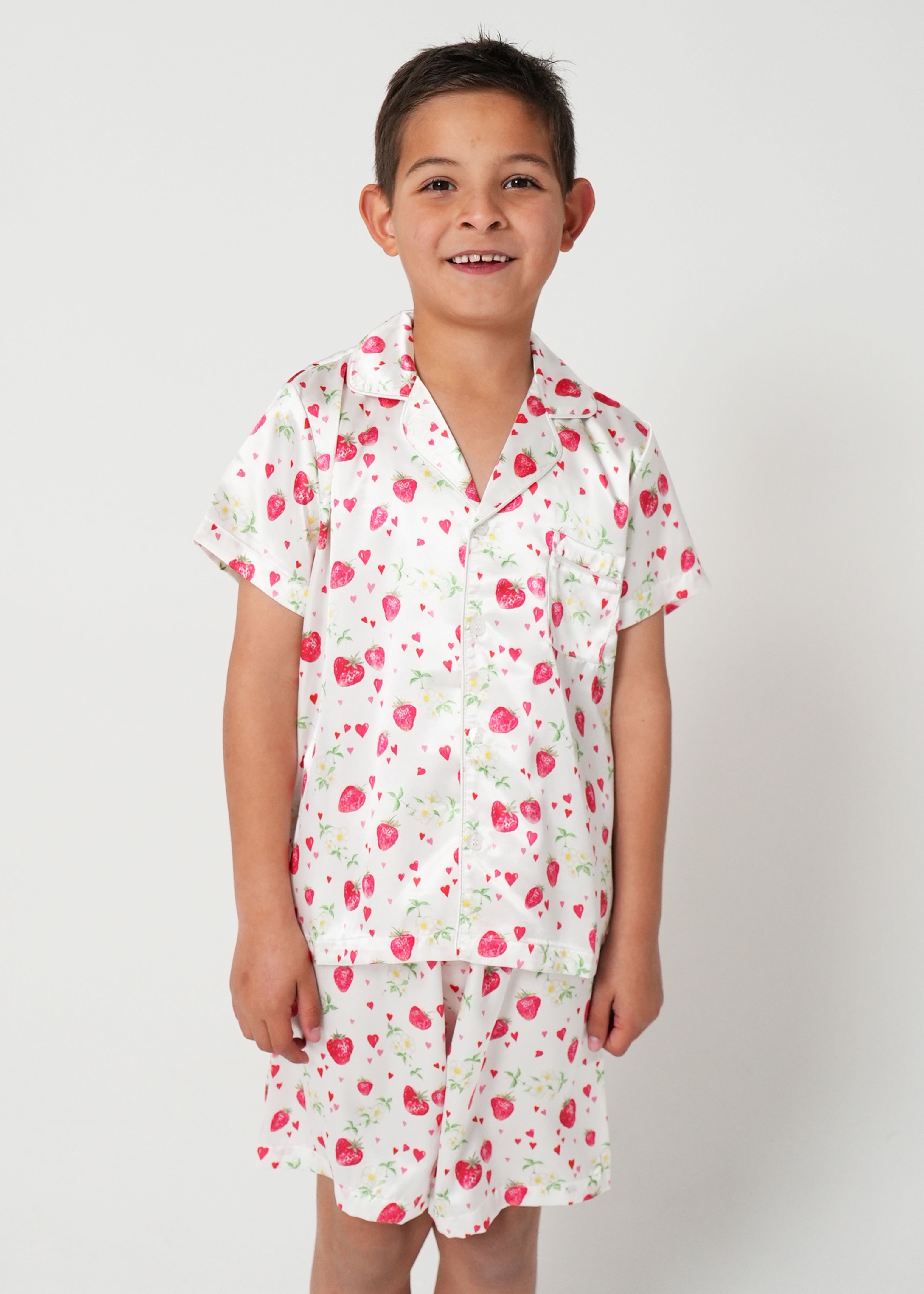Elevate your sleep game instantly with our cosy Strawberries Satin Pajamas. Made with your comfort in mind, these adorable pajamas feature knee length shorts, buttery soft fabric and a stretchy waistband for the ultimate comfort experience.
