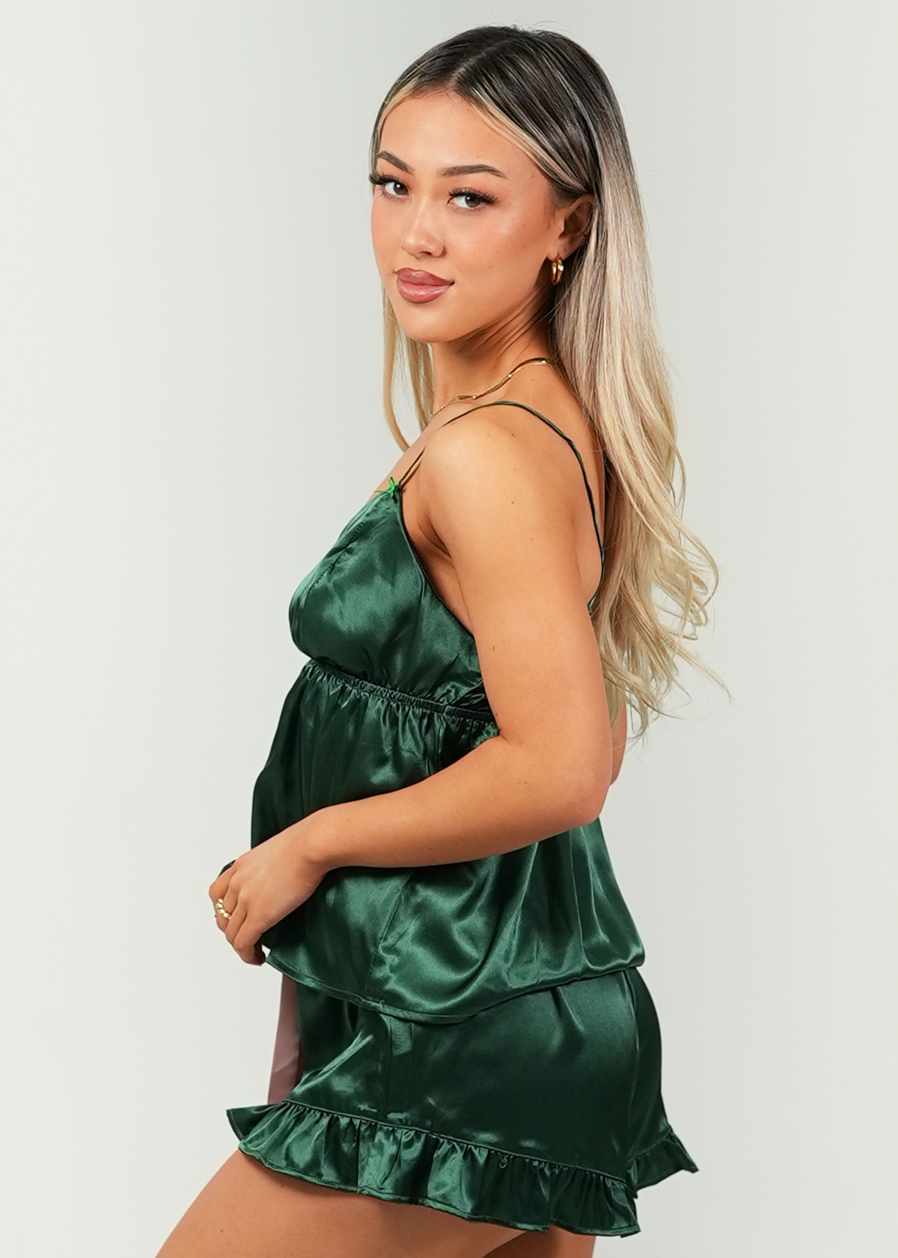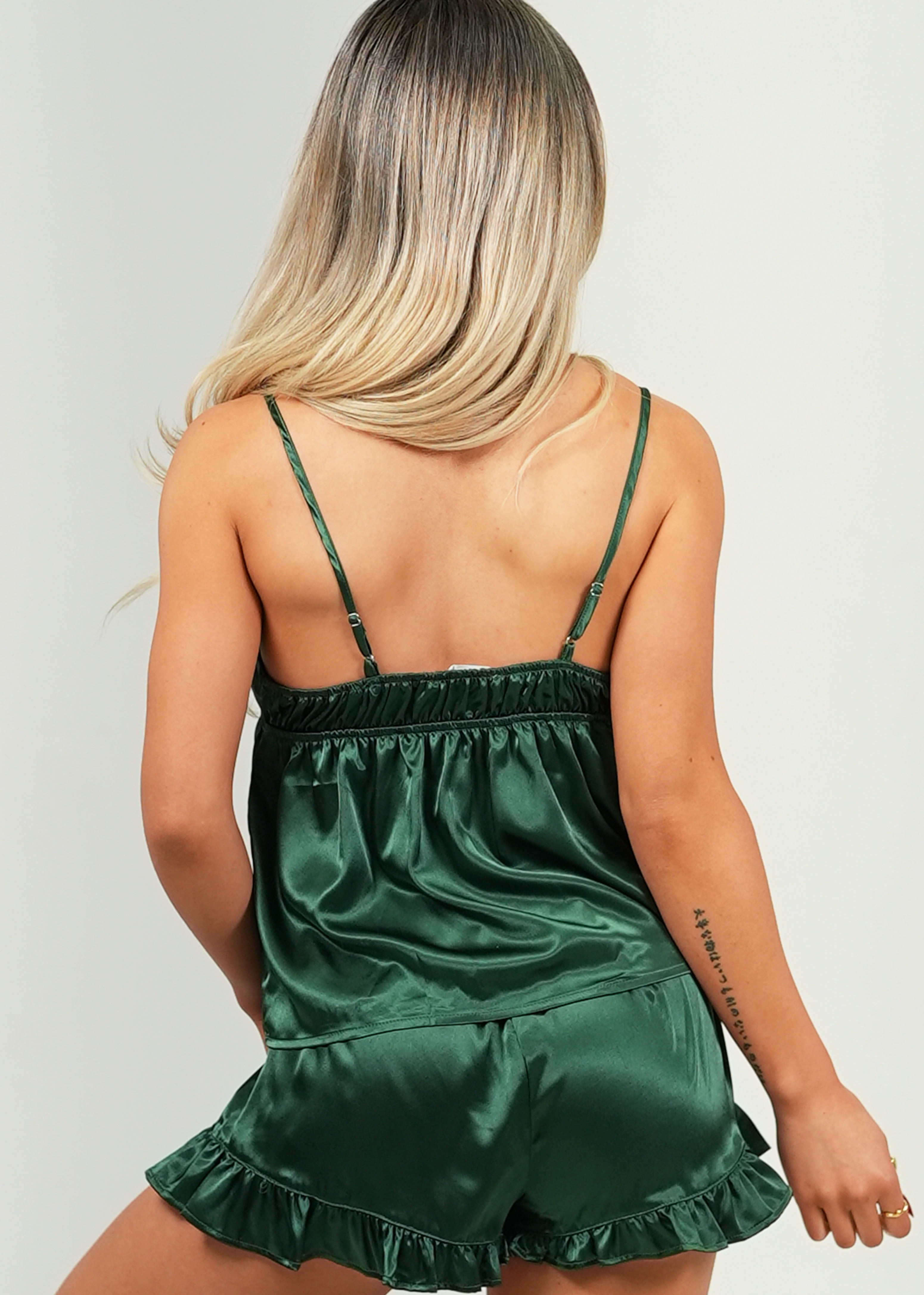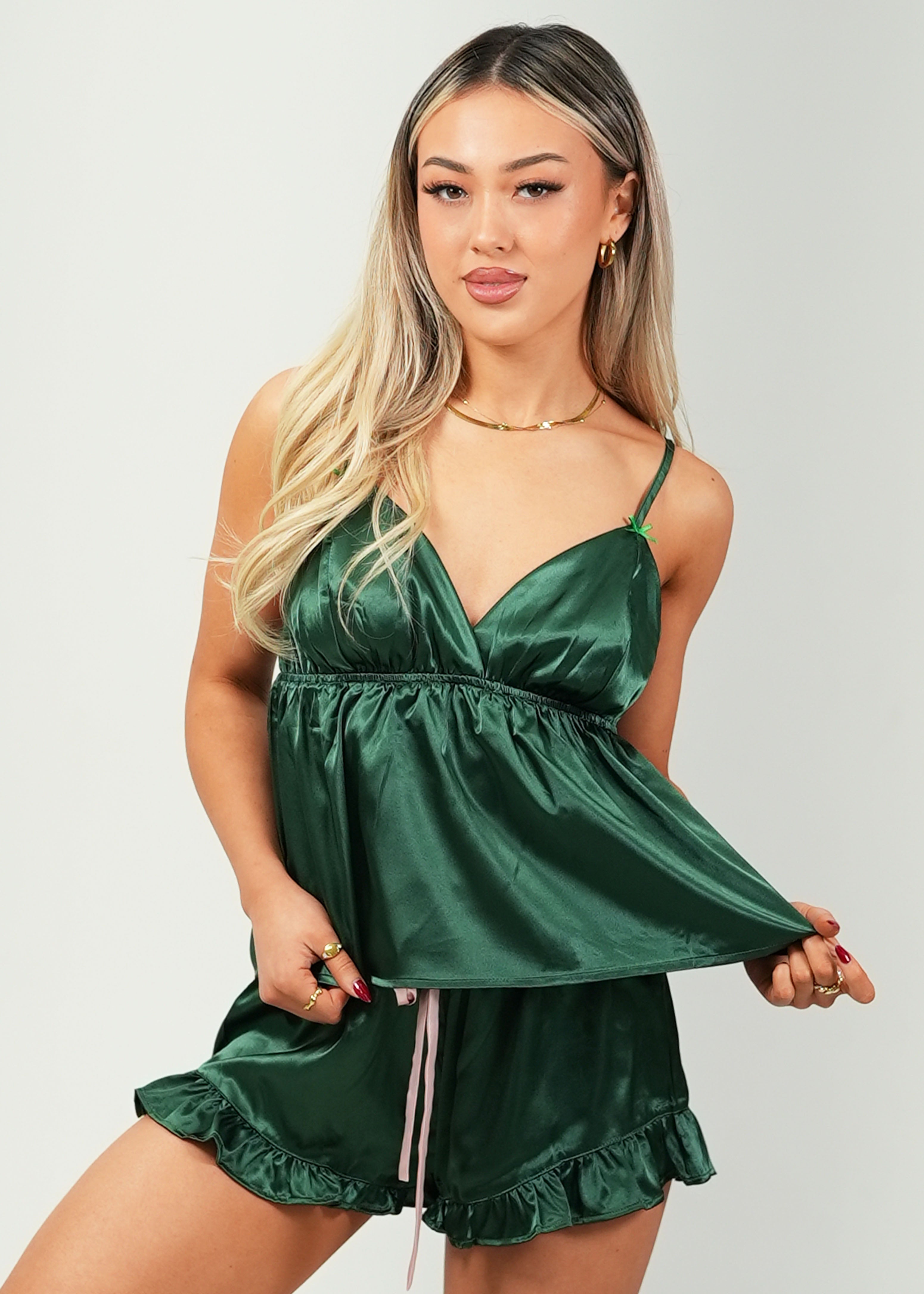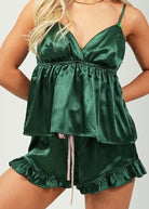 Add a touch of summer goodness to your bedtime with our gorgeous Satin Camisole Pajamas. Fashioned with the cutest frill detailed shorts, adjustable straps and flattering neckline, you are sure to have the sweetest sleep!