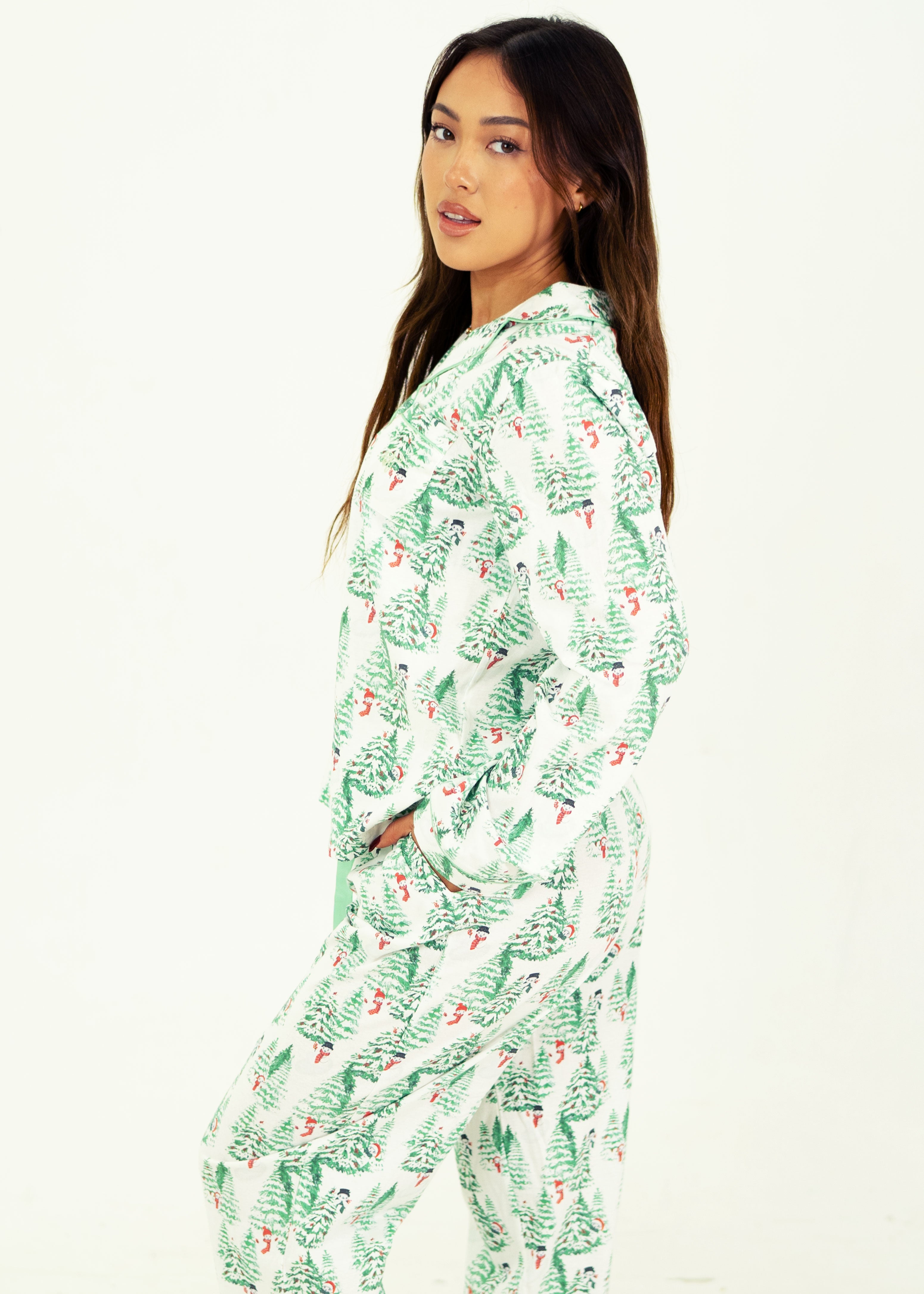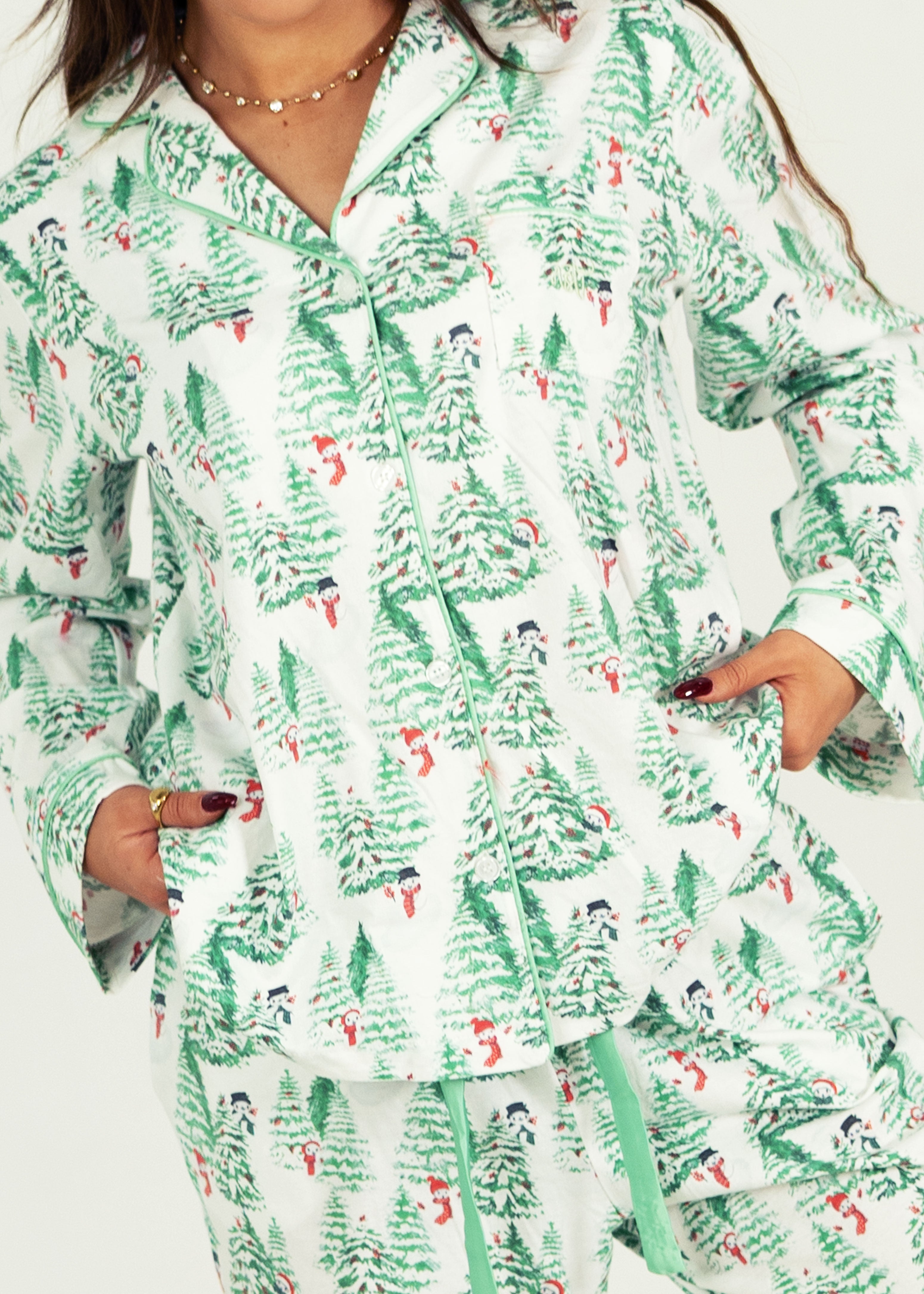 Every detail has been lovingly considered for your ultimate comfort in this Frosty Forest Pj set - from the relaxed soft cotton fabric, deep pockets & cute little buttons. Extra stretchy waistband can be worn high.