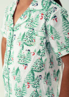 Add a touch of Christmas nostalgia to your bedtime with these gorgeous Frosty Forest Jersey Knit Cotton Short Pjs. Featuring adorable buttons and an extra stretchy waistband for the ultimate sleep experience.