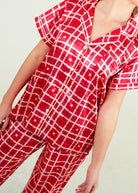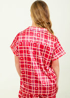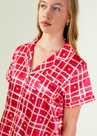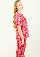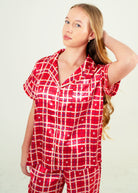 Starry Tartan Red Short Top/ Long Pants Satin PJ Set