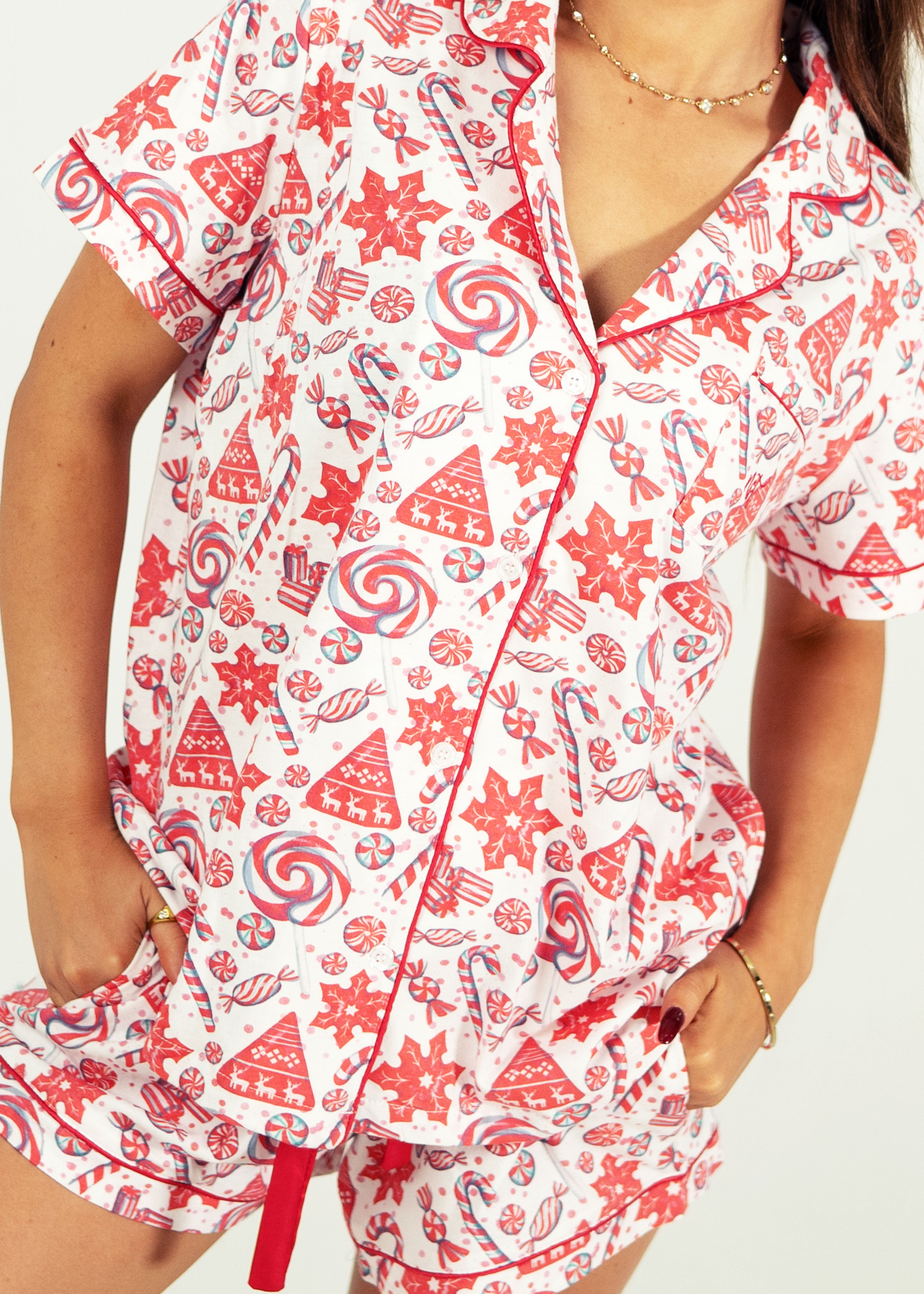 Add a touch of coziness to your bedtime with these gorgeous Sweet Christmas White Jersey Knit Cotton Fabric Pjs. With deep pockets, adorable buttons, and an extra stretchy drawstring waistband for the ultimate comfort experience, you are sure to have the most tranquil sleep.