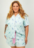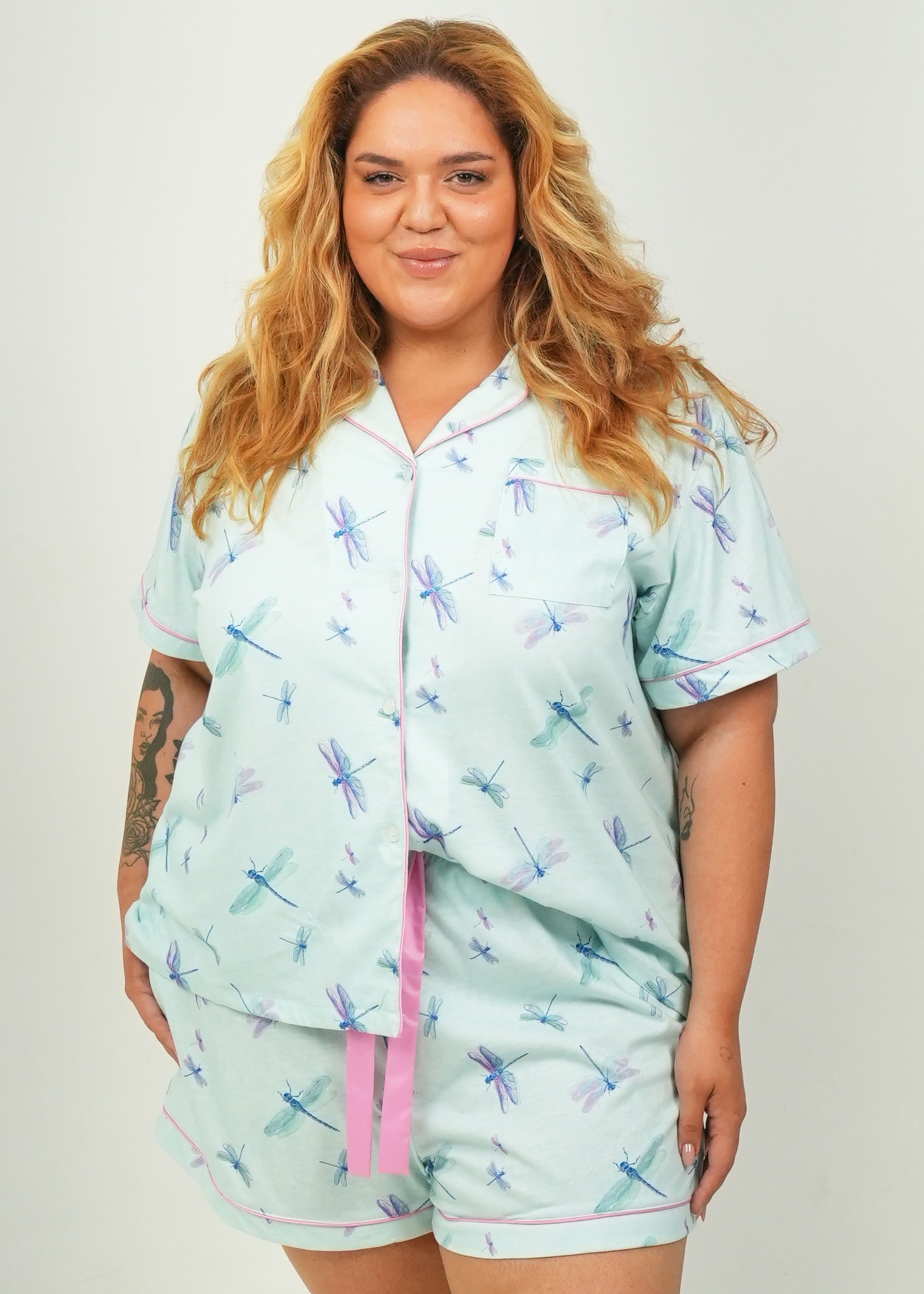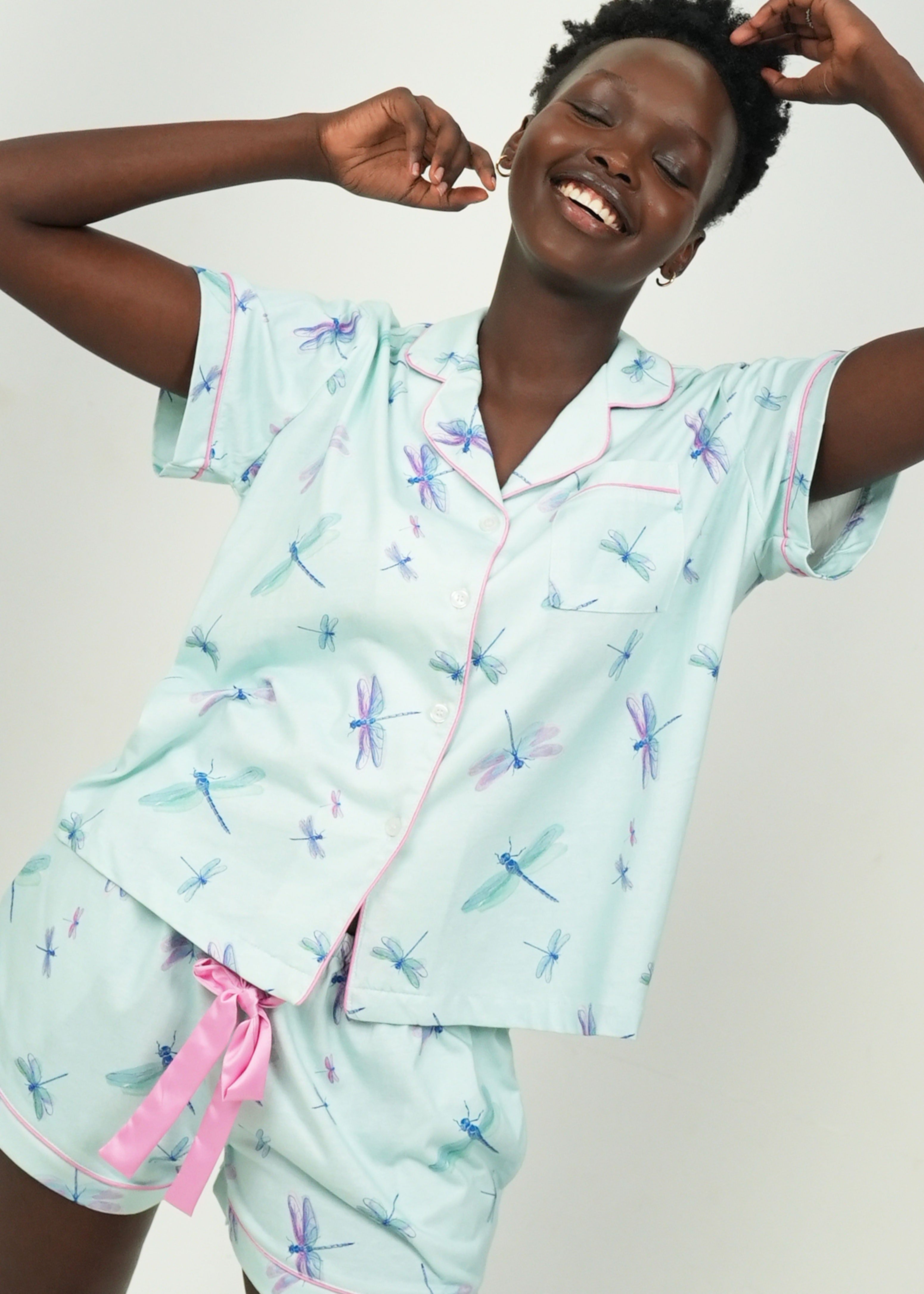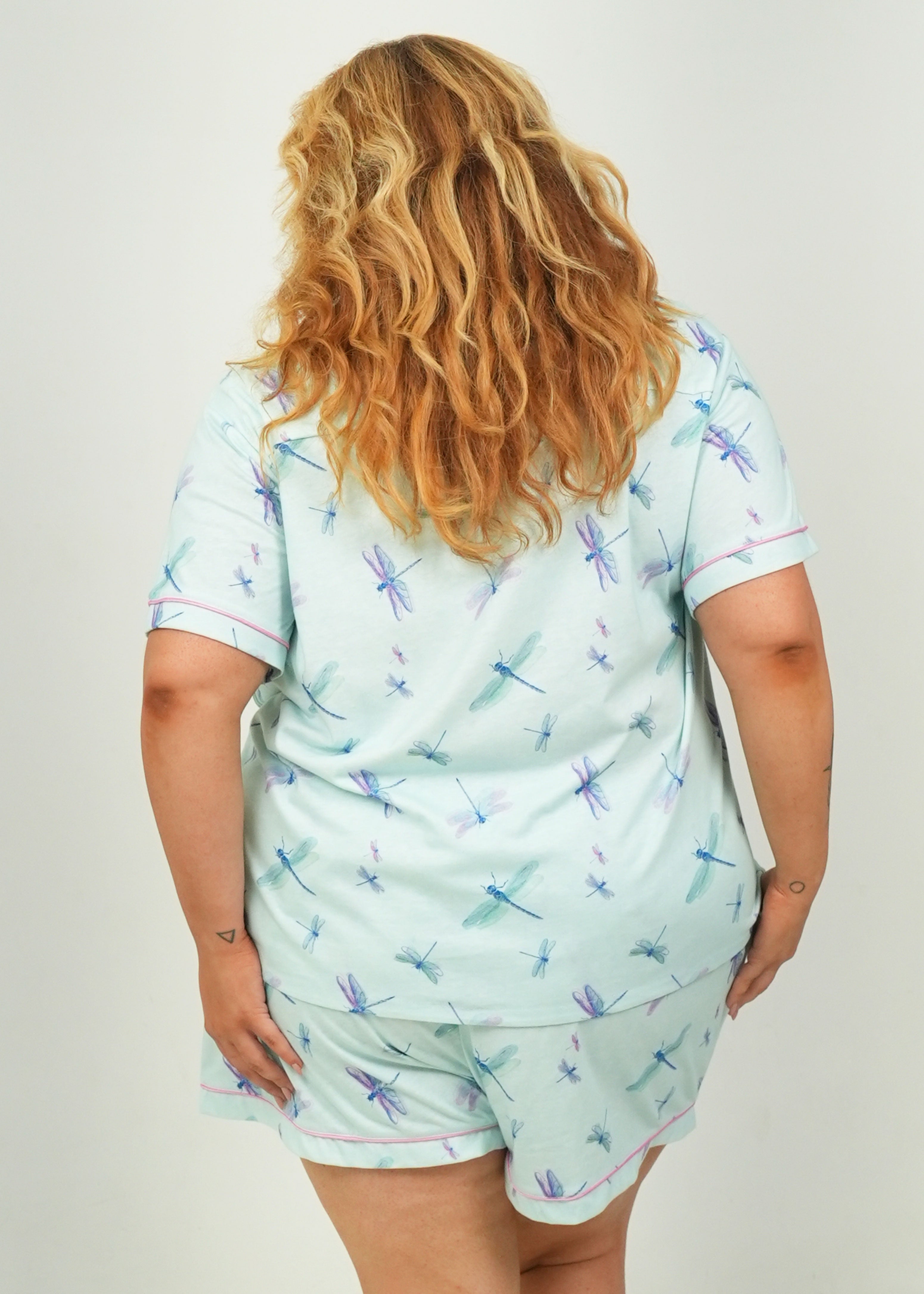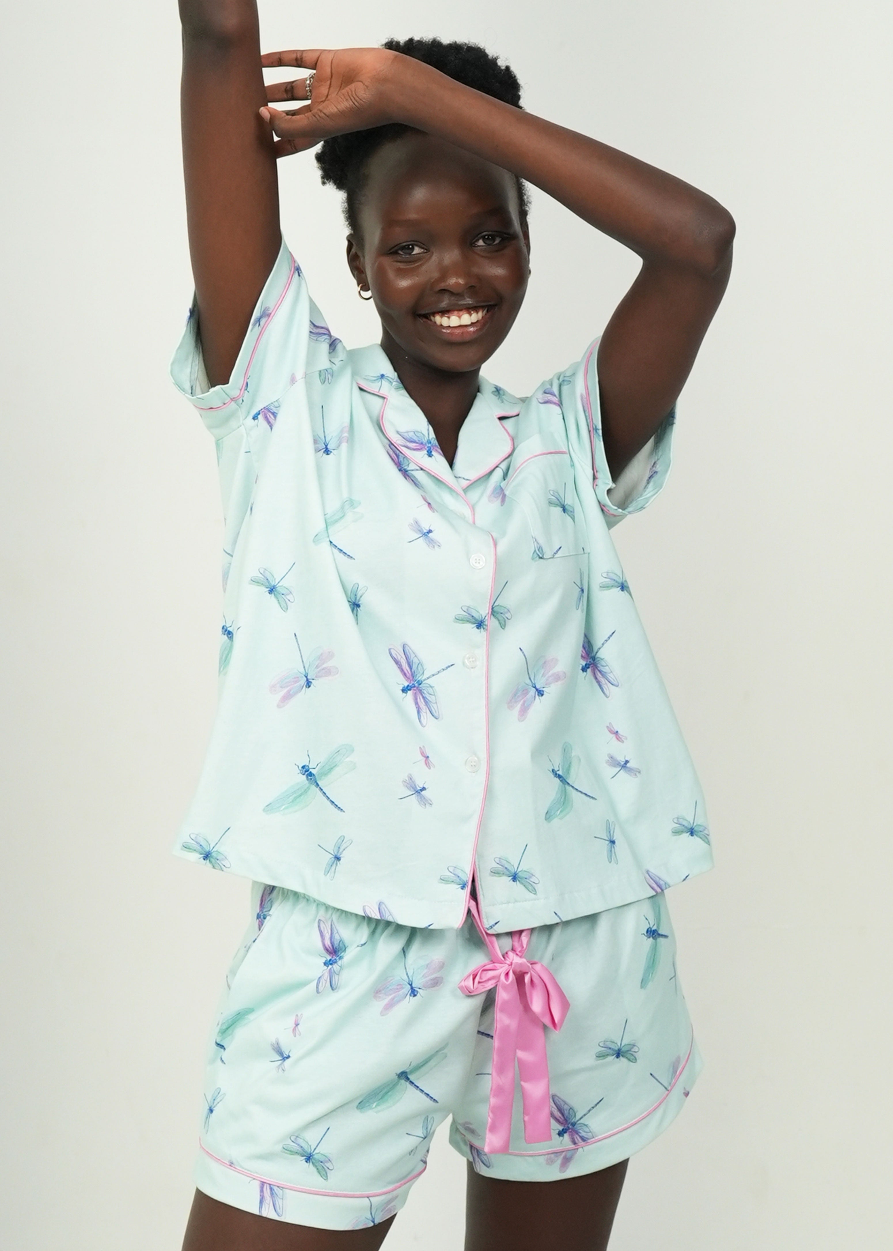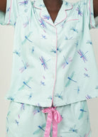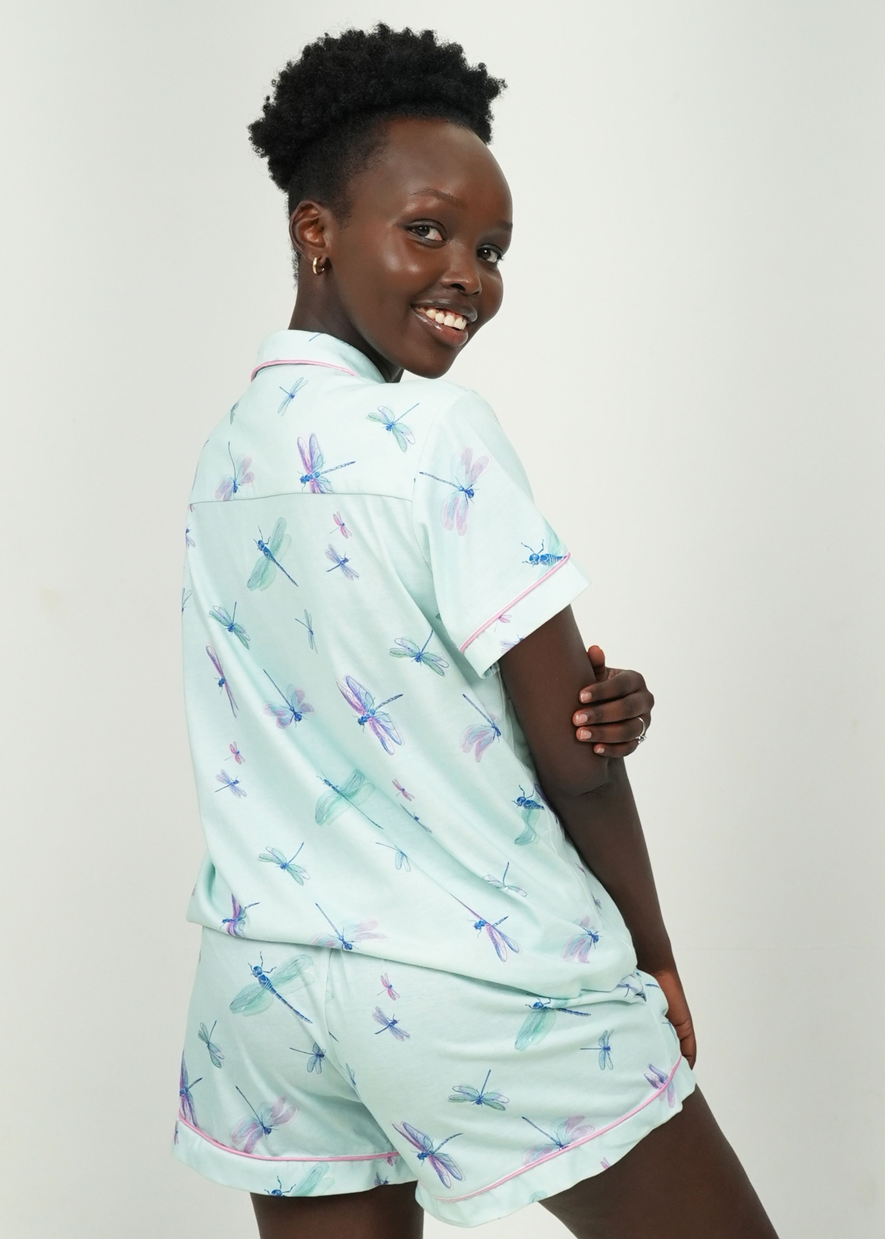 Womens Aqua Dragonflies Jersey Knit Cotton Short PJ Set