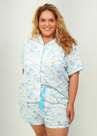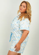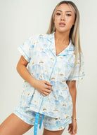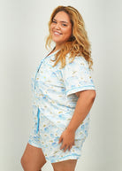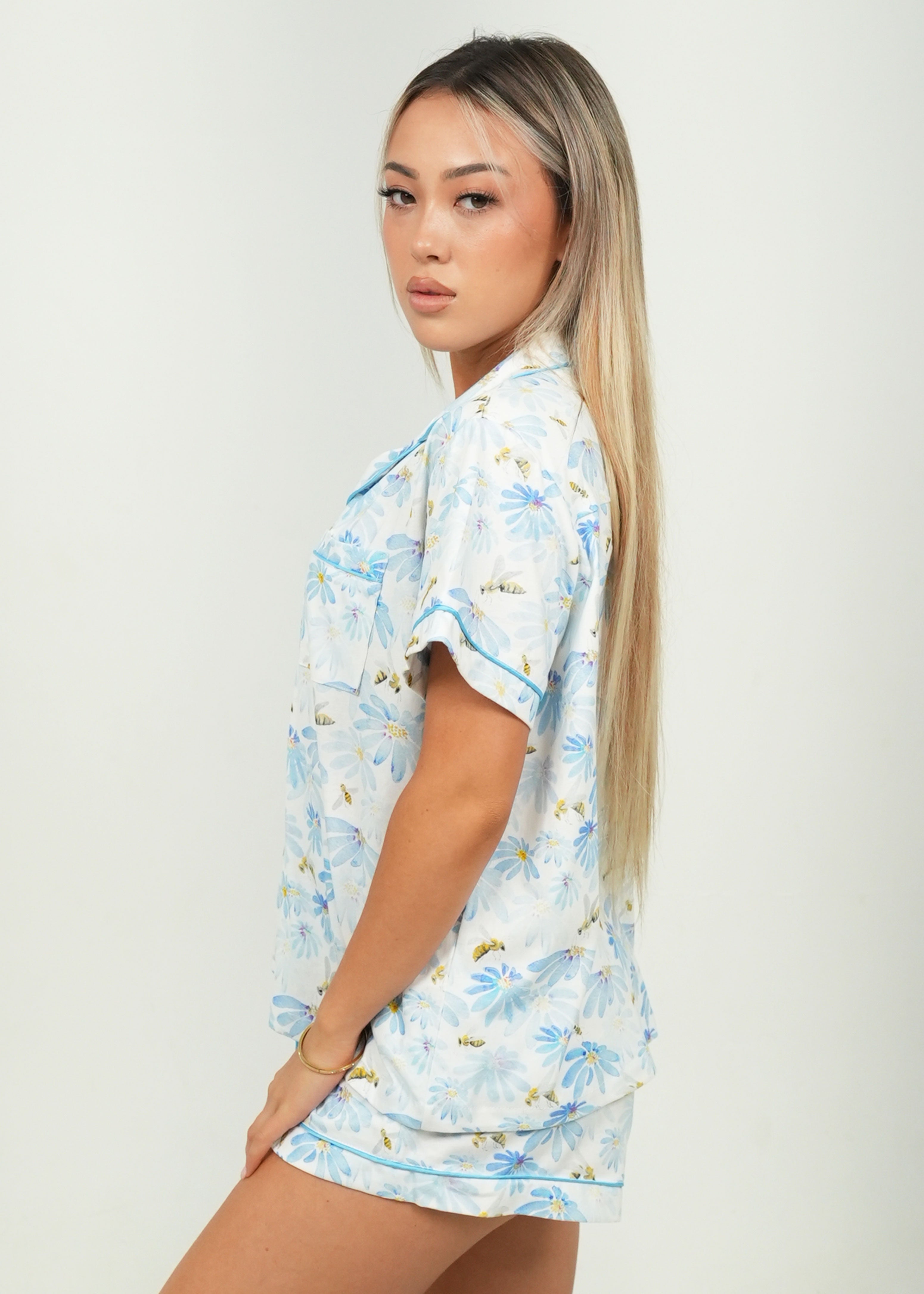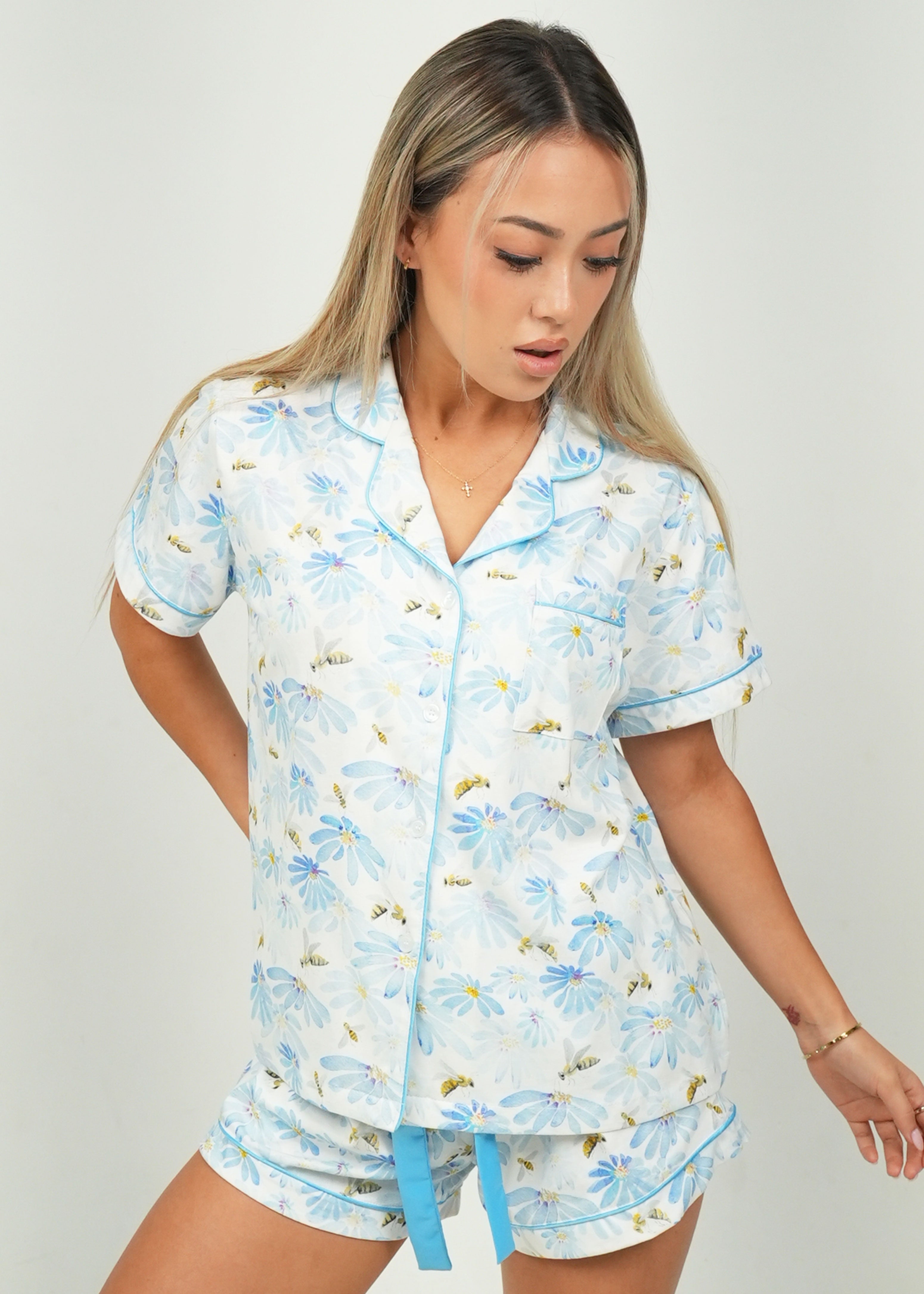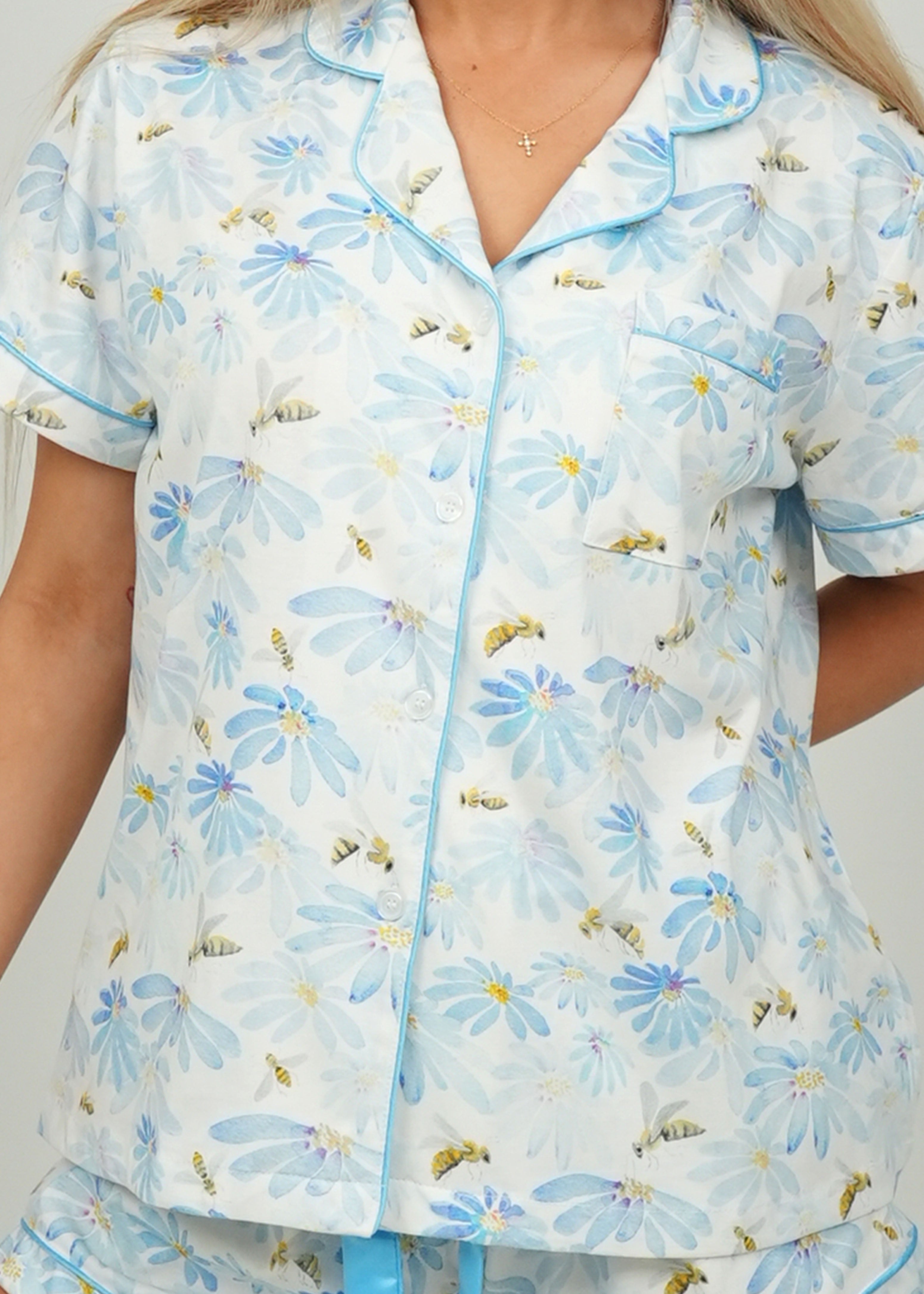 Womens Blue Daisies and Bees Jersey Knit Cotton Short PJ Set