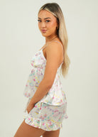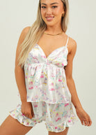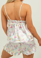 Add a touch of summer goodness to your bedtime with our gorgeous Satin Camisole Pajamas. Fashioned with the cutest frill detailed shorts, adjustable straps and flattering neckline, you are sure to have the sweetest sleep!