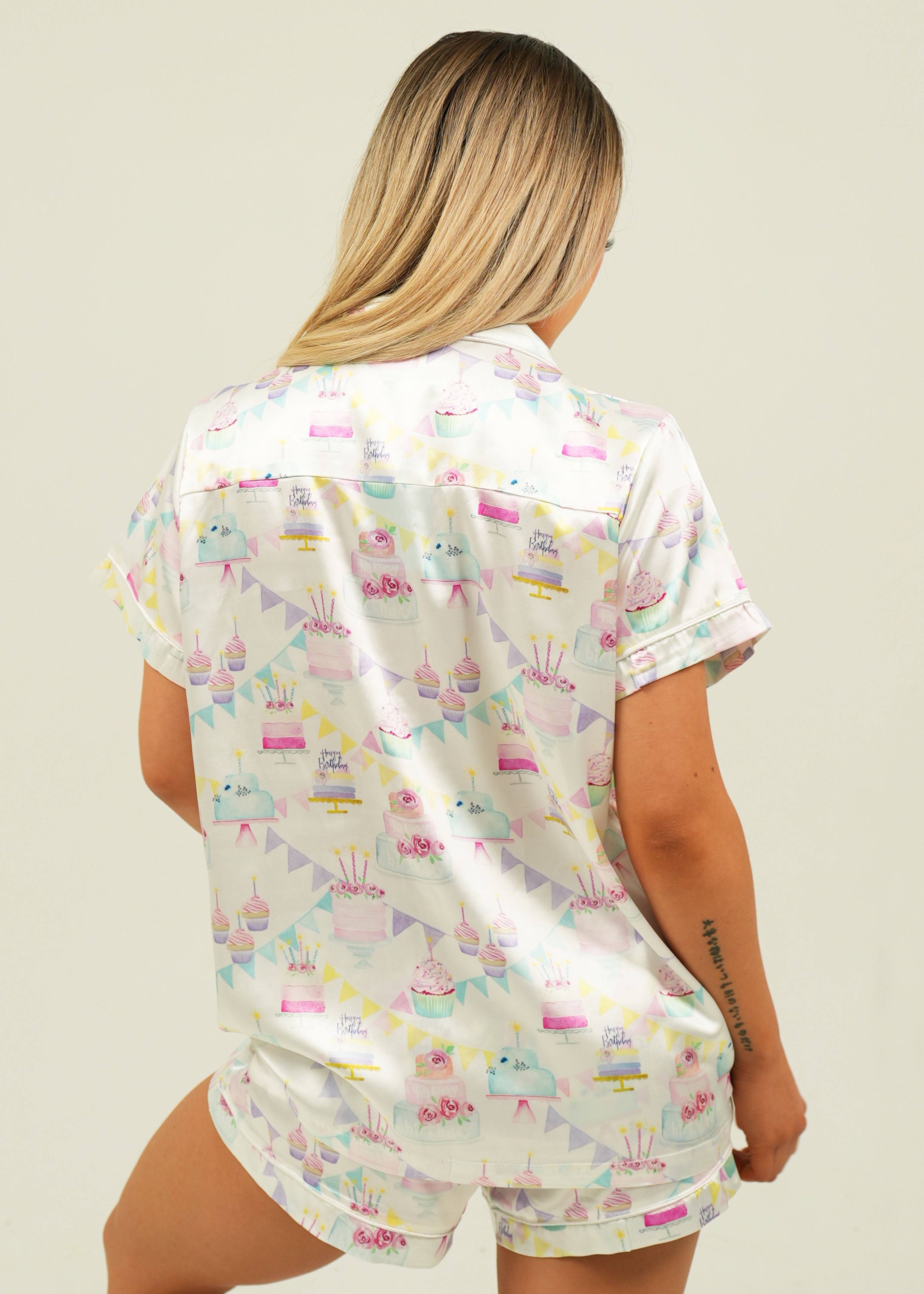 Womens Birthday Satin Short Pajama Set
