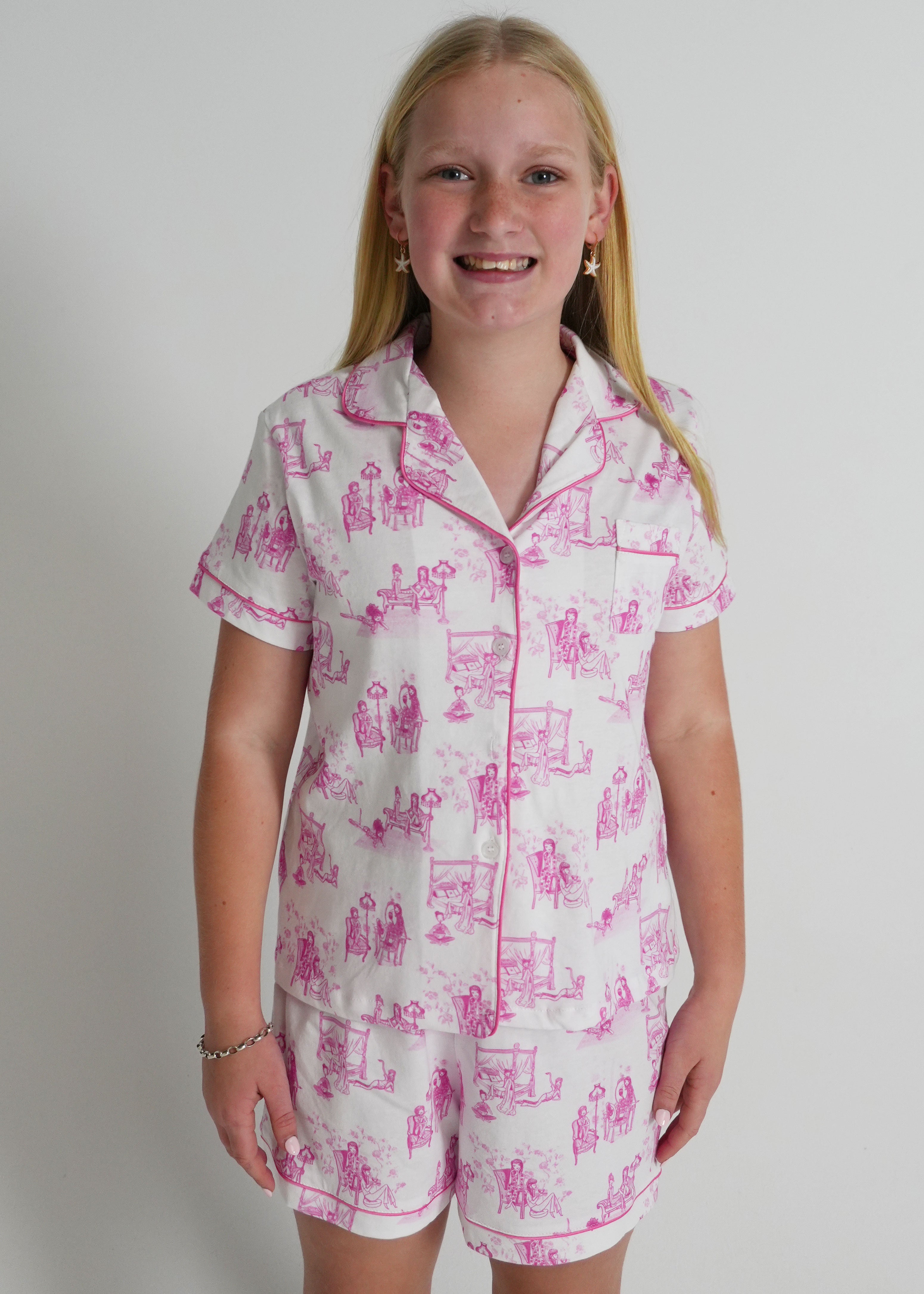 Girls - Dollhouse Pink Jersey Knit Cotton Short PJ Set