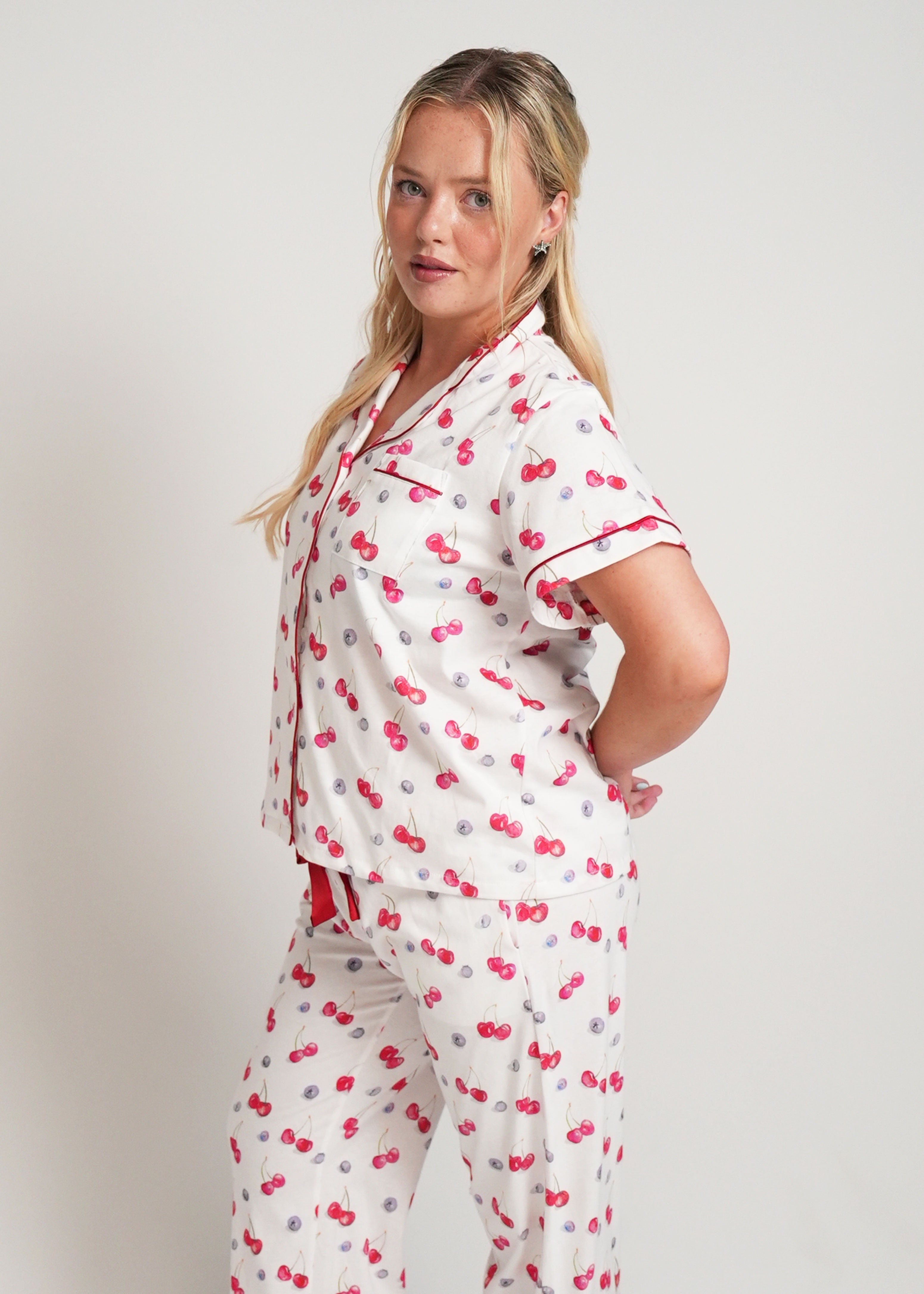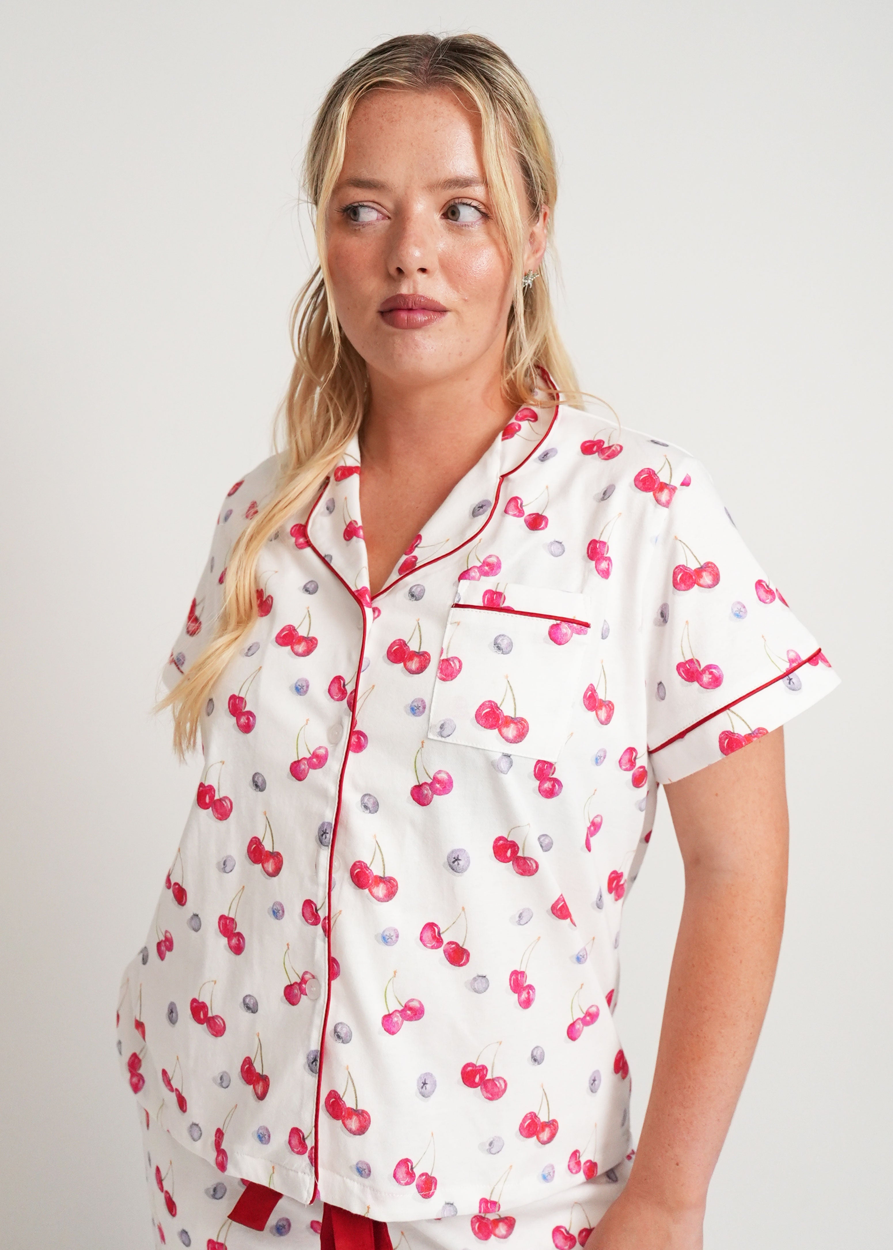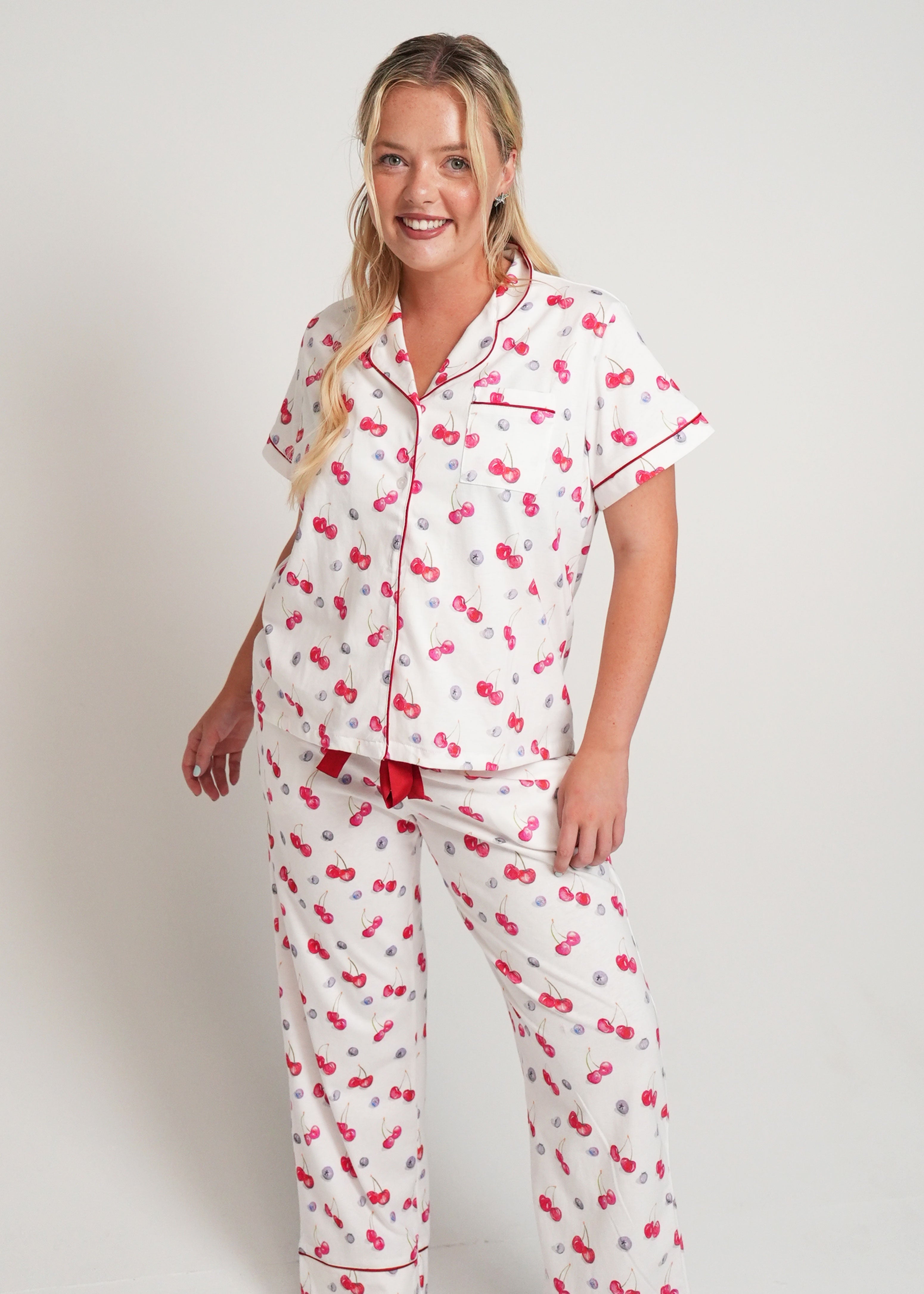 Every detail has been lovingly considered for your ultimate comfort in the Cherries and Berries Pj set - from the relaxed soft cotton fabric & cute little buttons. Extra stretchy waistband can be worn high.