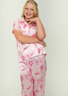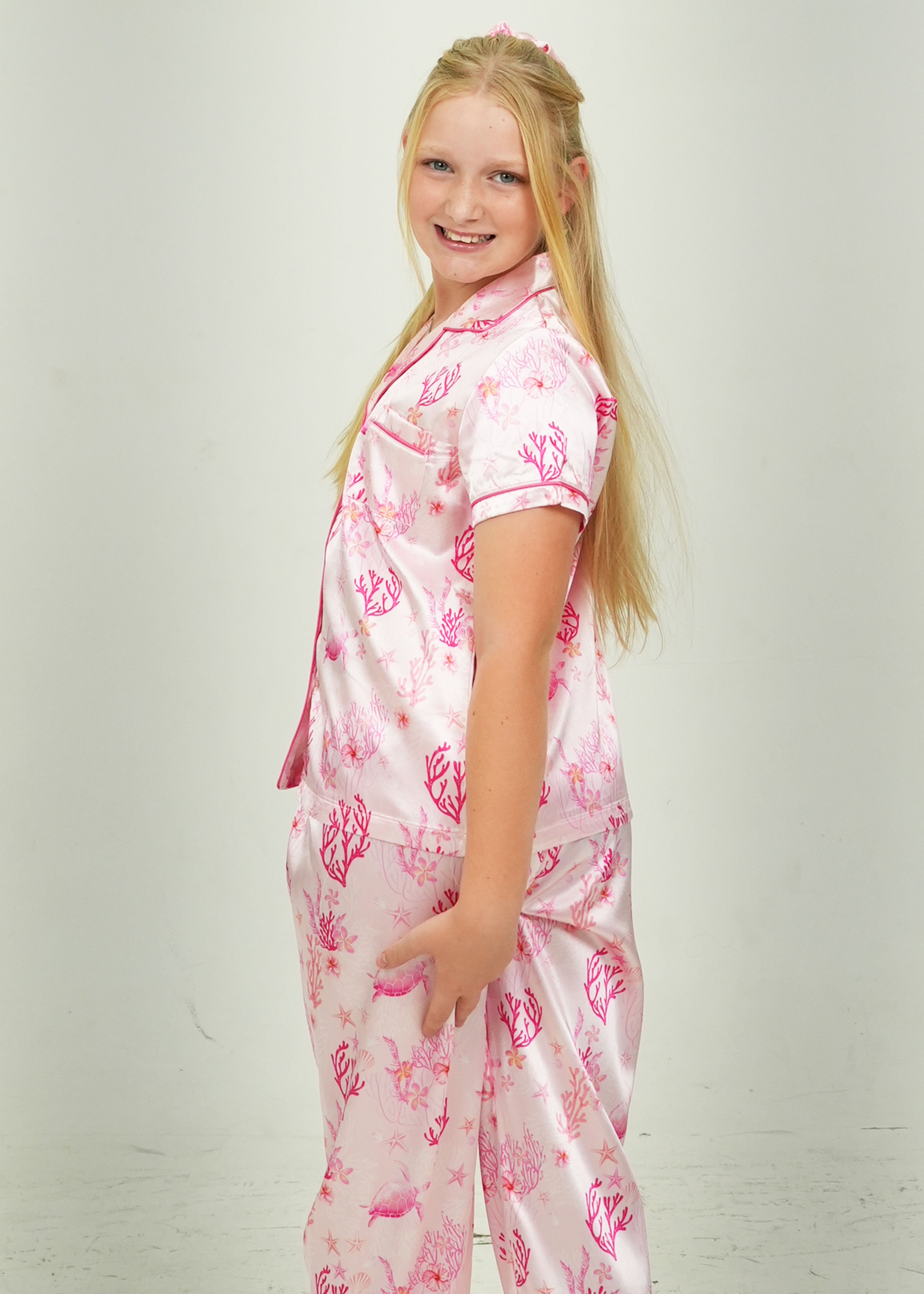 Girls - Pink Coral Garden Satin Long Pajama Set