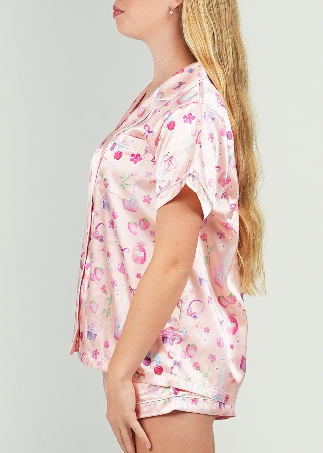 Drift into to a world of Girls Night In magnificence with our divinely whimsical Satin Pajamas that will send you into sweet slumber. Embellished with deep pockets, adorable buttons, and an extra stretchy waistband, experience the comfiest sleep.