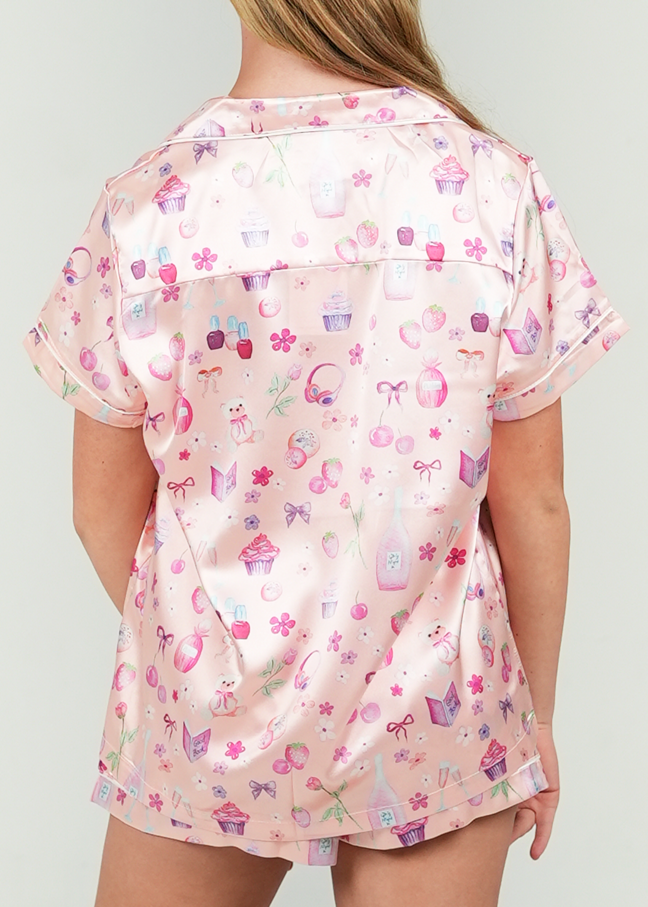 Girls - Girls Night In Short Satin Pajama Set Peach