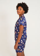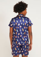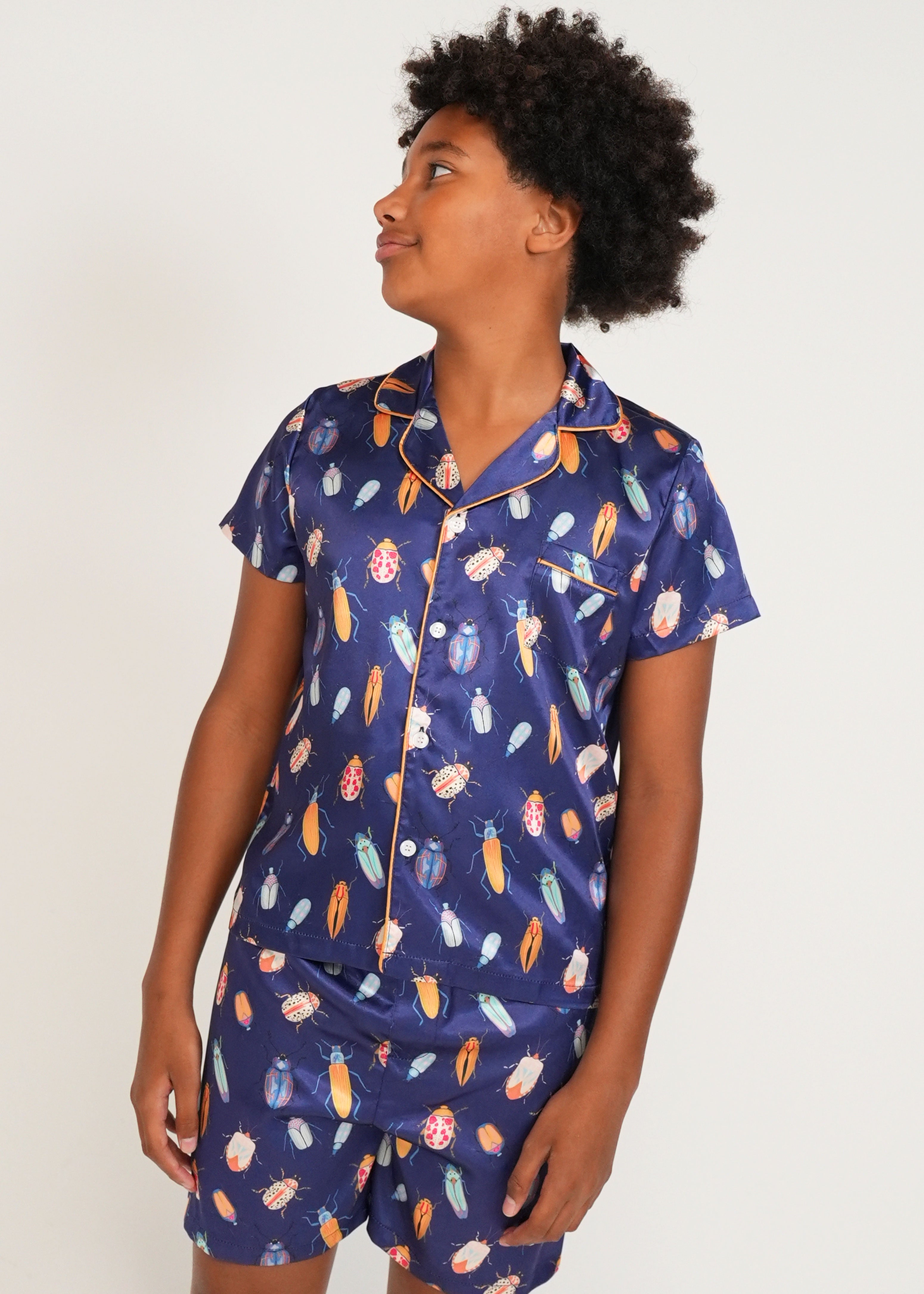 Elevate your sleep game instantly with our cosy Beetles Navy Satin Pajamas. Made with your comfort in mind from buttery soft, breathable fabrics. These tried and true staple pajamas feature deep pockets, knee length shorts, and a stretchy drawstring waistband for the ultimate comfort experience.
