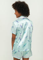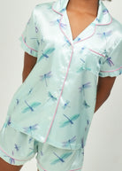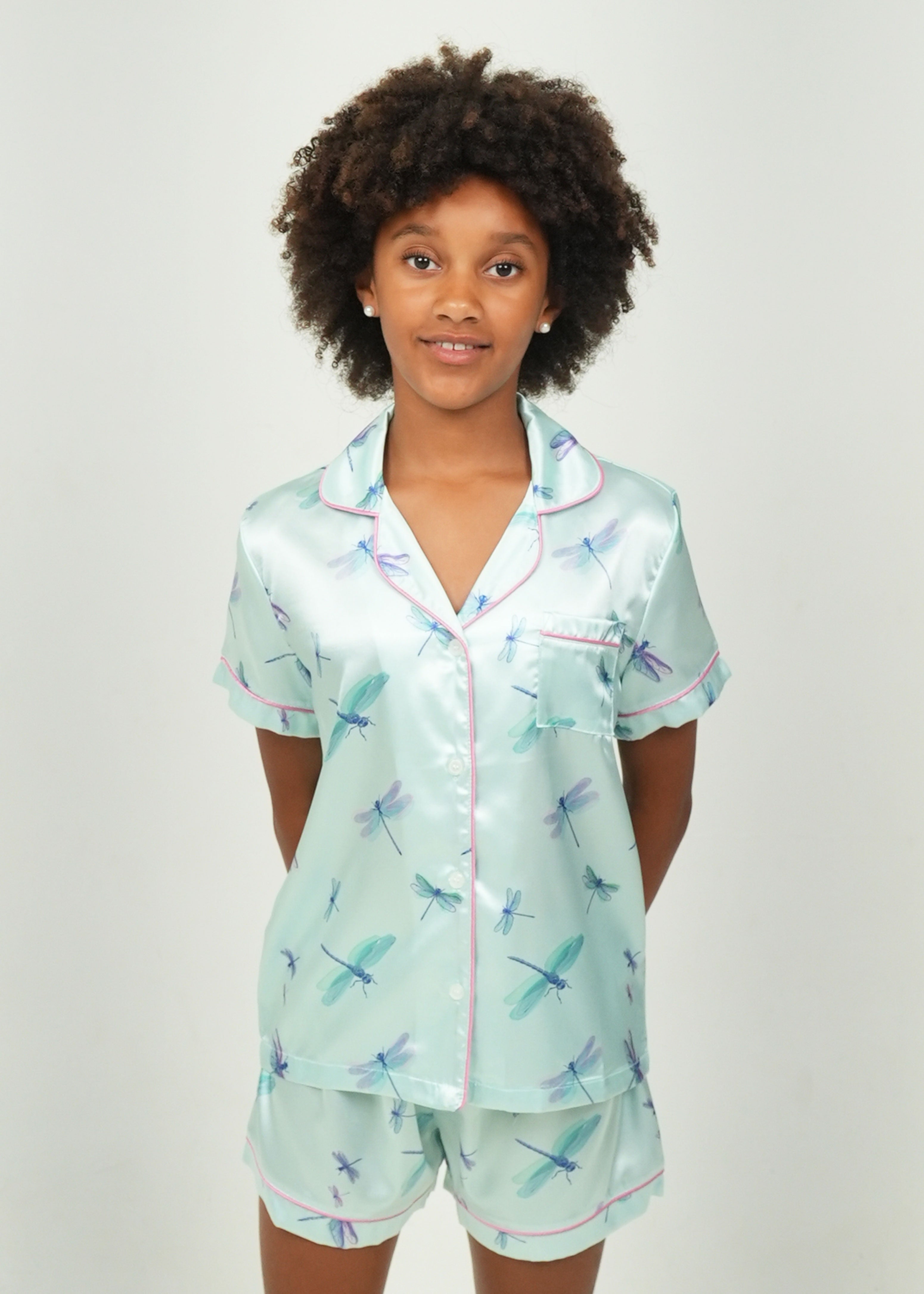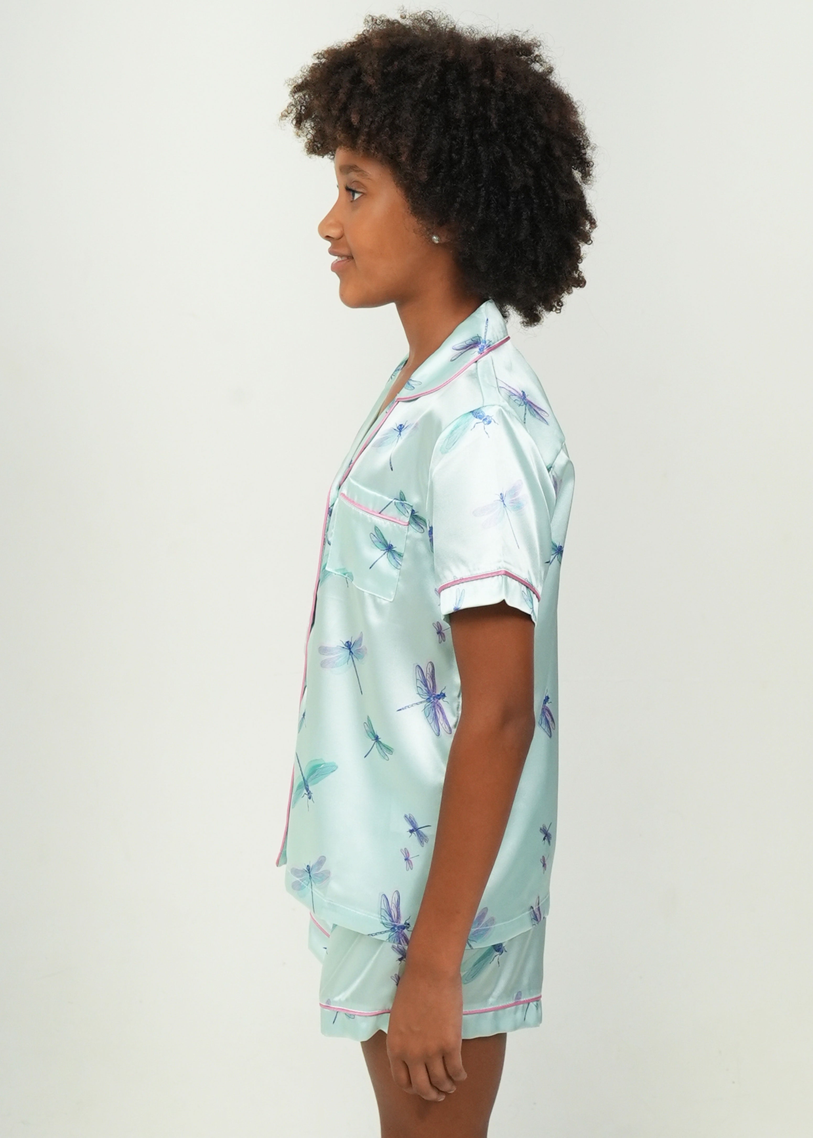 Girls - Aqua Dragonflies Short Satin PJ Set