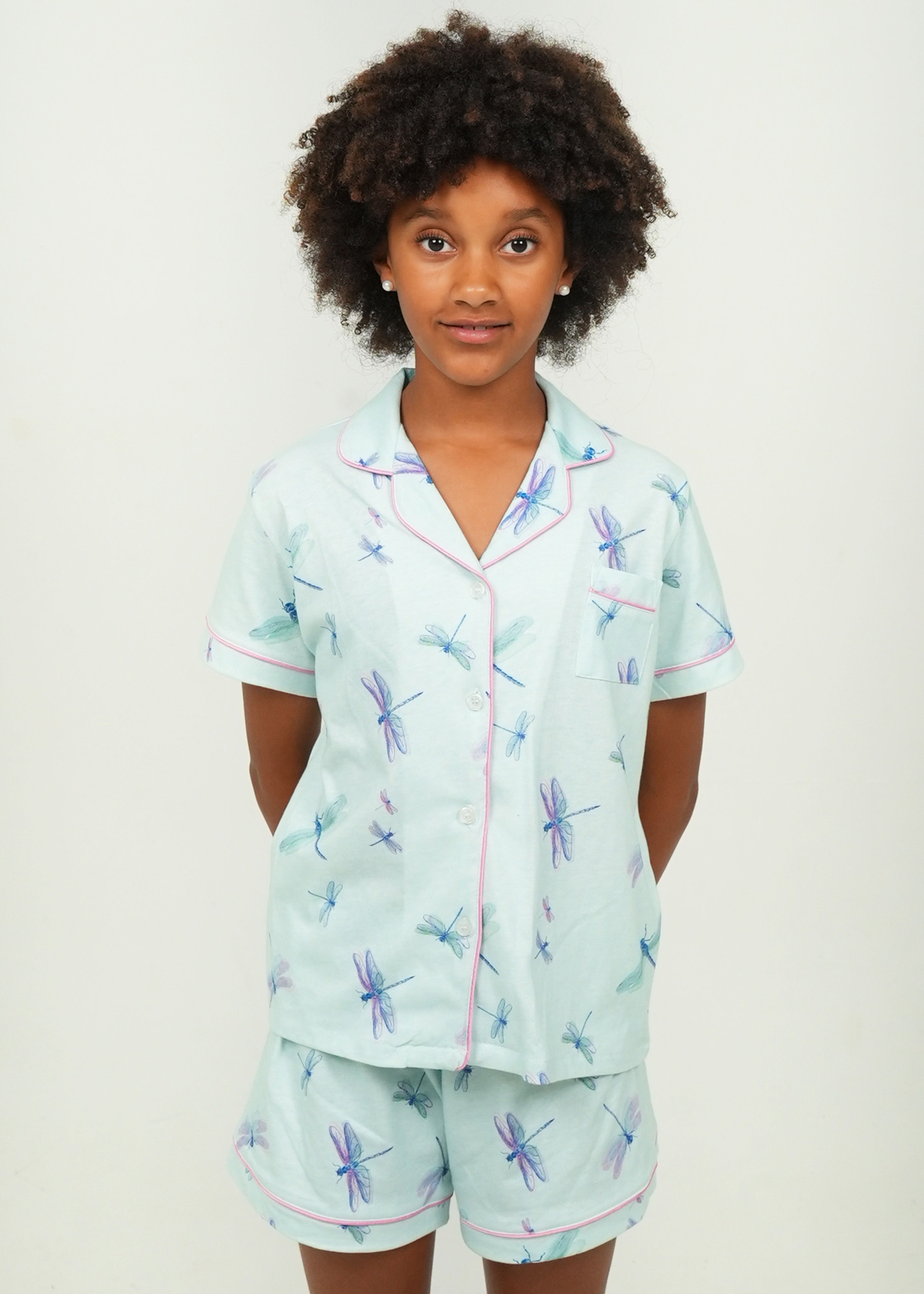 Girls - Aqua Dragonflies Short Jersey Knit Cotton PJ Set