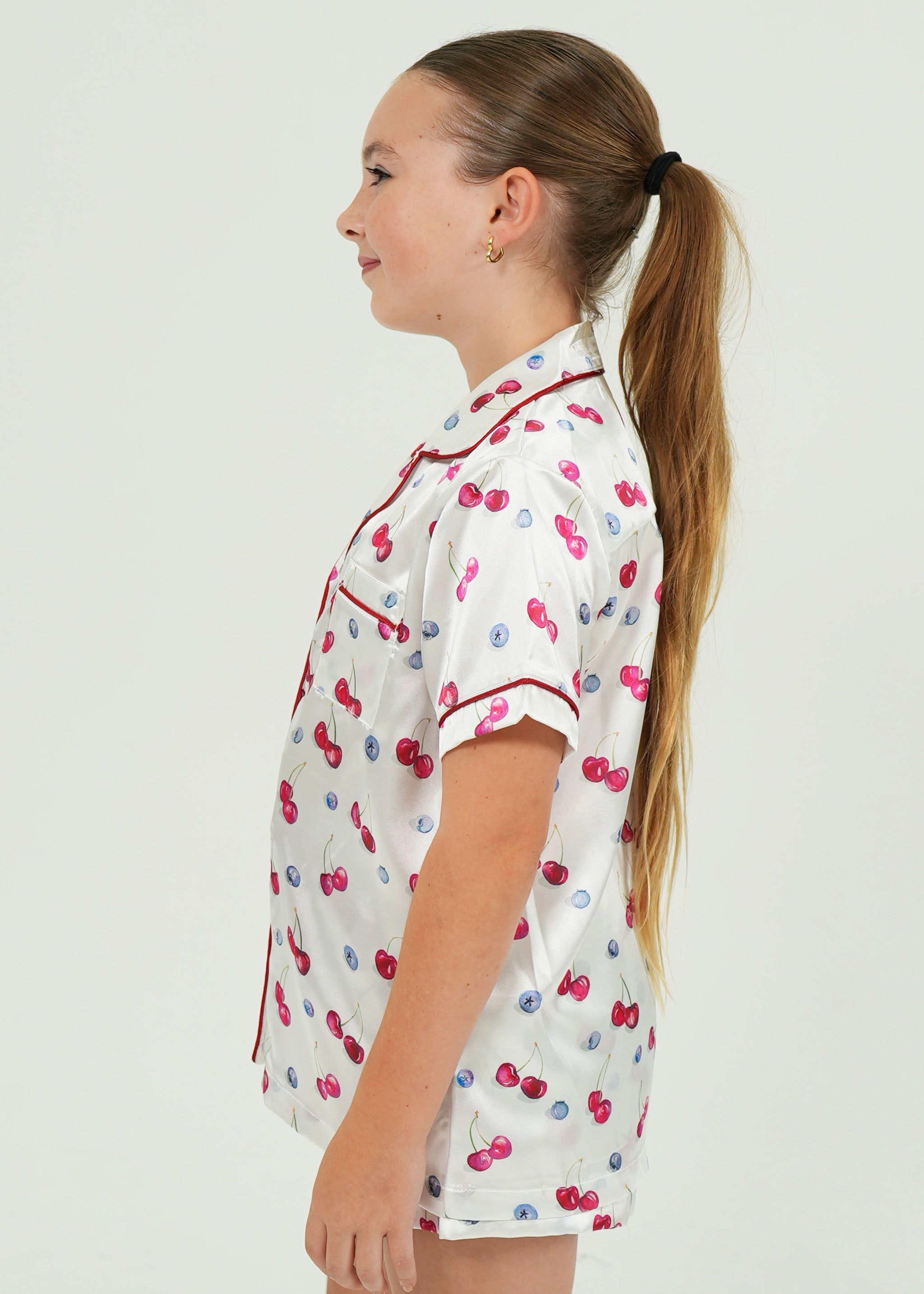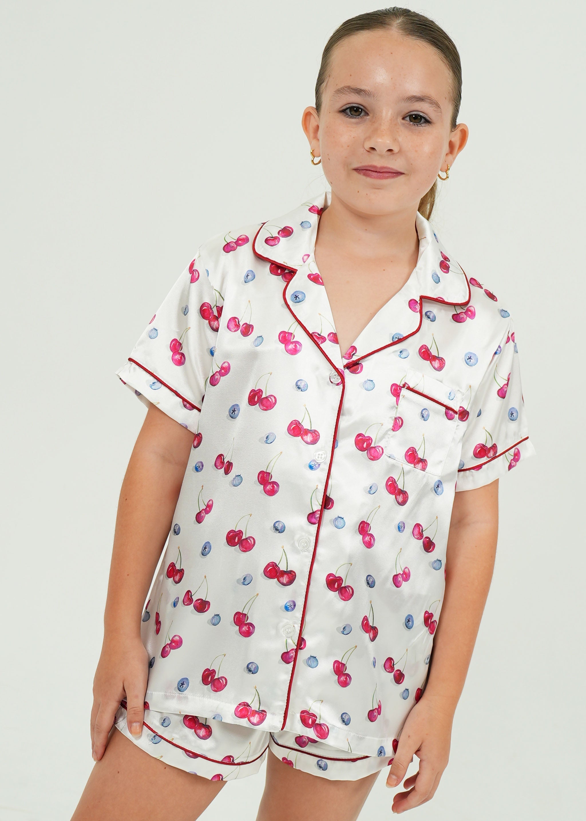 Girls Cherries and Berries Satin Short Pajama Set