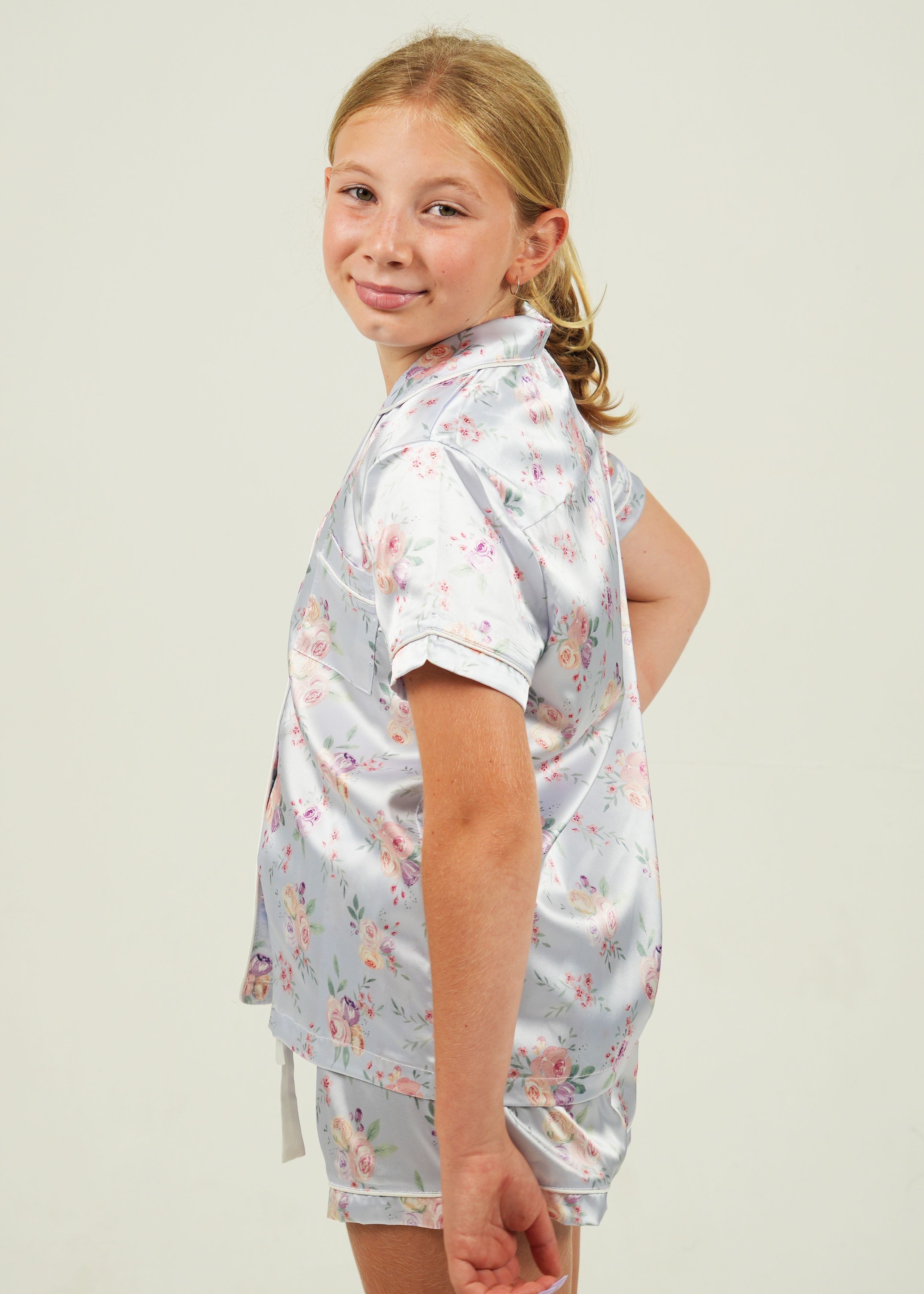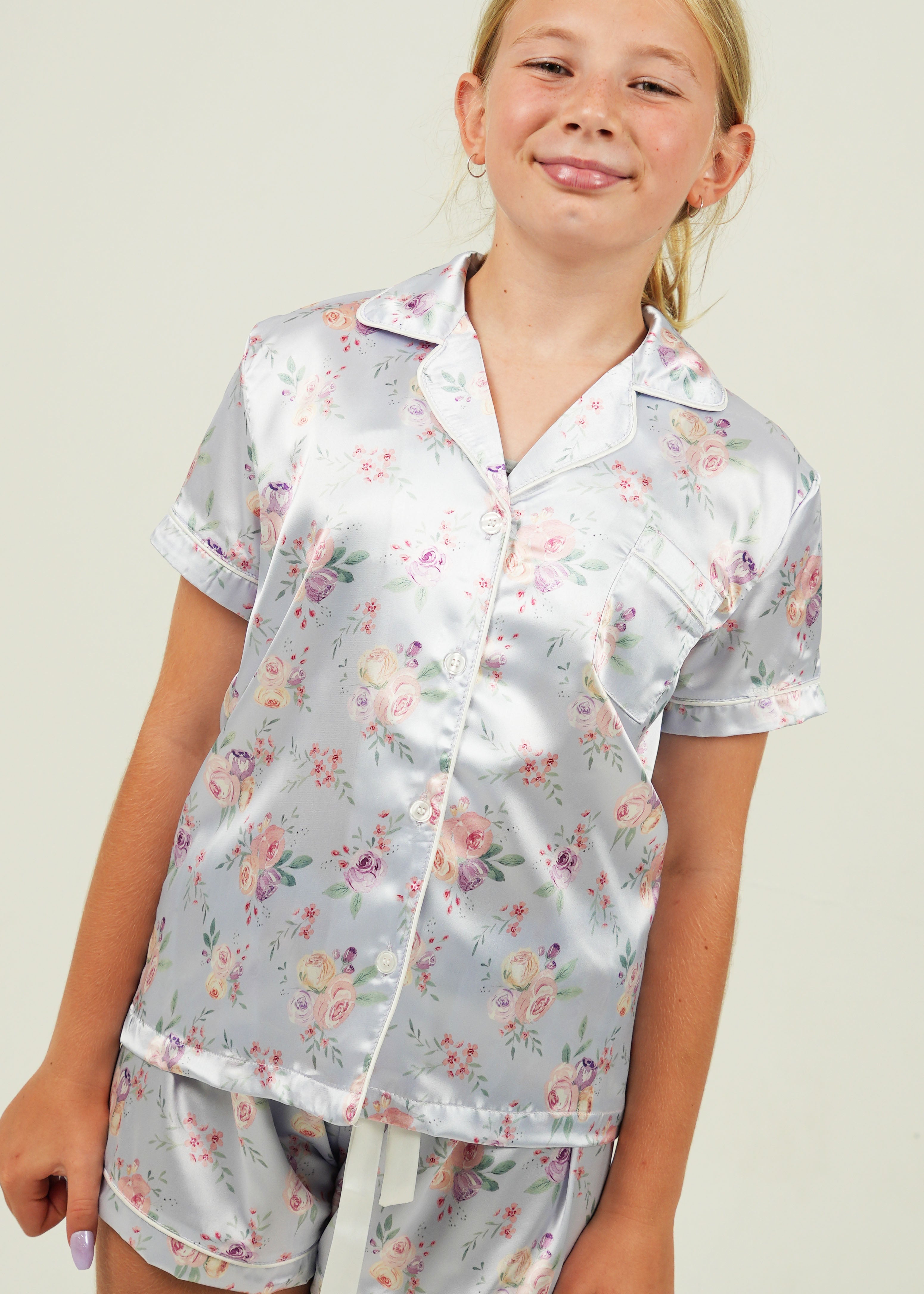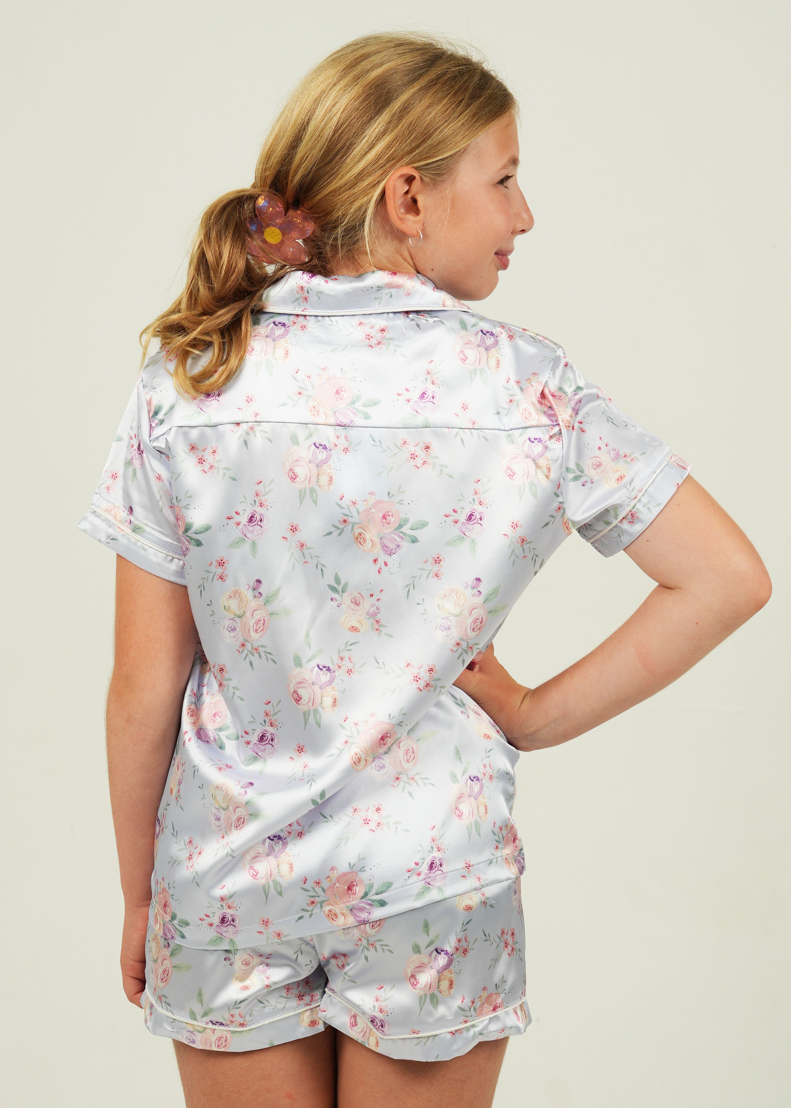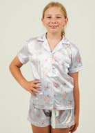Girls Lilac Blossom Satin Short Pajama Set