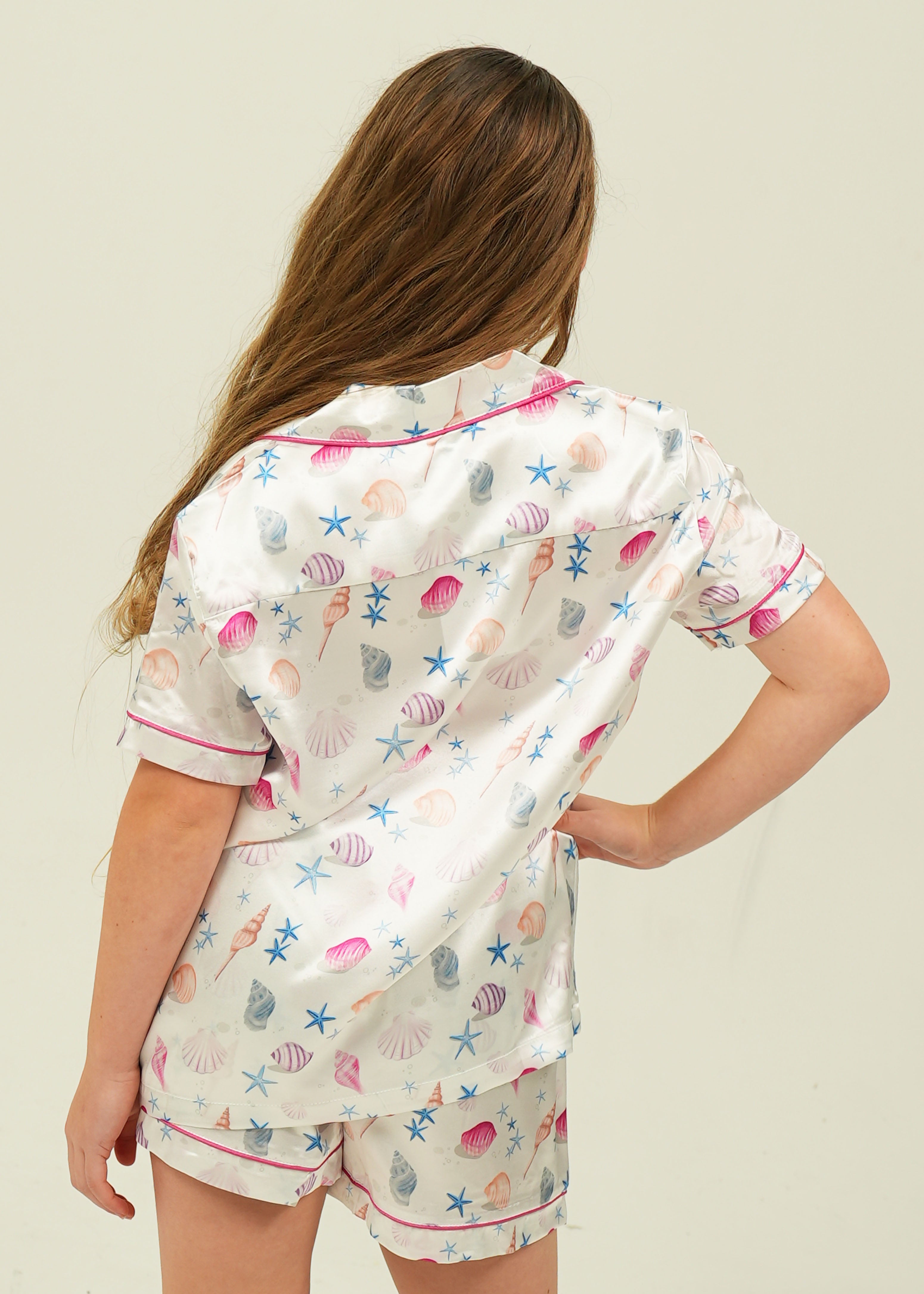 Girls Seashells Satin Short Pajama Set