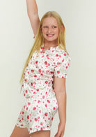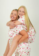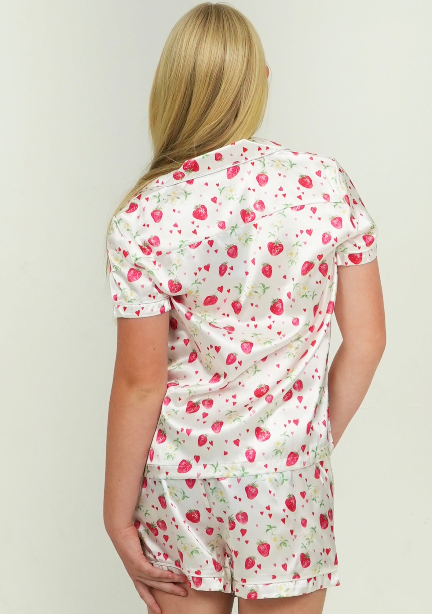 Add a touch of fruity goodness to your bedtime with our gorgeous Strawberries Satin Pajamas. Beautifully detailed with deep pockets, adorable buttons, and an extra stretchy drawstring waistband, you are sure to have a peachy keen sleep!