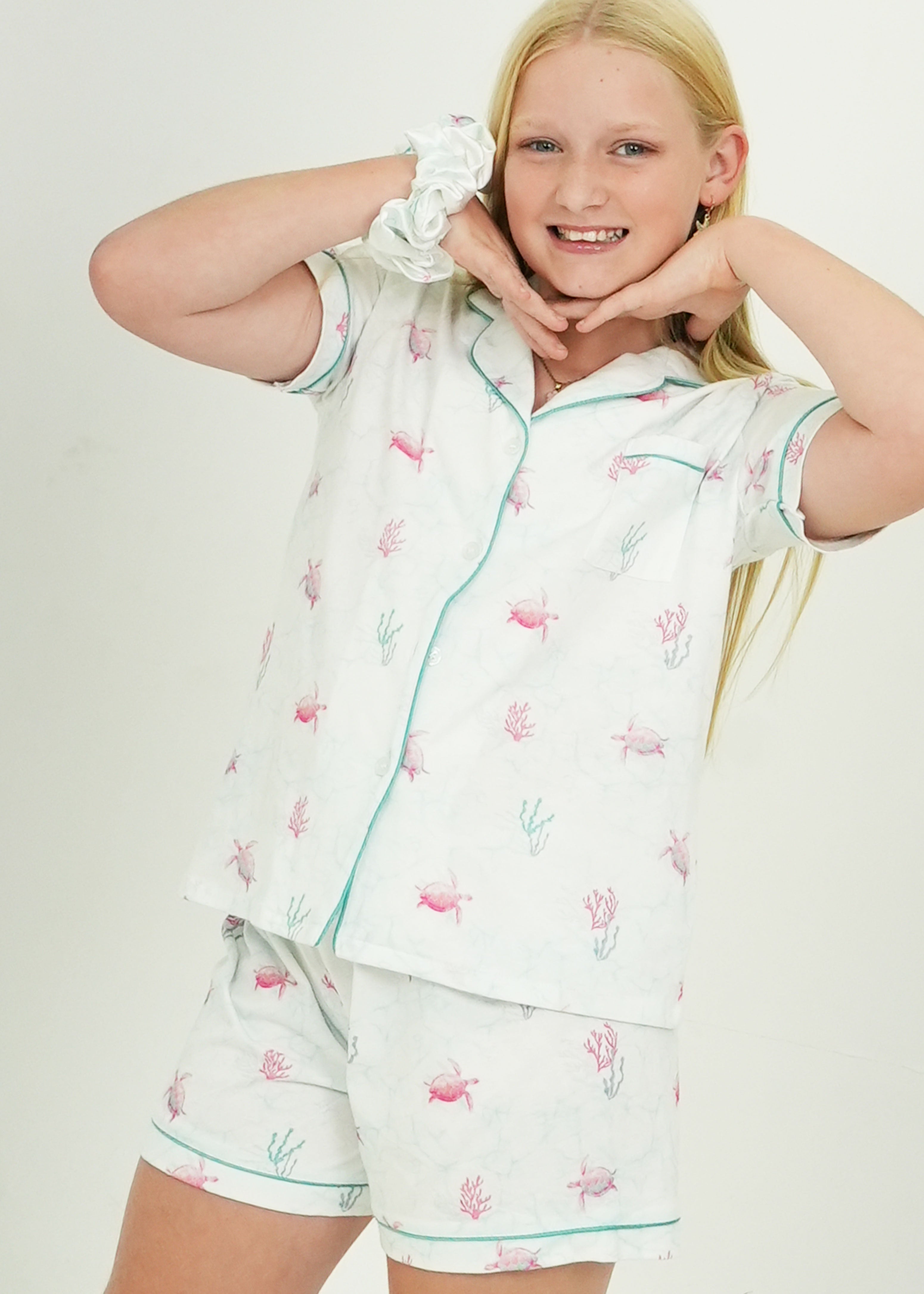 Girls - White Turtles - Jersey Knit Cotton Short PJ Set