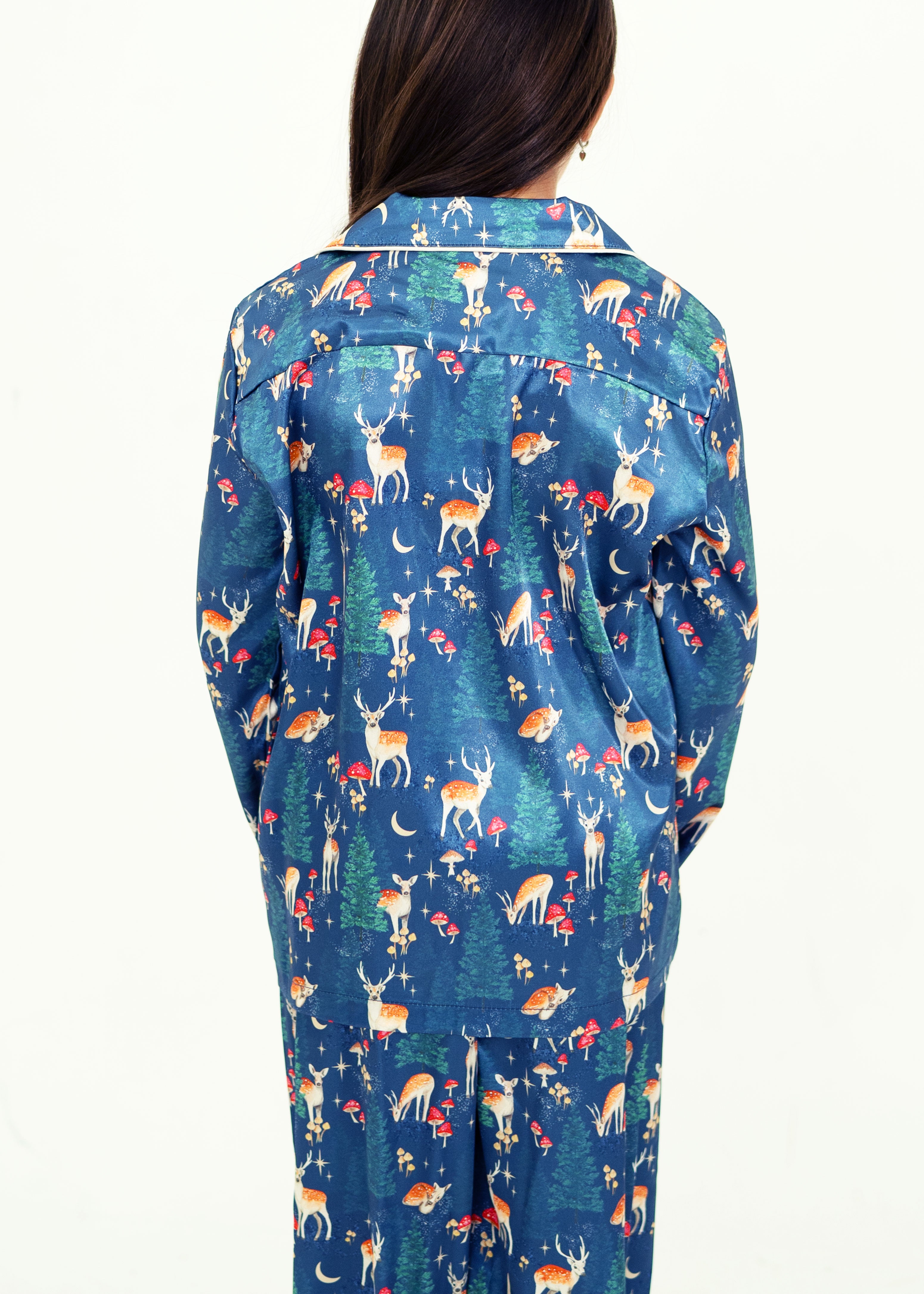 Add a touch of goodness to your bedtime with our gorgeous Woodland Dreams Satin Pajamas. Beautifully detailed with adorable buttons, and an extra stretchy waistband, you are sure to have the sweetest sleep!
