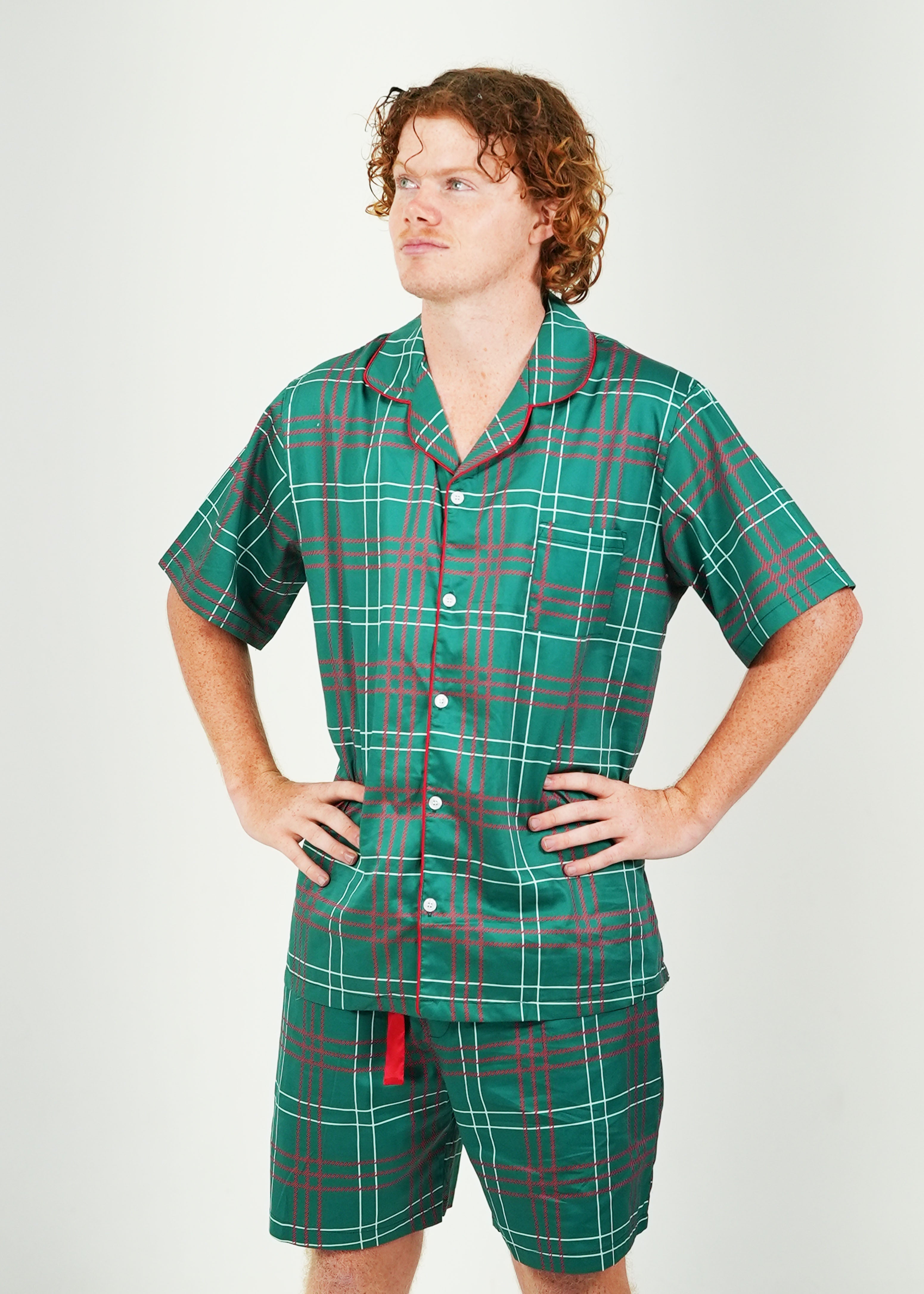Festive Tartan Christmas Cotton Short PJ Set Mens