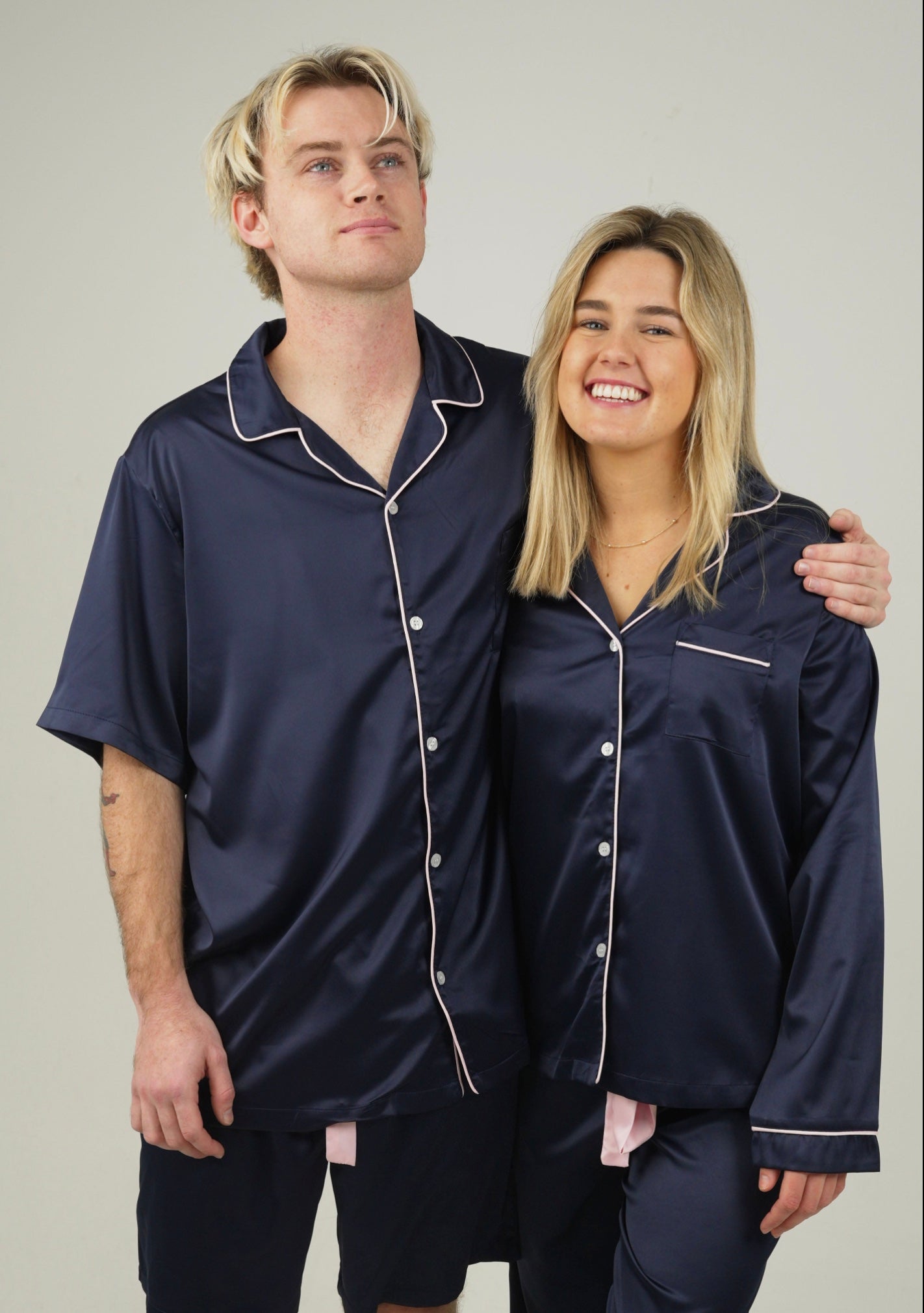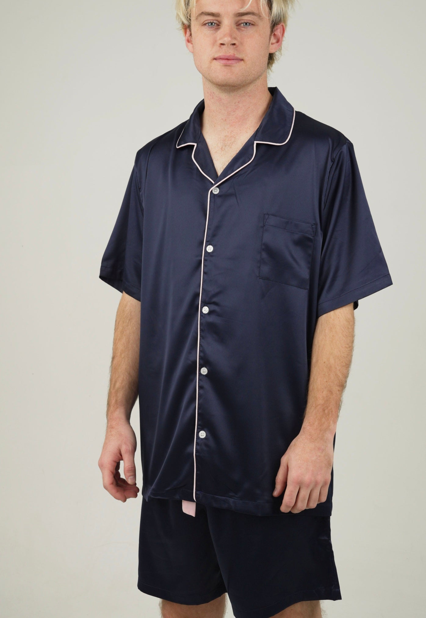 Elevate your sleep game instantly with our cosy Navy Matte Satin PJs. Made with your comfort in mind from buttery soft, breathable fabrics. These tried and true staple pyjamas feature deep pockets, knee length shorts, and a stretchy drawstring waistband for the ultimate comfort experience.