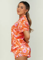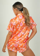 Hawaiian Daze - Orange Short Satin PJ Set