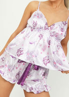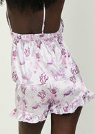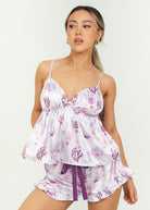 Lilac Coral Garden Satin Camisole Short Pajama Set