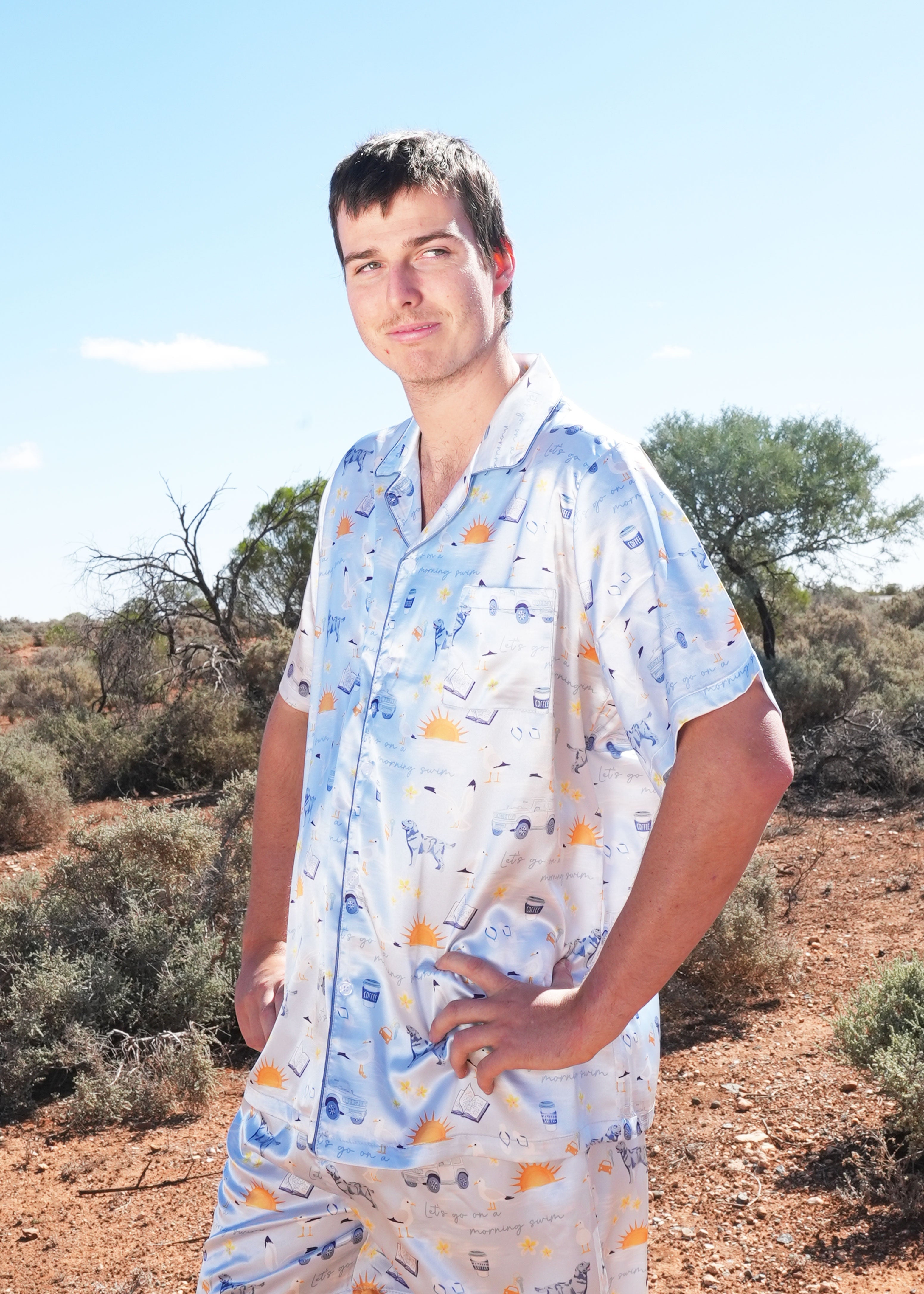 Elevate your sleep game instantly with our cosy Let's Go on a Morning Swim Satin Pyjamas. Made with your comfort in mind from buttery soft, breathable fabrics. These tried and true staple pyjamas feature deep pockets, knee length shorts, and a stretchy drawstring waistband for the ultimate comfort experience.