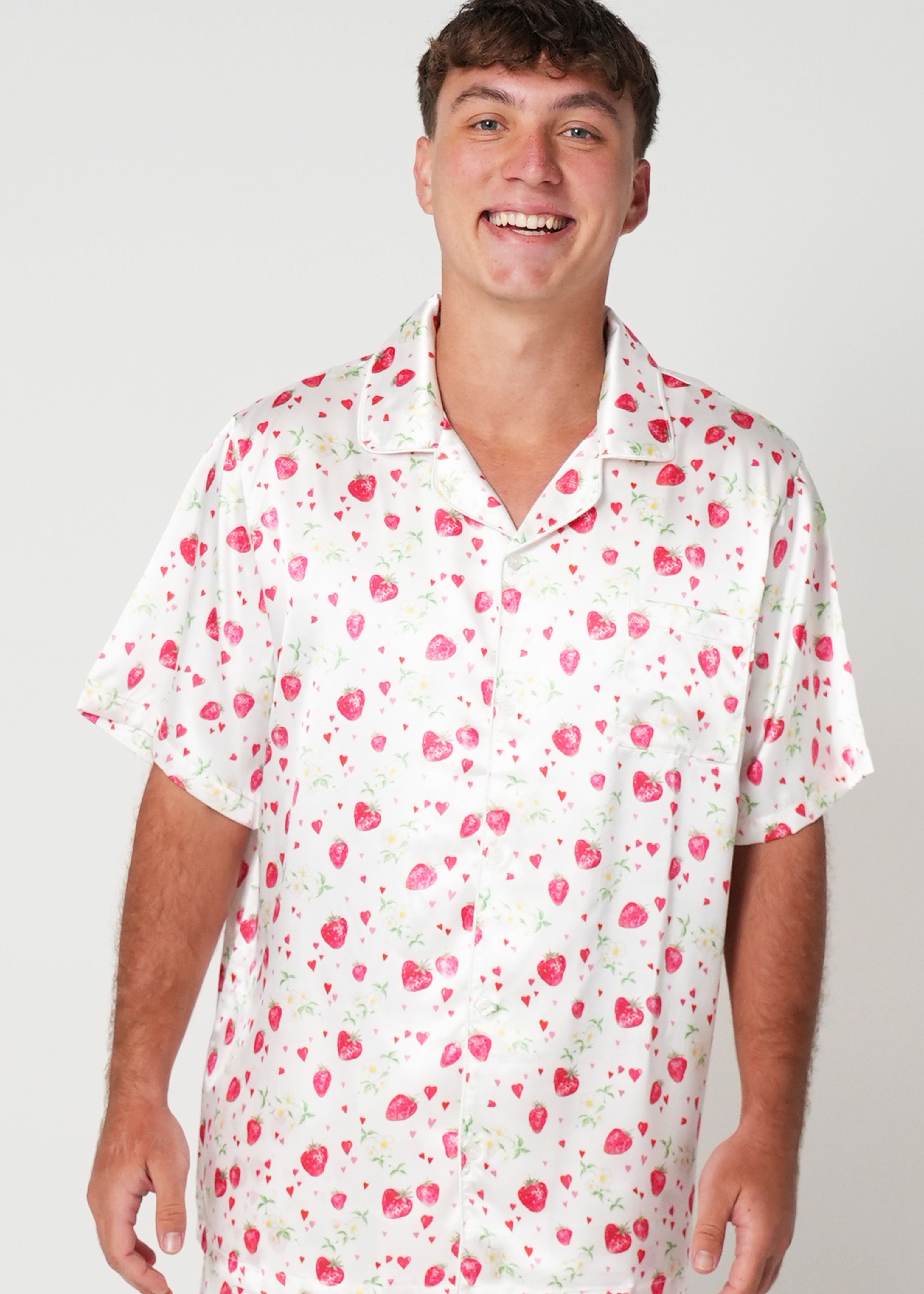 Elevate your sleep game instantly with our cosy Strawberries Satin Pajamas. Made with your comfort in mind from buttery soft, breathable fabrics. These adorable pajamas feature deep pockets, knee length shorts, and a stretchy drawstring waistband for the ultimate comfort experience.