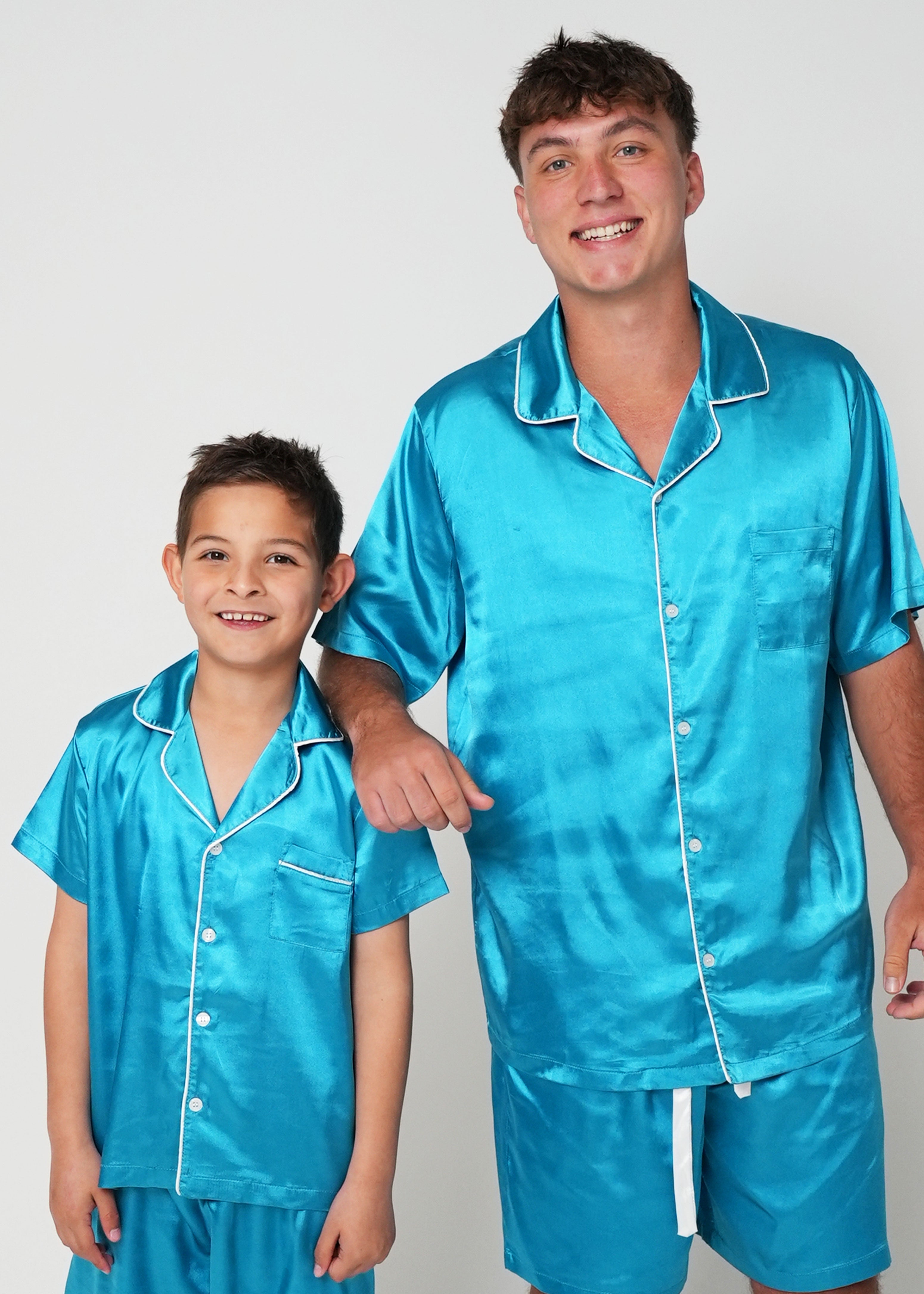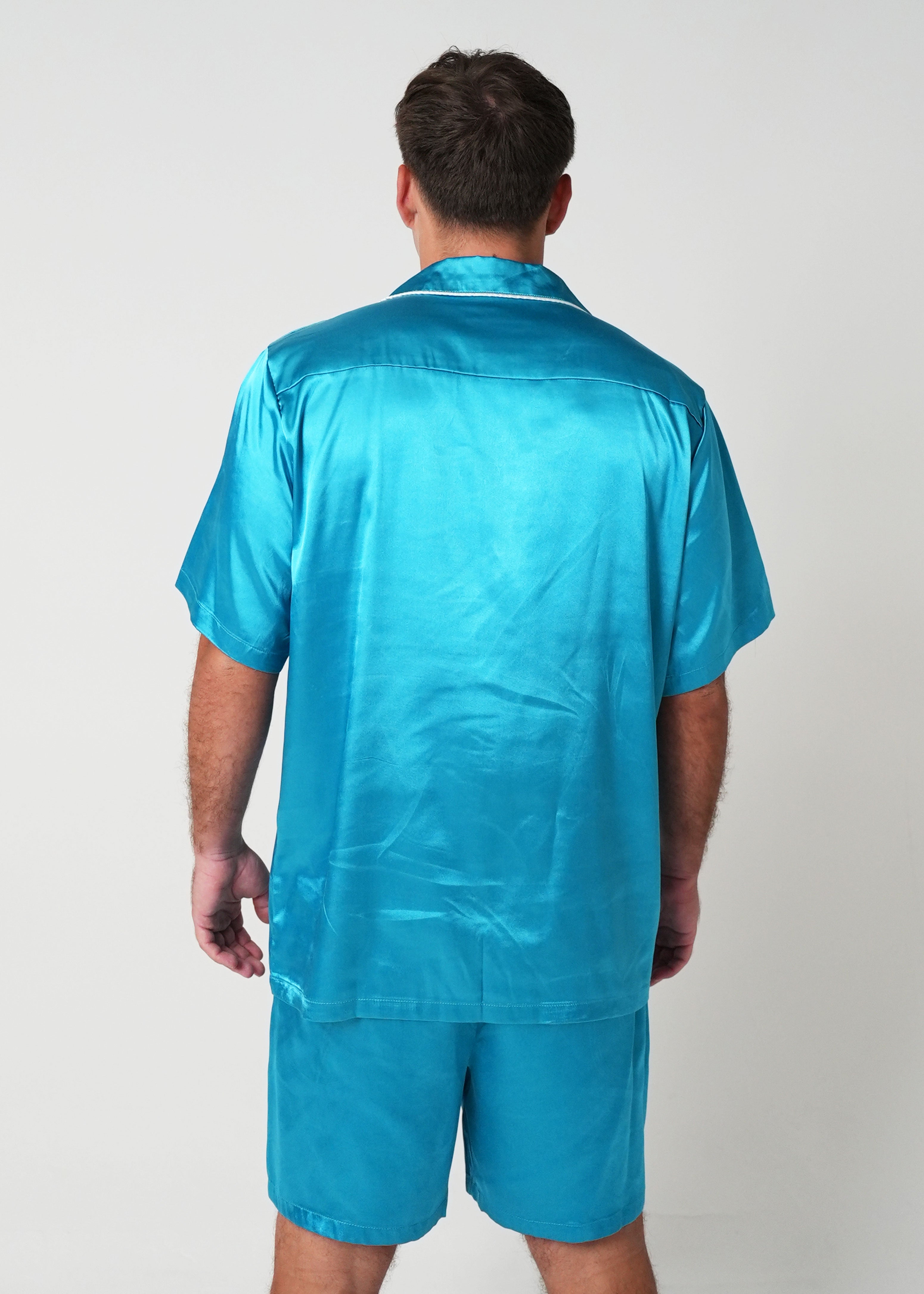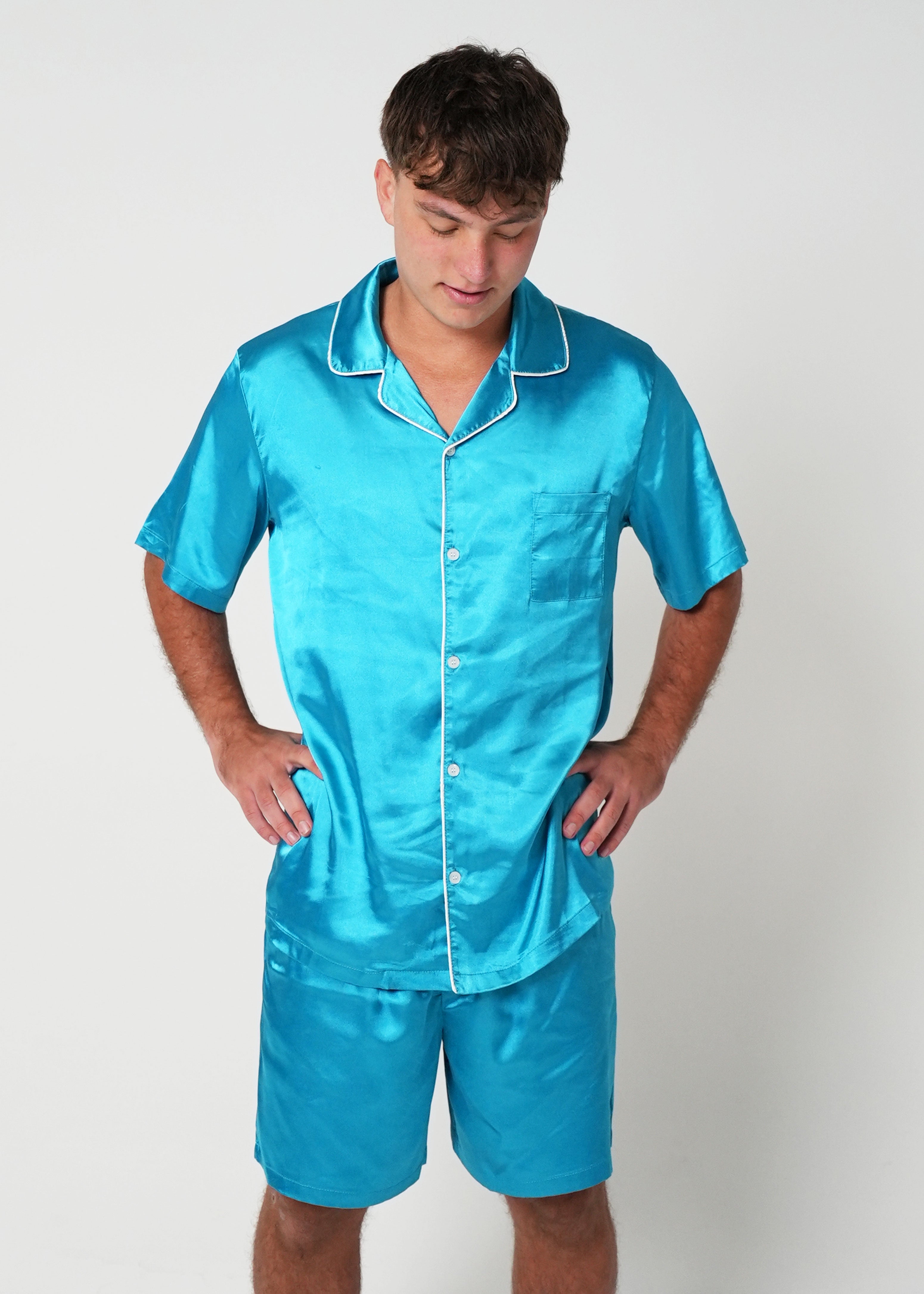 Elevate your sleep game instantly with our cosy Turquoise Satin Pajamas. Made with your comfort in mind from buttery soft, breathable fabrics. These tried and true staple pajamas feature deep pockets, knee length shorts, and a stretchy drawstring waistband for the ultimate comfort experience.