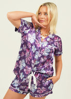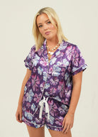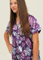 Purple Hibiscus Short Satin Pajama Set