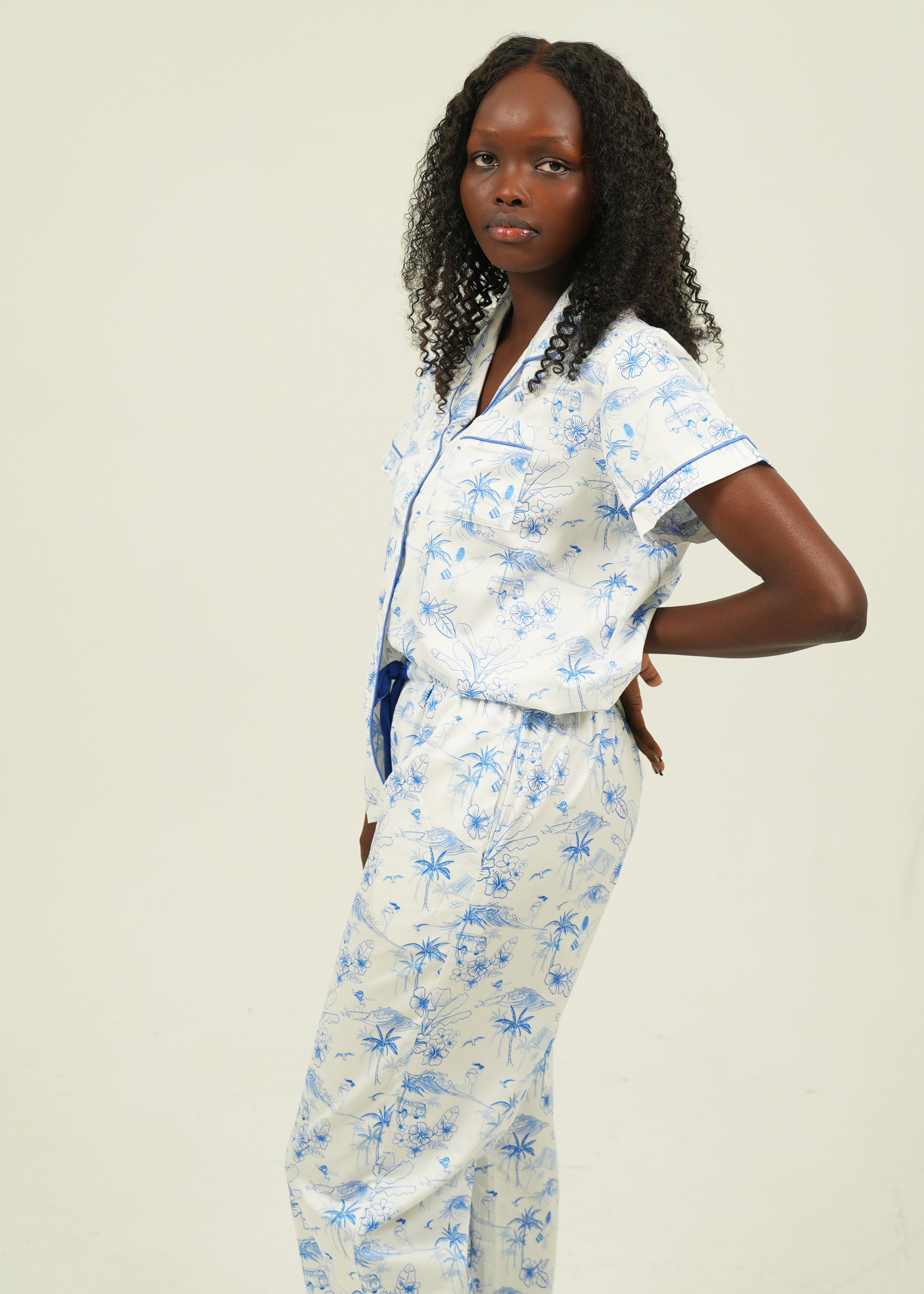 Hit the waves in your dreams with our enchanting Blue Hibiscus Satin Pajamas. Crafted with deep pockets, a stretchy drawstring waistband, and buttery soft fabric, you are sure to have the most luxurious sleep.