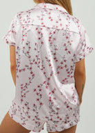 Experience the timeless beauty of the Japanese Cherry Blossom with our Satin Cherry Blossom Pajamas. This set features the subtle art of hand painted watercolour elegance. Embellished with deep pockets, adorable buttons, and an extra stretchy drawstring waist band for your ultimate comfort experience.