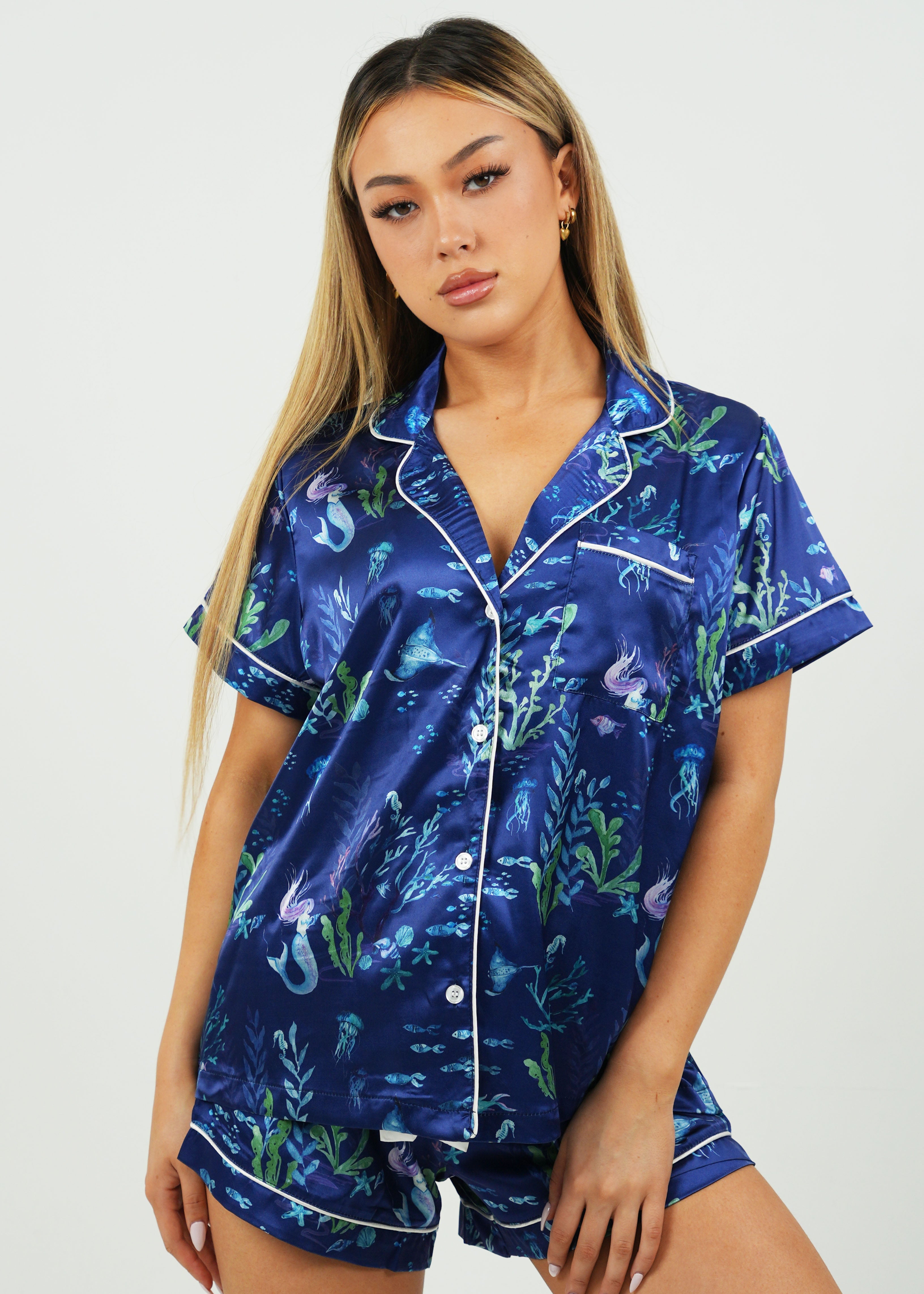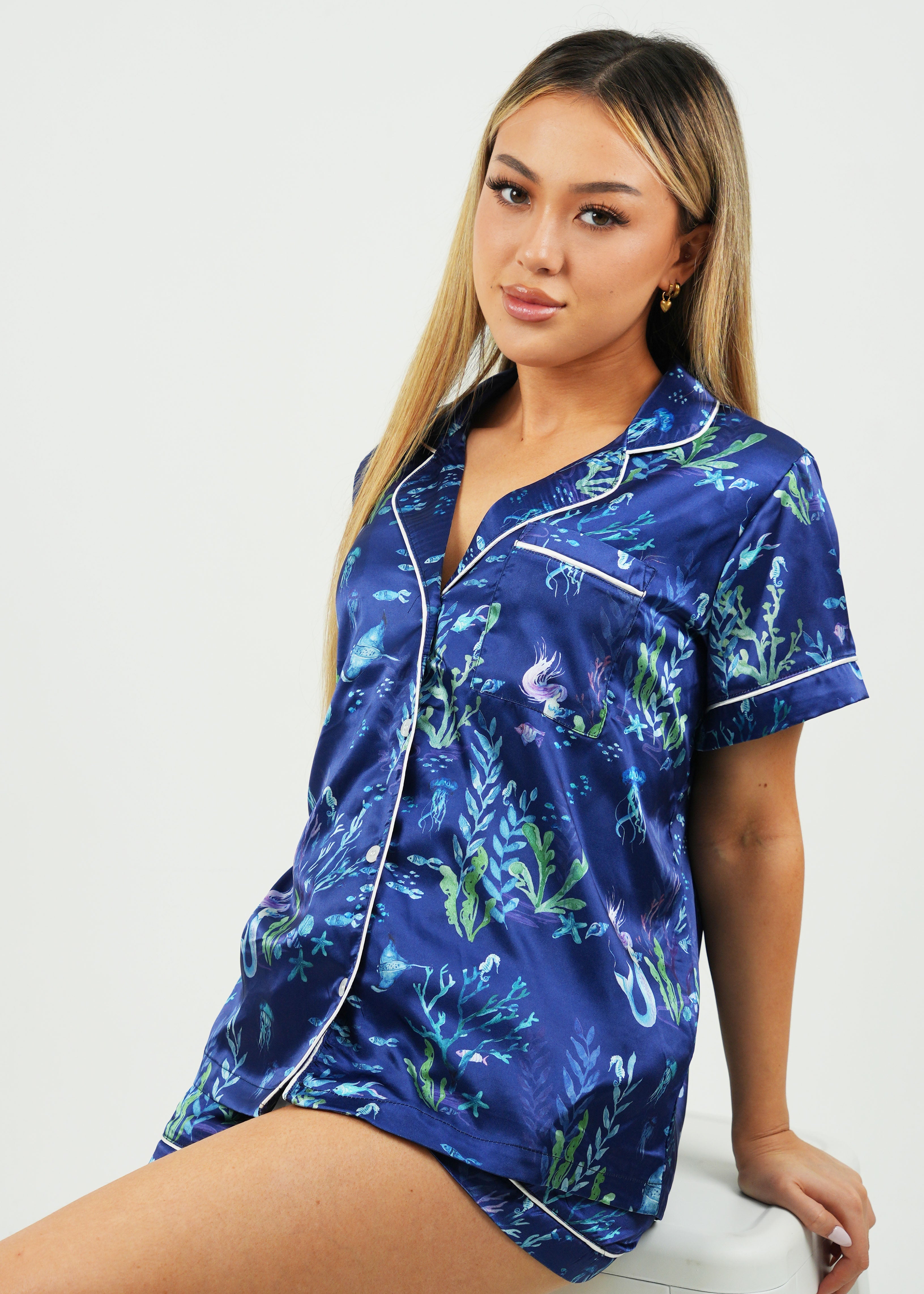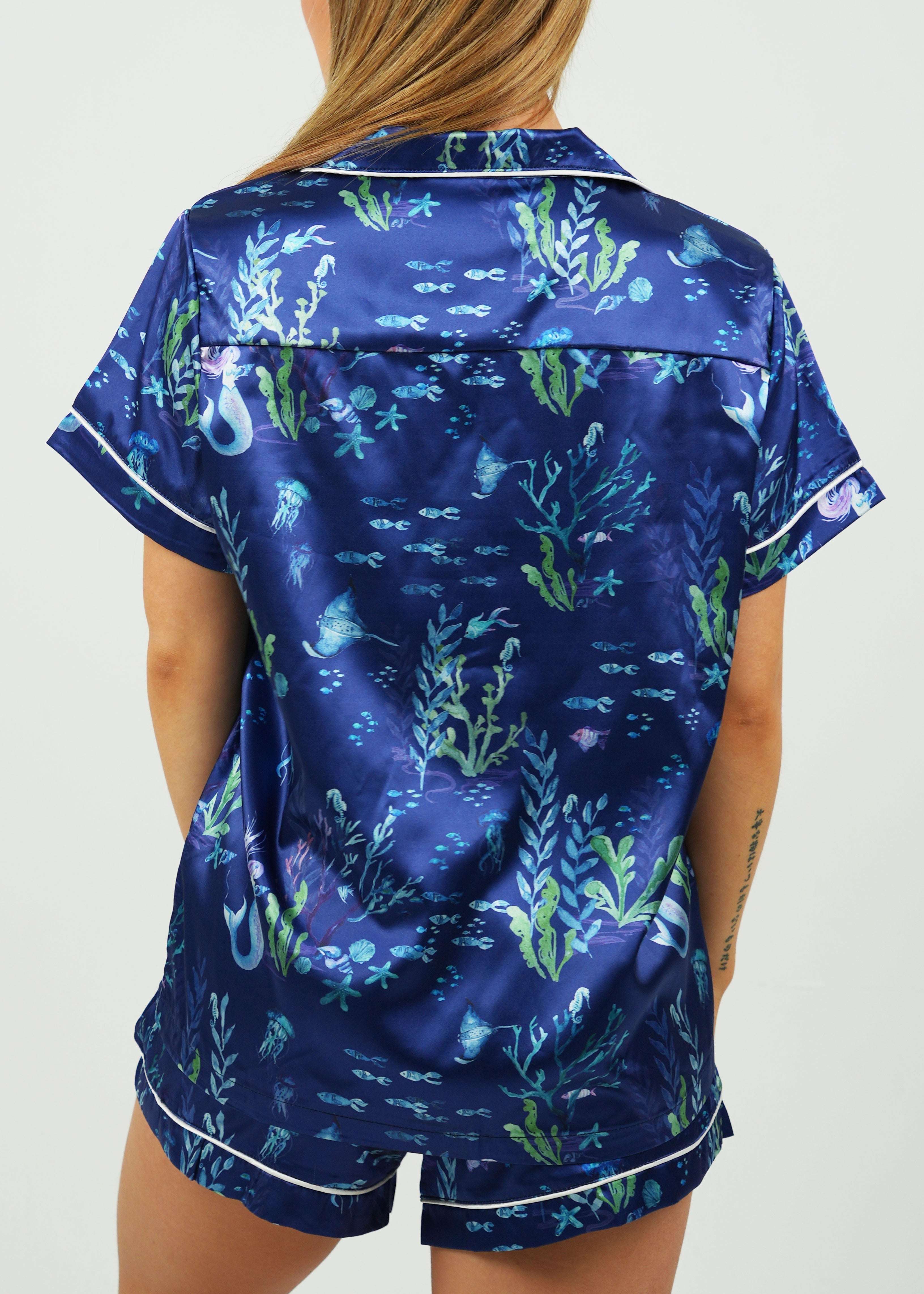 Be captivated by the magic of the underwater world with our Deep Sea Satin Pajamas. Lovingly detailed with deep pockets, adorable buttons, and an extra stretchy drawstring waistband for the ultimate comfort experience.