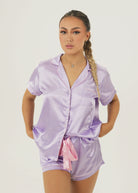 Indulge yourself in our luxuriously silky and oh so buttery soft Lilac Satin Pajamas. Lovingly detailed with deep pockets, adorable buttons, and an extra stretchy drawstring waistband for the ultimate comfort experience.