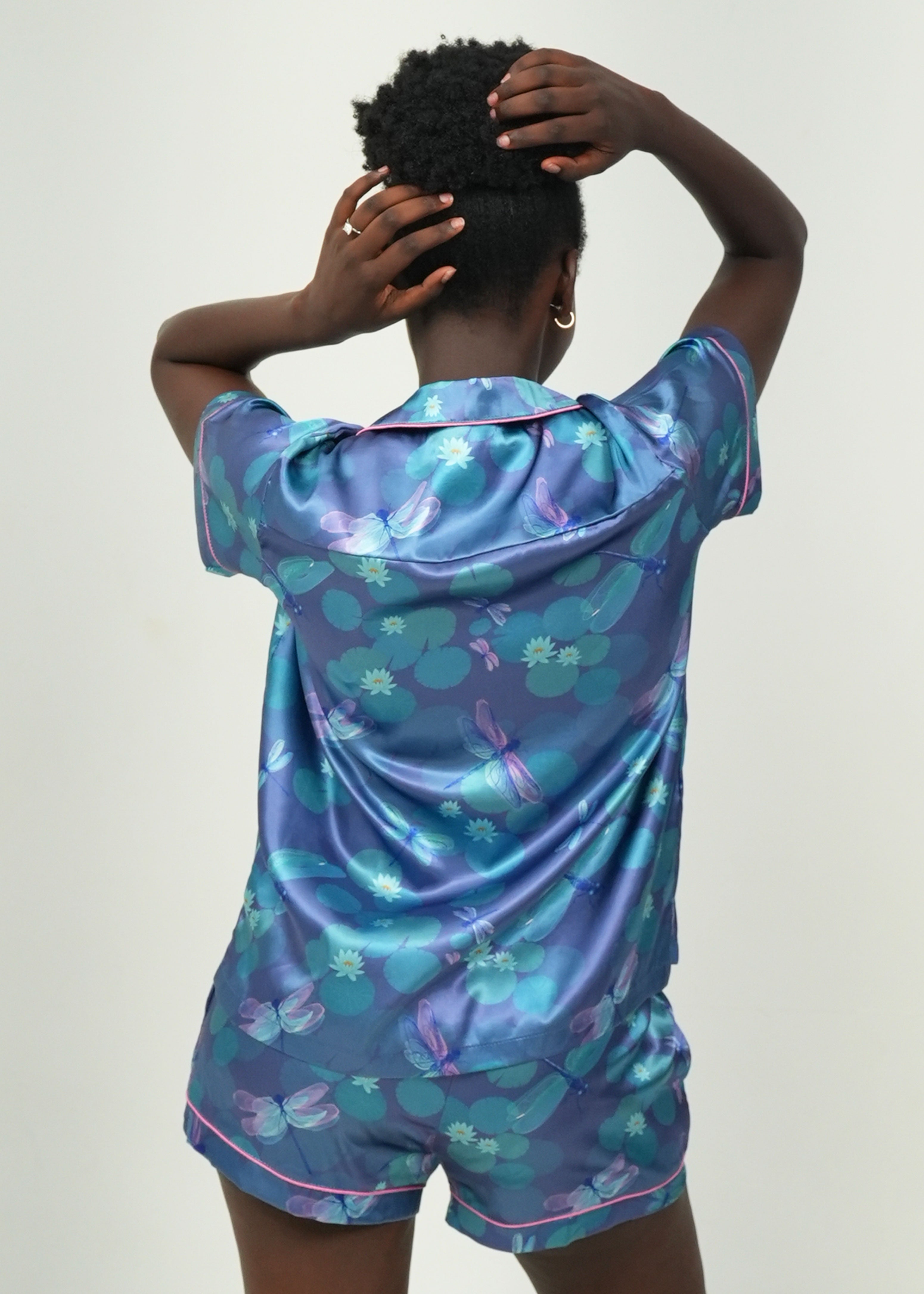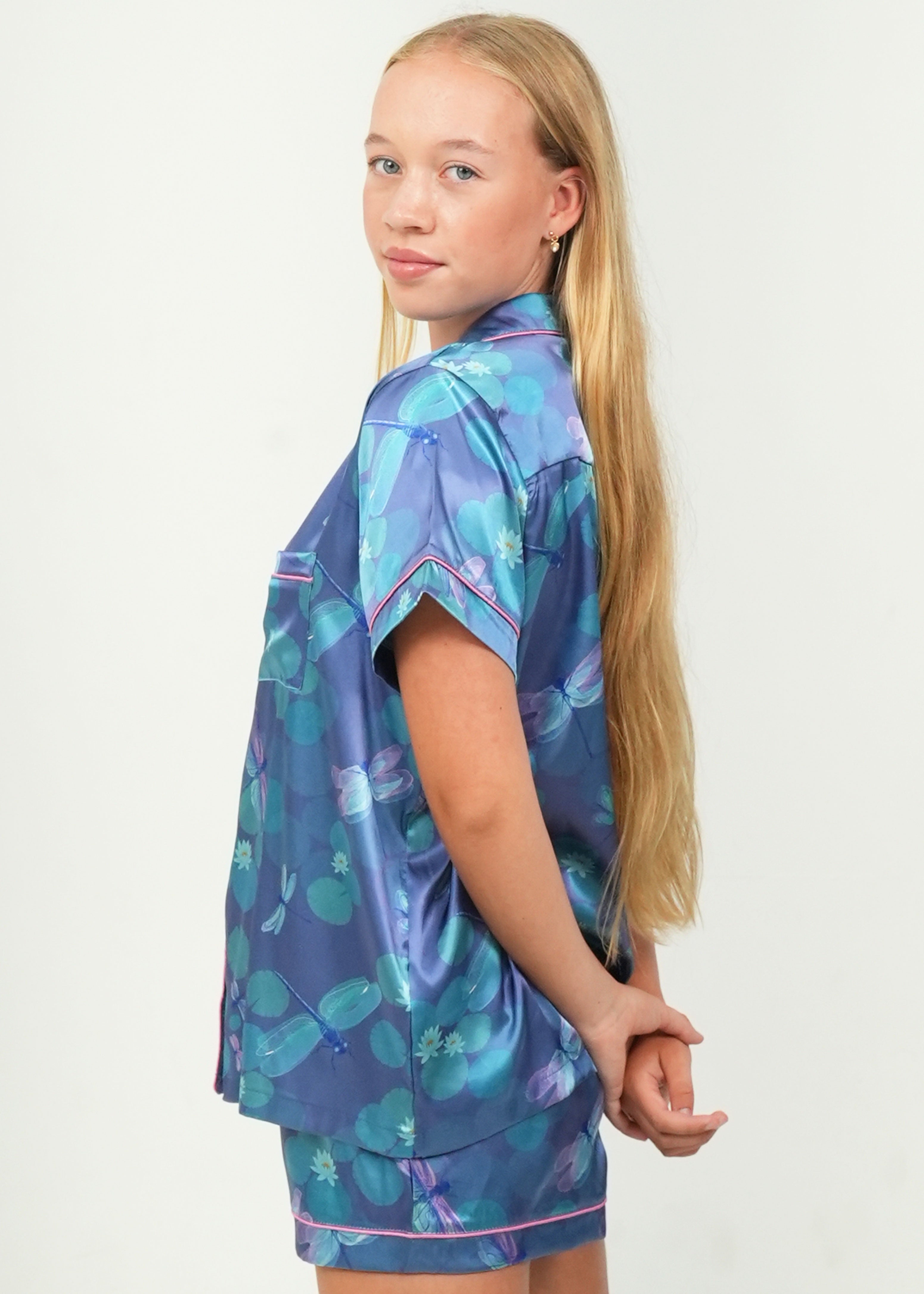 Women's Lilypad Dragonflies Short Satin PJ Set