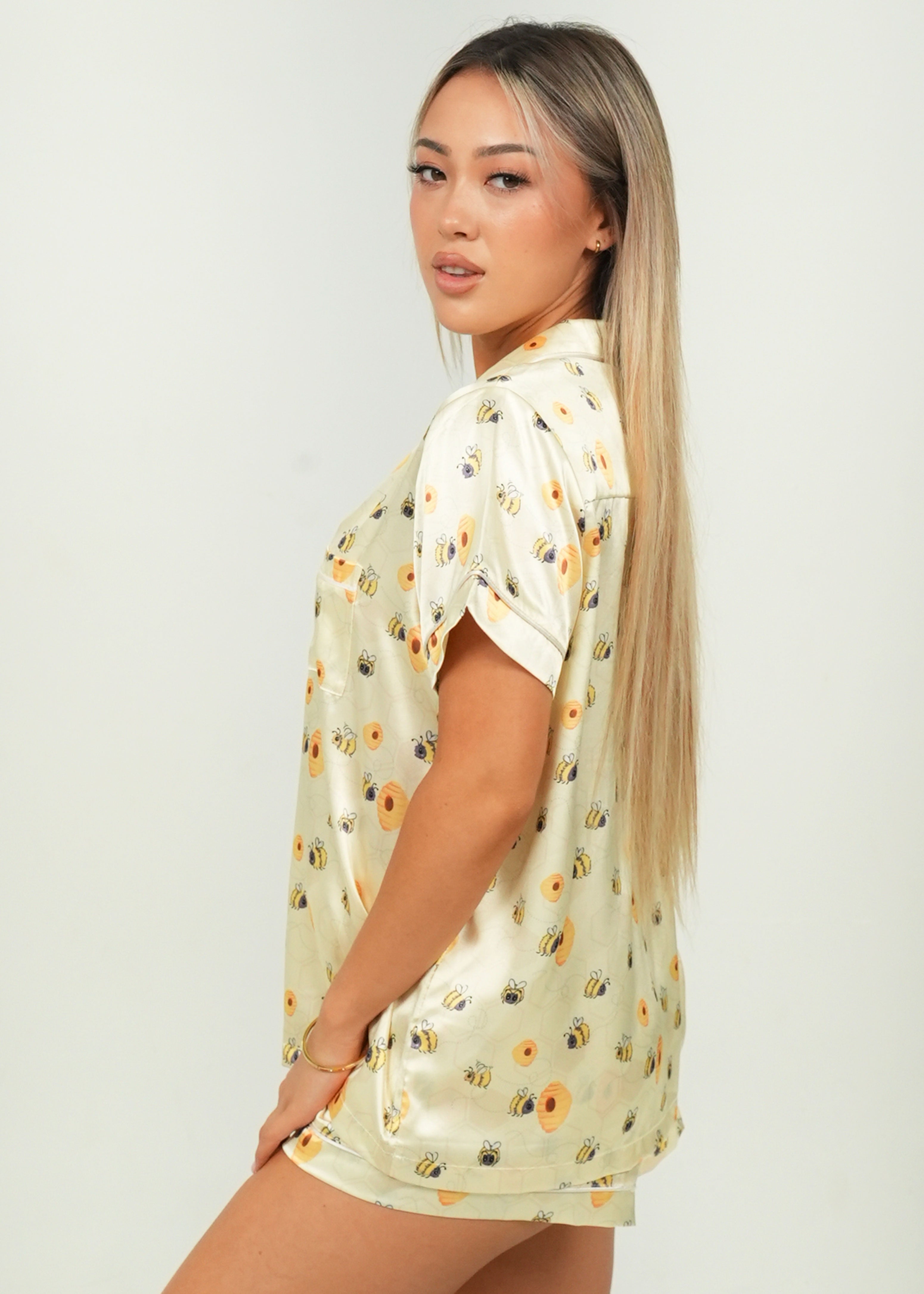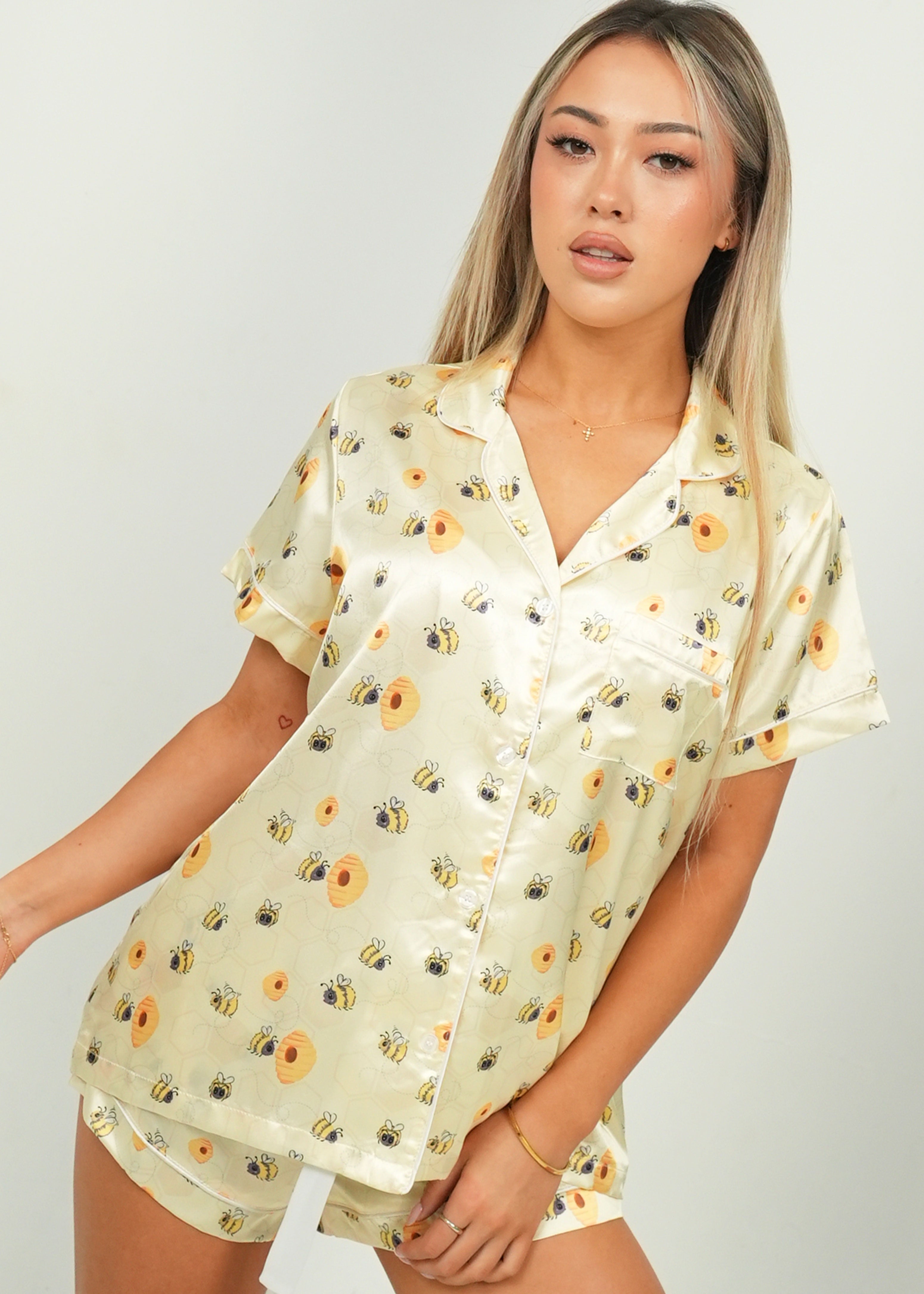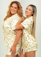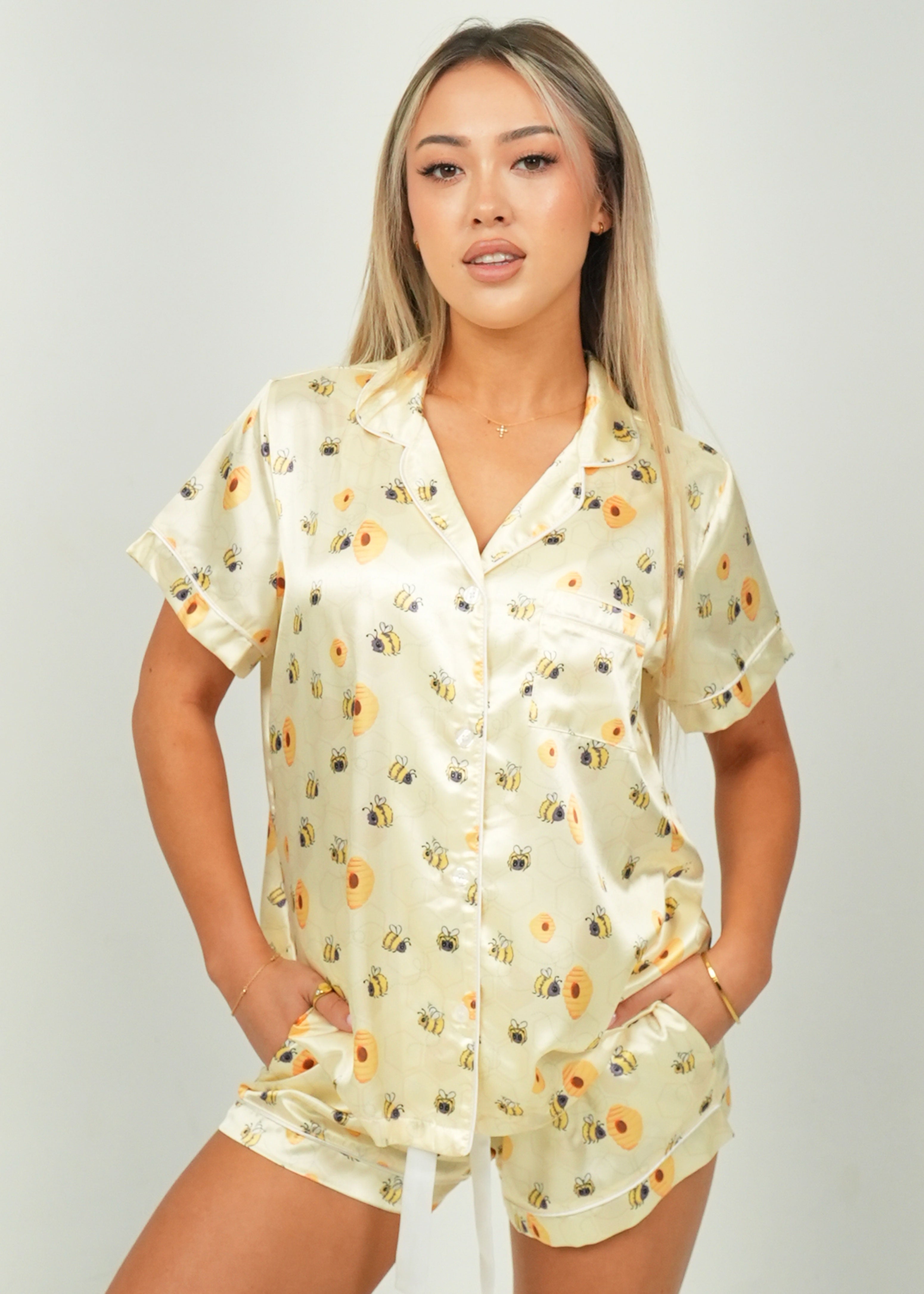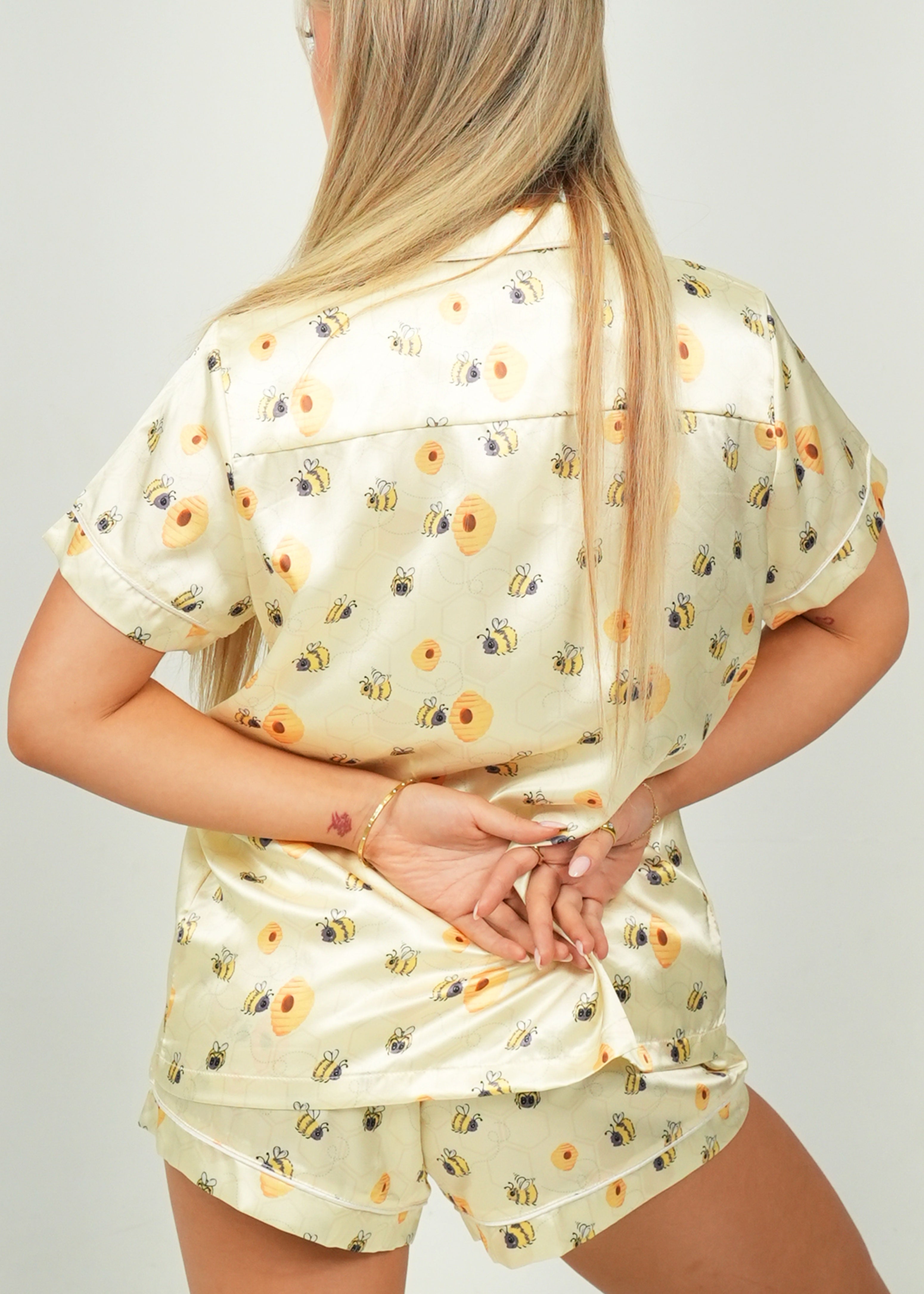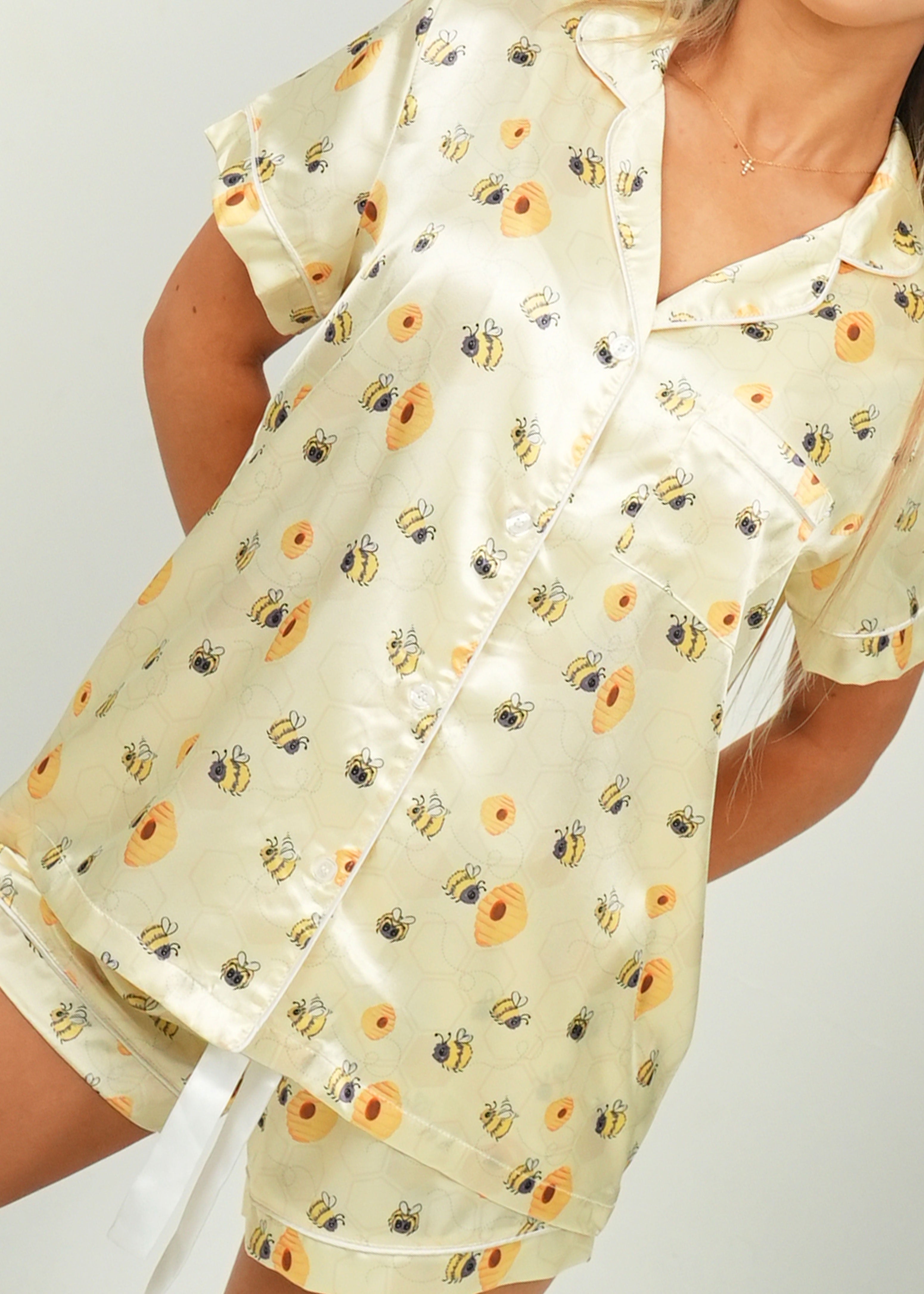 Women's Yellow Bumble Bees Short Satin PJ Set