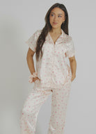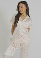 Champagne Rose Short Top/ Long Pants Satin PJ Set