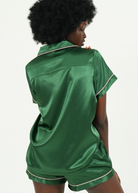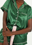 Indulge yourself in our luxuriously silky and oh so buttery soft Forest Green Satin Pajamas. Lovingly detailed with deep pockets, adorable buttons, and an extra stretchy drawstring waistband for the ultimate comfort experience.