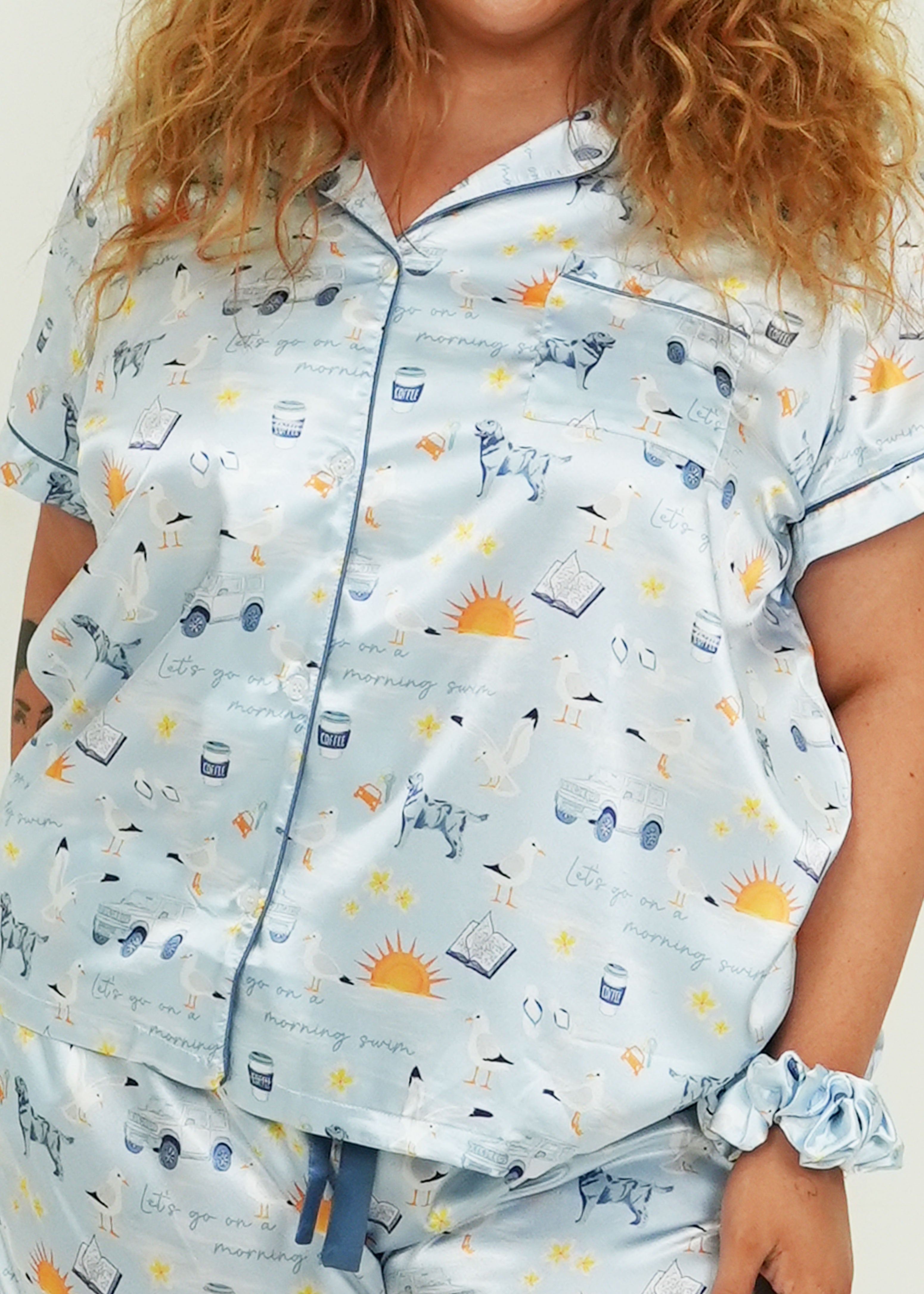 Add a touch of adventure to your bedtime with these gorgeous Let's go on a Morning Swim Pjs. With deep pockets, adorable buttons, and an extra stretchy drawstring waistband for the ultimate comfort experience, you are sure to have the most tranquil sleep.