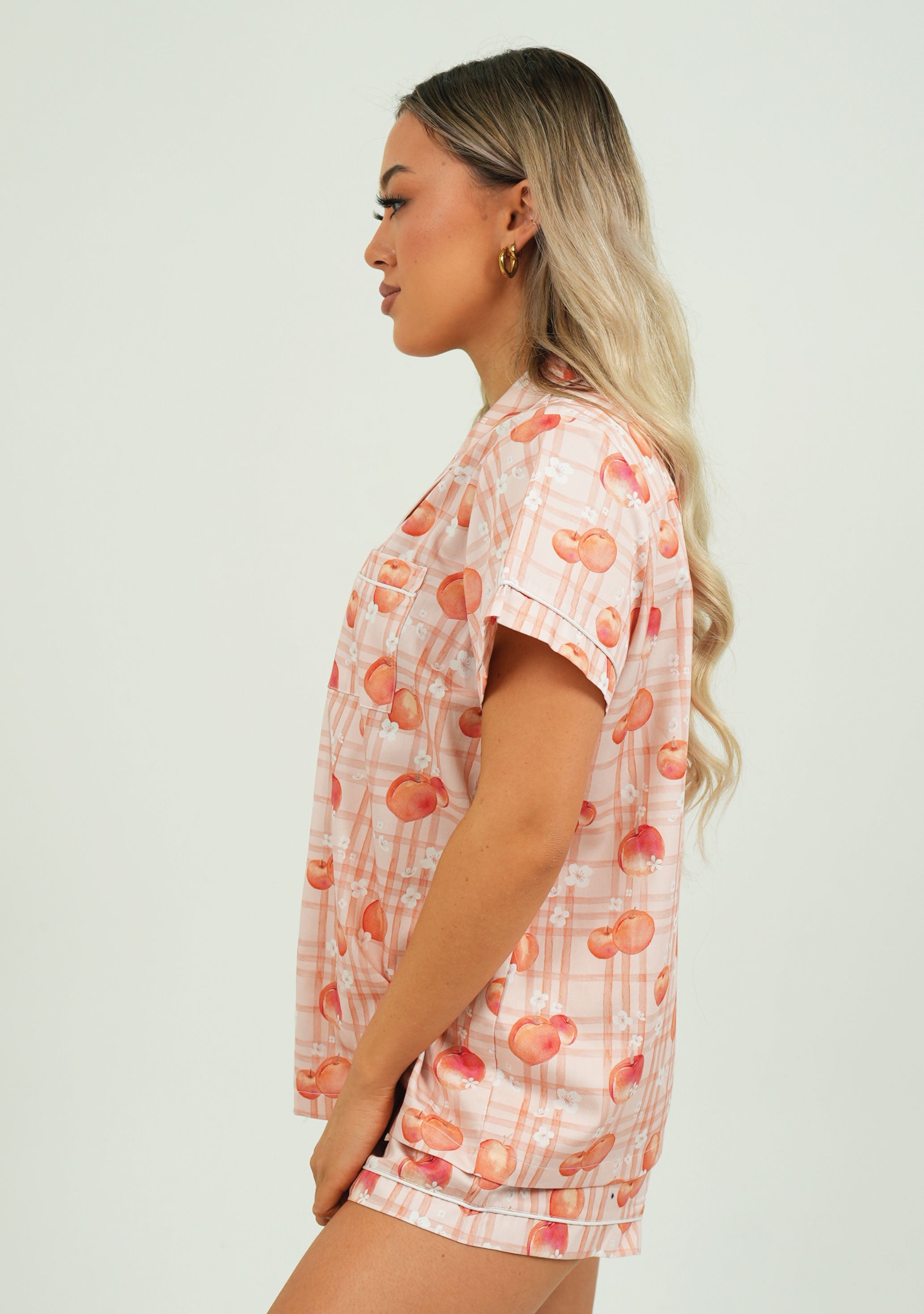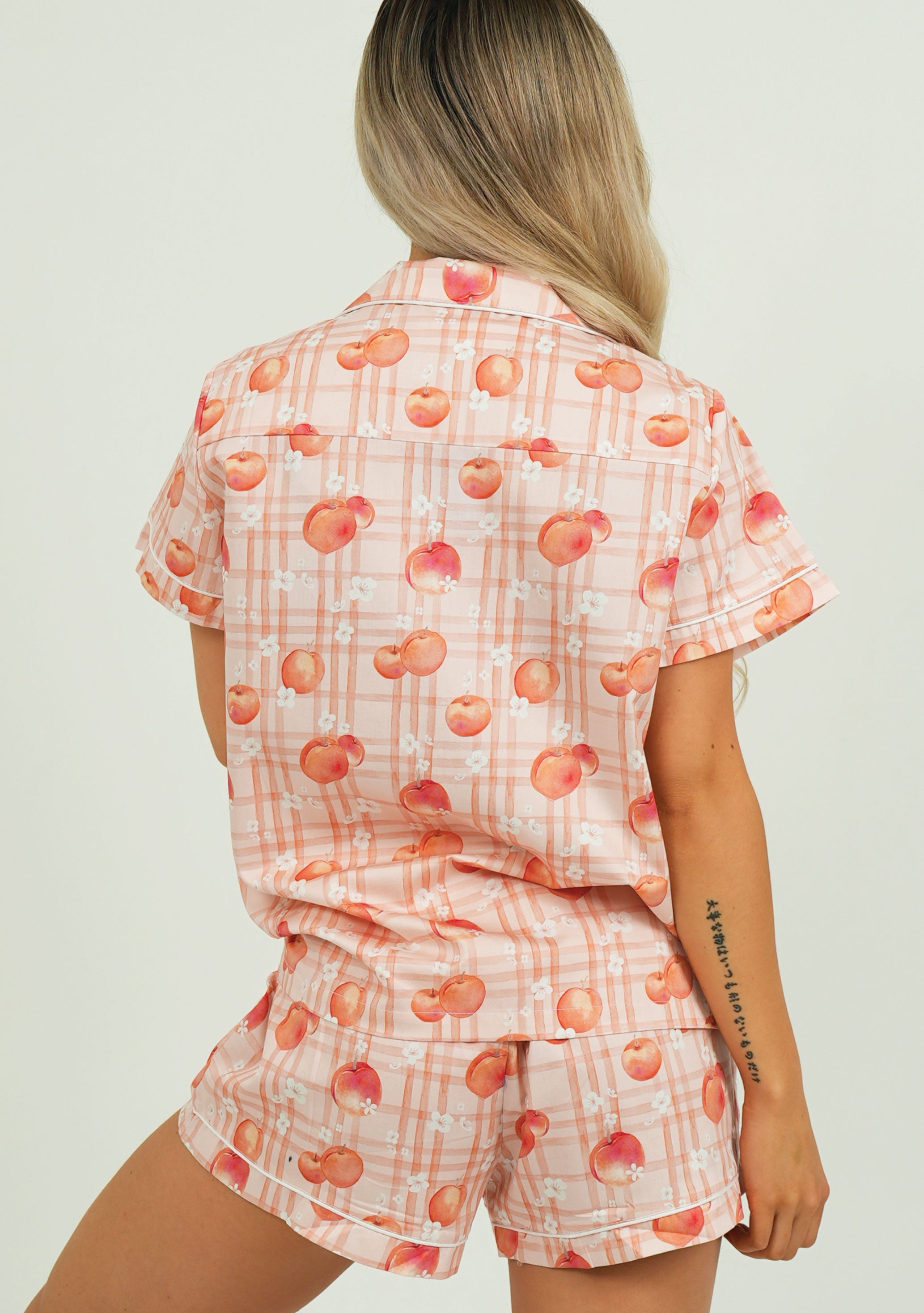 Add a touch of fruity goodness to your bedtime with our gorgeous Peach Satin Pajamas. Beautifully detailed with deep pockets, adorable buttons, and an extra stretchy drawstring waistband, you are sure to have a peachy keen sleep!