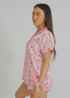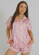Add a touch of nostalgia to your bedtime with these gorgeous Sugar Blossom Satin Pjs. With deep pockets, adorable buttons, and an extra stretchy drawstring waistband for the ultimate comfort experience, you are sure to have the most tranquil sleep.